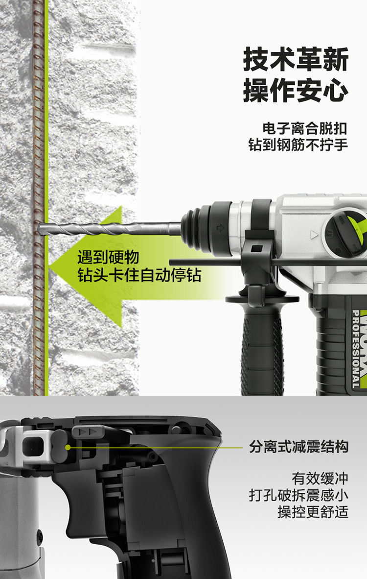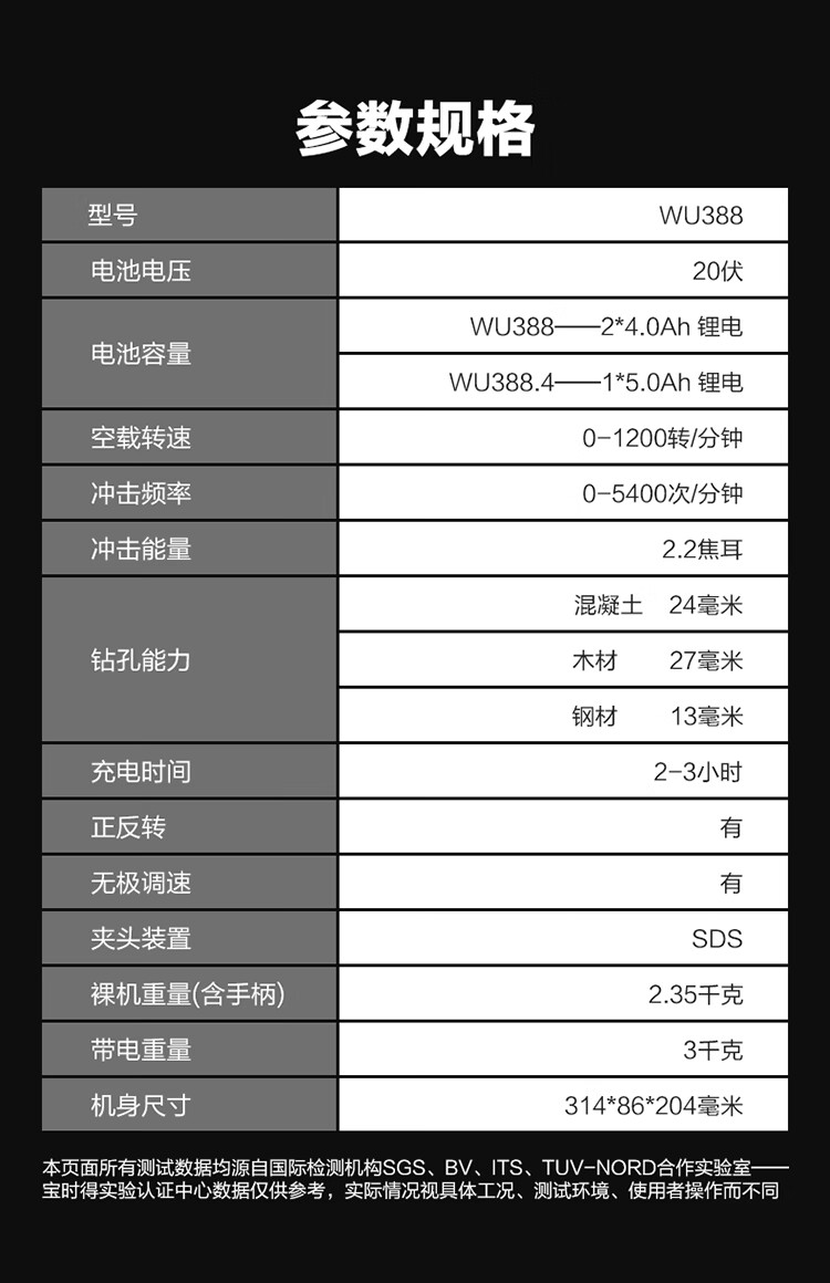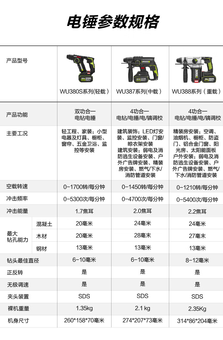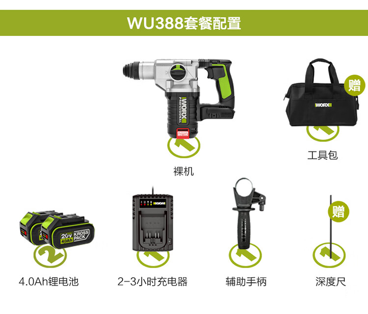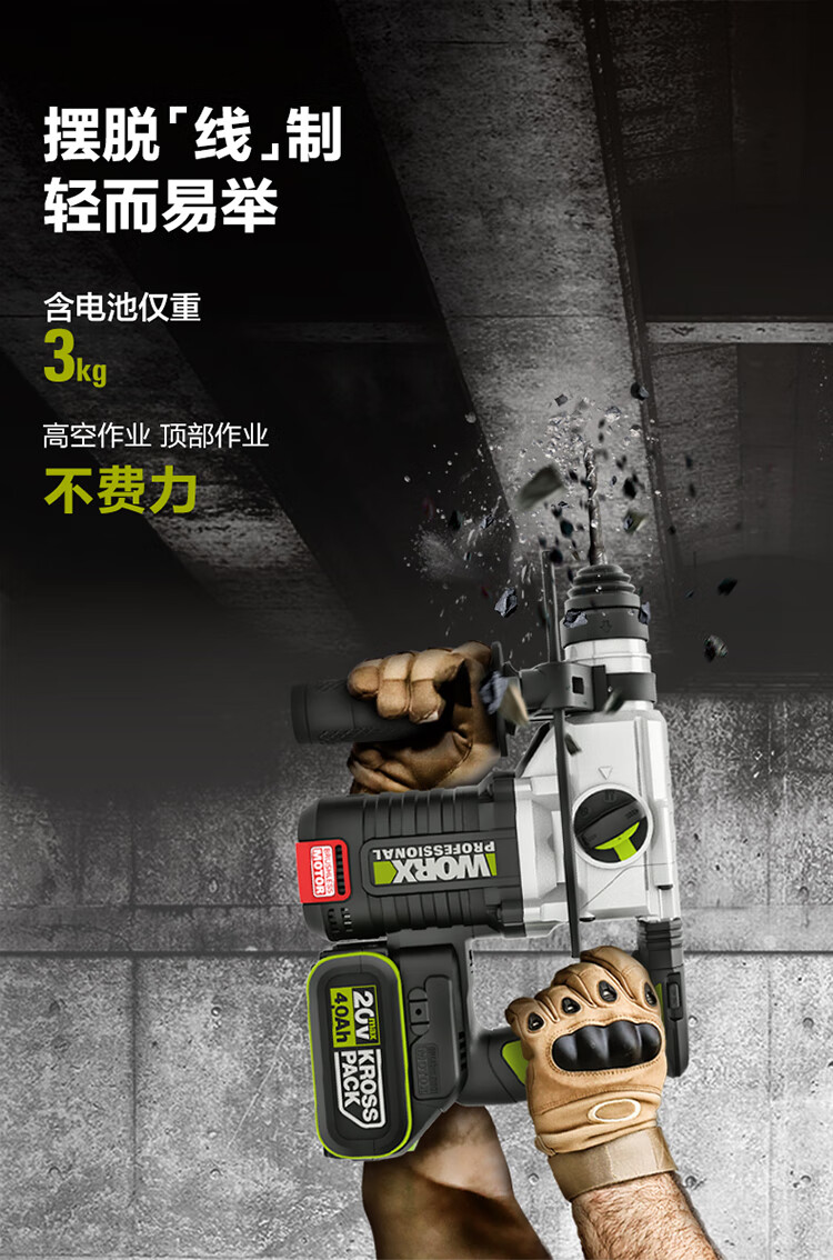 Vickers 20V Brushless Rechargeable Electric Hammer Impact Drill WU388 (4.0 Dual Electric) Lithium Electric Pickaxe Drill Three-in-One Concrete