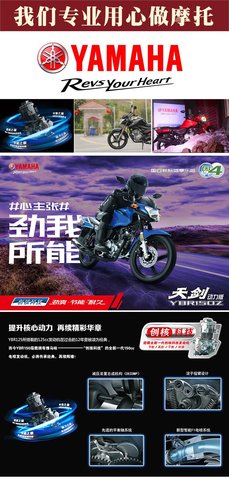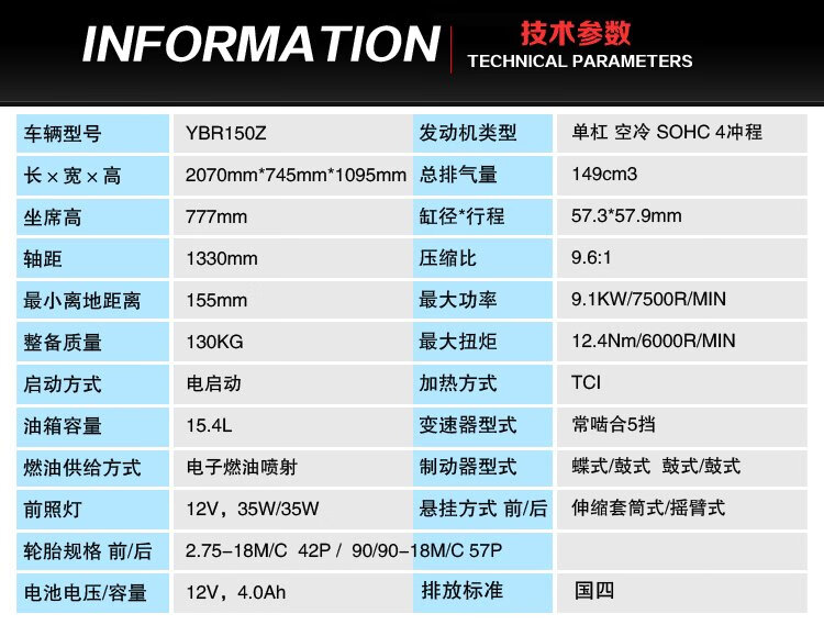 Yamaha (YAMAHA) Tianjian Motorcycle Straddle Type National IV Electronic Injection YBR150Z Men's Street Car Sports Car Racing Tianjian Power Edition Symphony Red Online Suggested Retail Price
