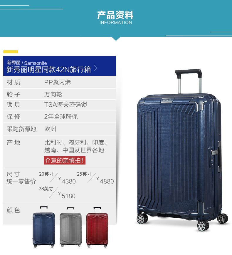 Samsonite fashionable suitcase suitcase business check-in trolley case 42N black zipper 28 inches