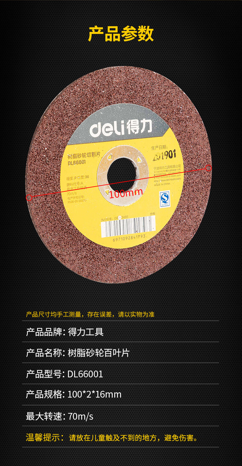 Deli resin grinding wheel cutting disc angle grinder cutting disc thickened steel ring 100*2*16 resin grinding wheel louver blade resin grinding wheel cutting disc 100*2*16mm*5 pieces