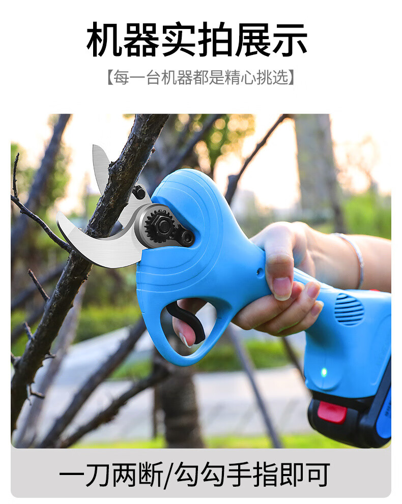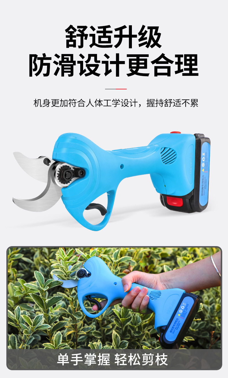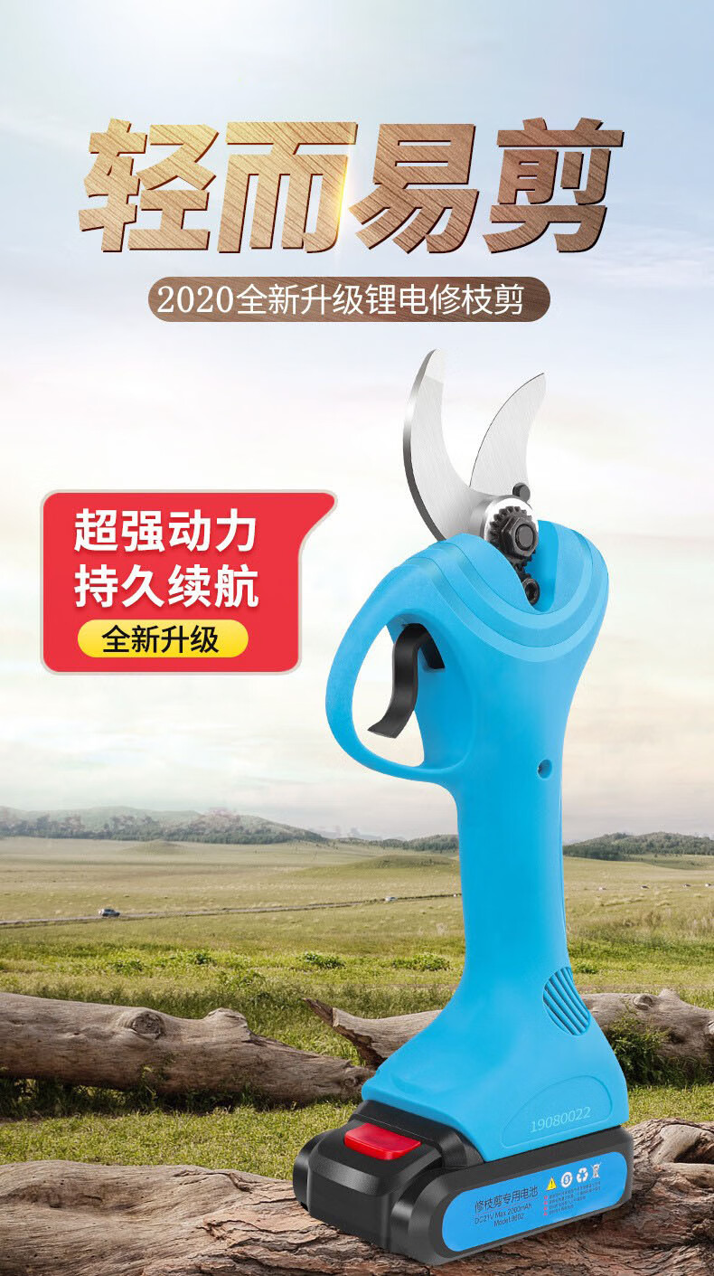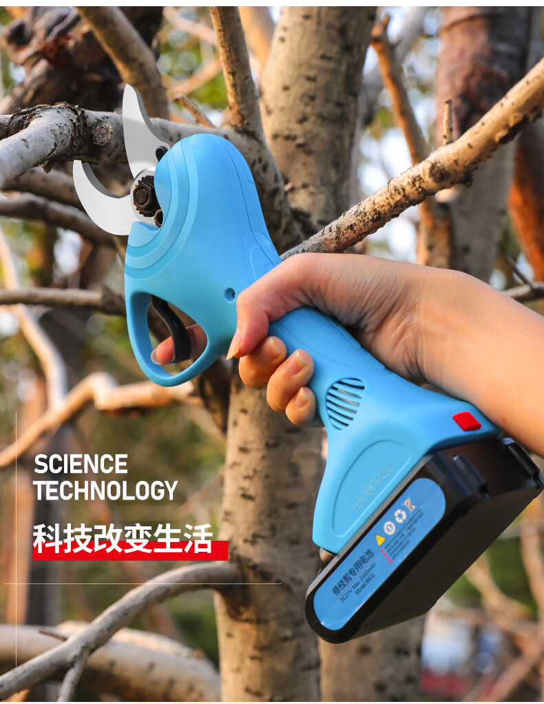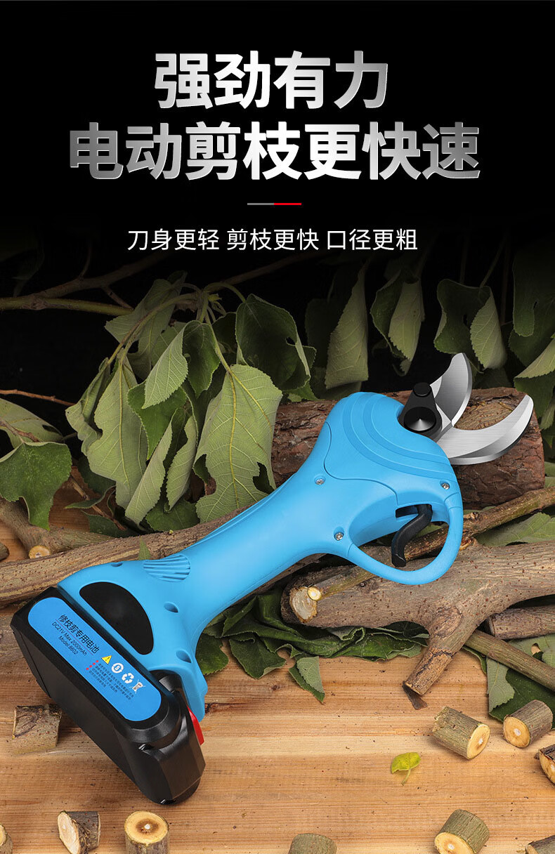 Wuyangyilang electric pruning scissors, fruit tree shears, lithium-ion powerful thick high branch pruners, pruning machine, branch cutting blade hand, wireless 3.0, two batteries and one charge, working 6-8 hours