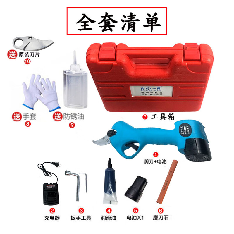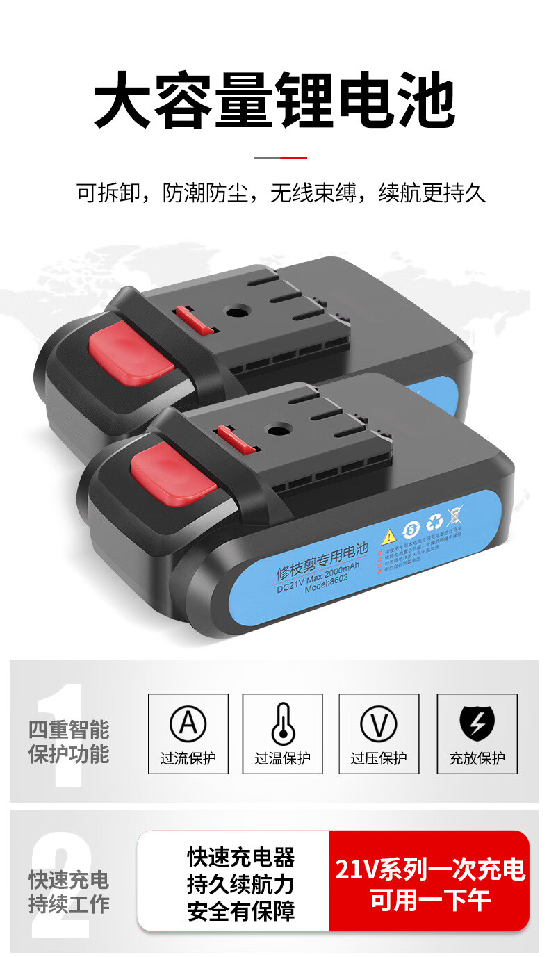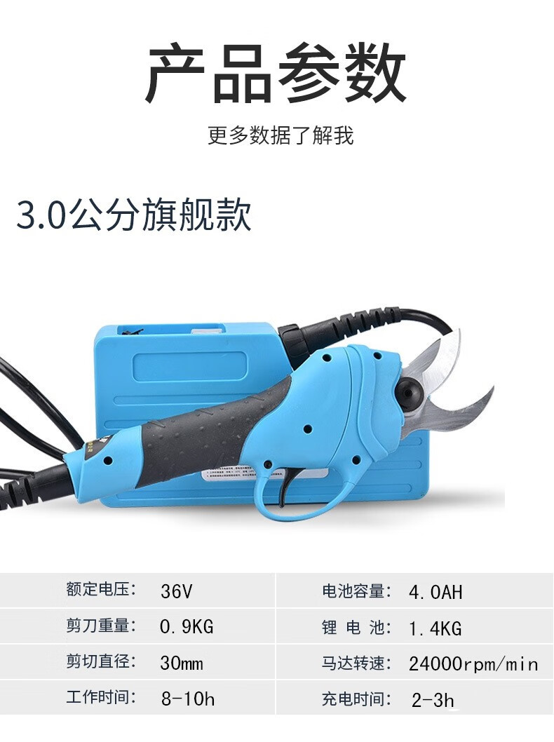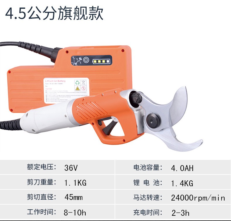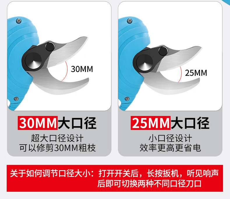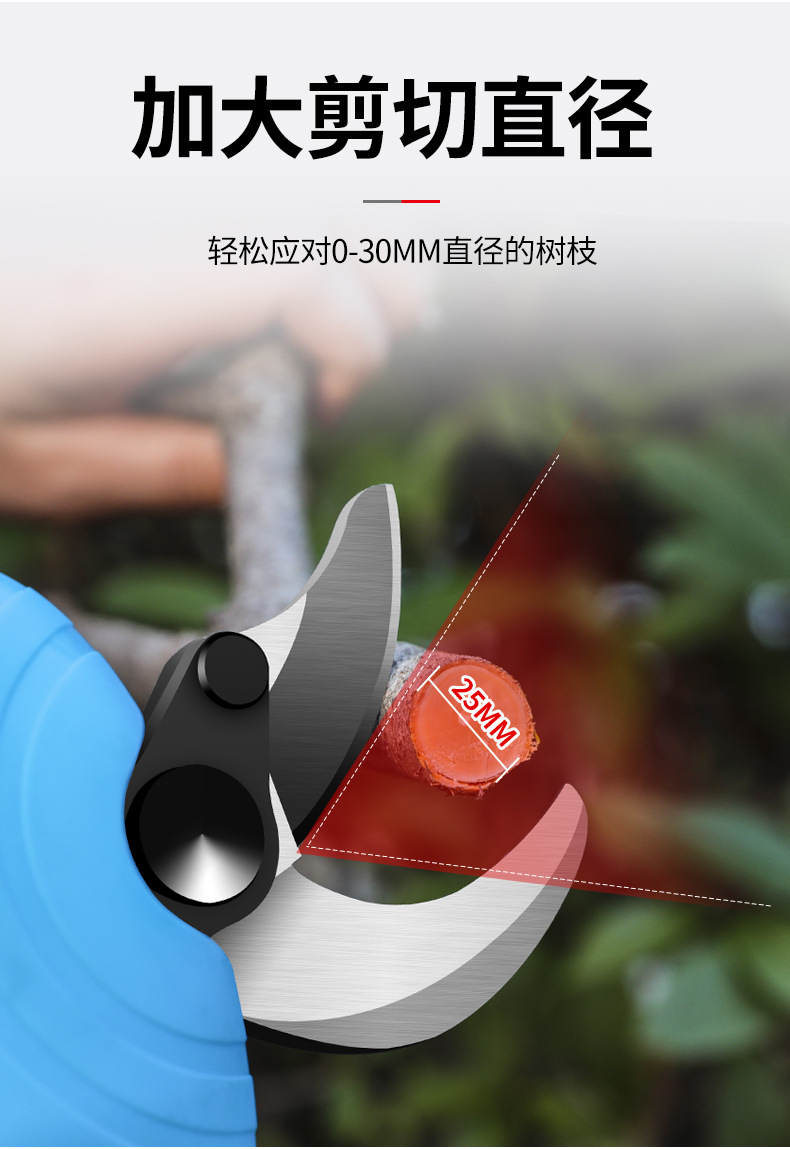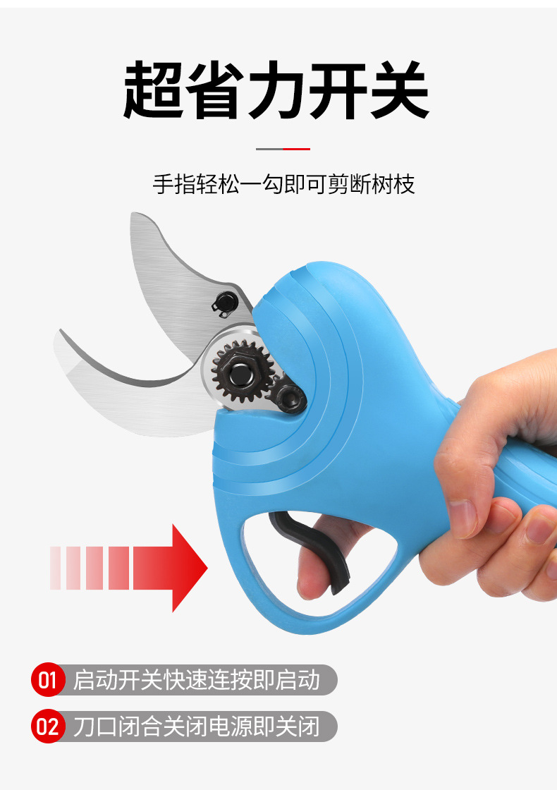 Wuyangyilang electric pruning scissors, fruit tree shears, lithium-ion powerful thick high branch pruners, pruning machine, branch cutting blade hand, wireless 3.0, two batteries and one charge, working 6-8 hours