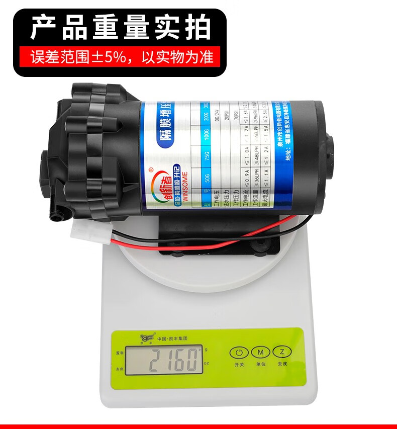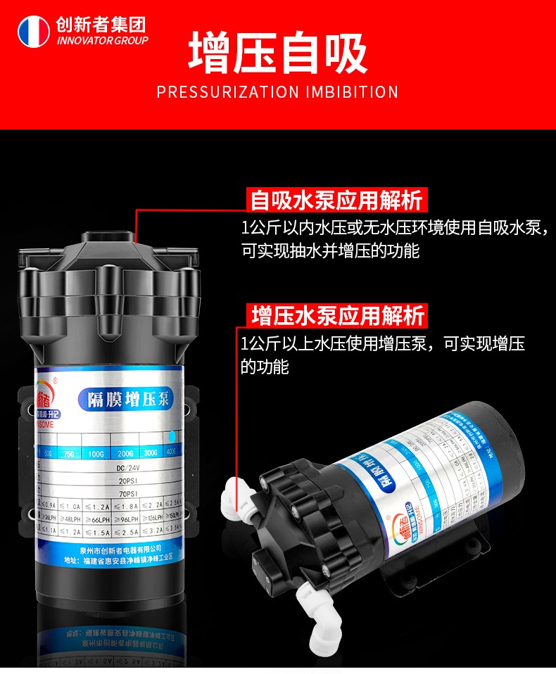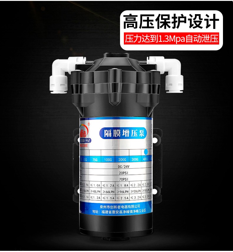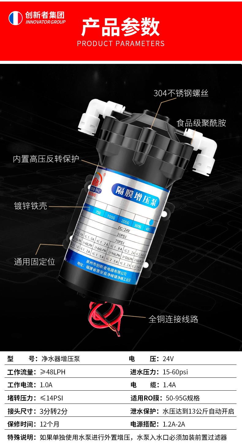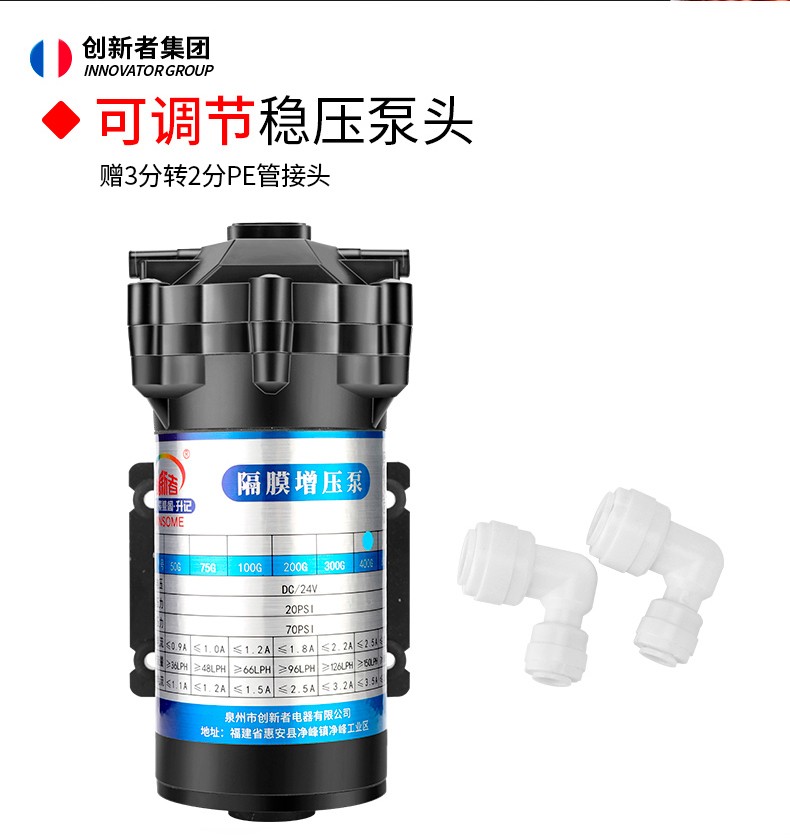 Innovator water purifier water pump water purifier motor reverse osmosis RO water machine direct drinking water machine pumping diaphragm booster pump self-priming type-100G flow (with connector)