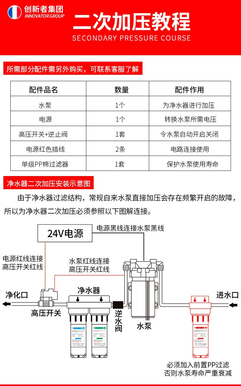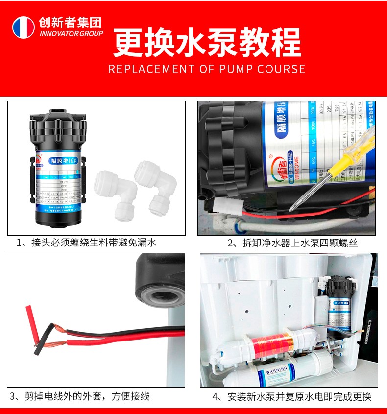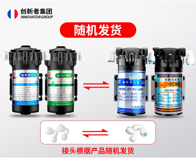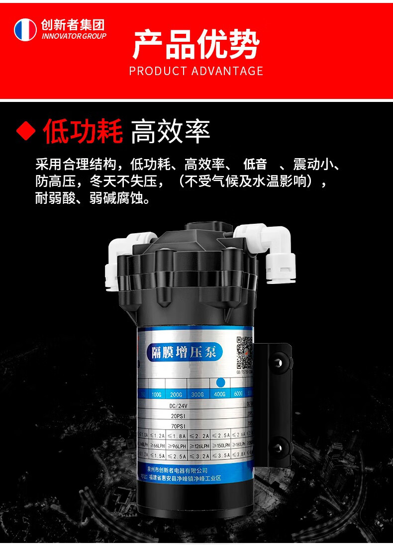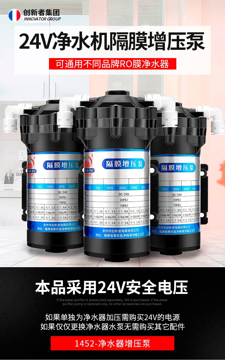 Innovator water purifier water pump water purifier motor reverse osmosis RO water machine direct drinking water machine pumping diaphragm booster pump self-priming type-100G flow (with connector)
