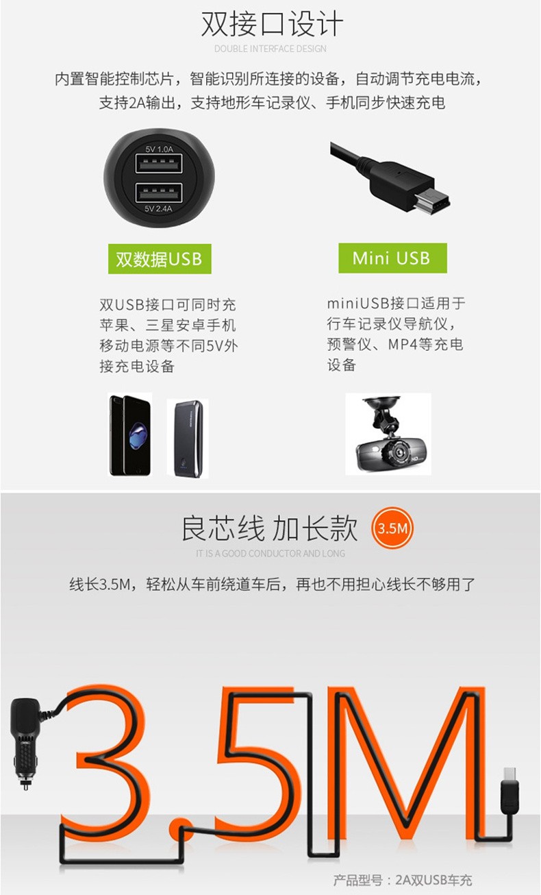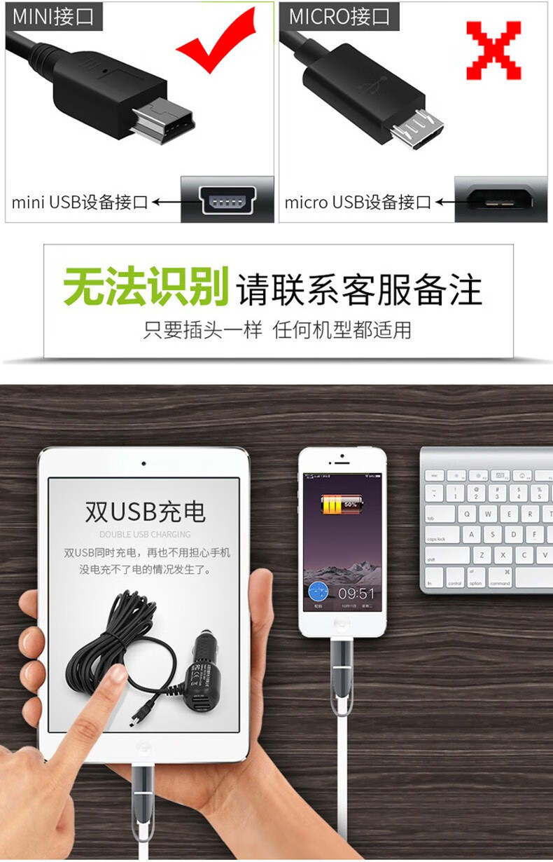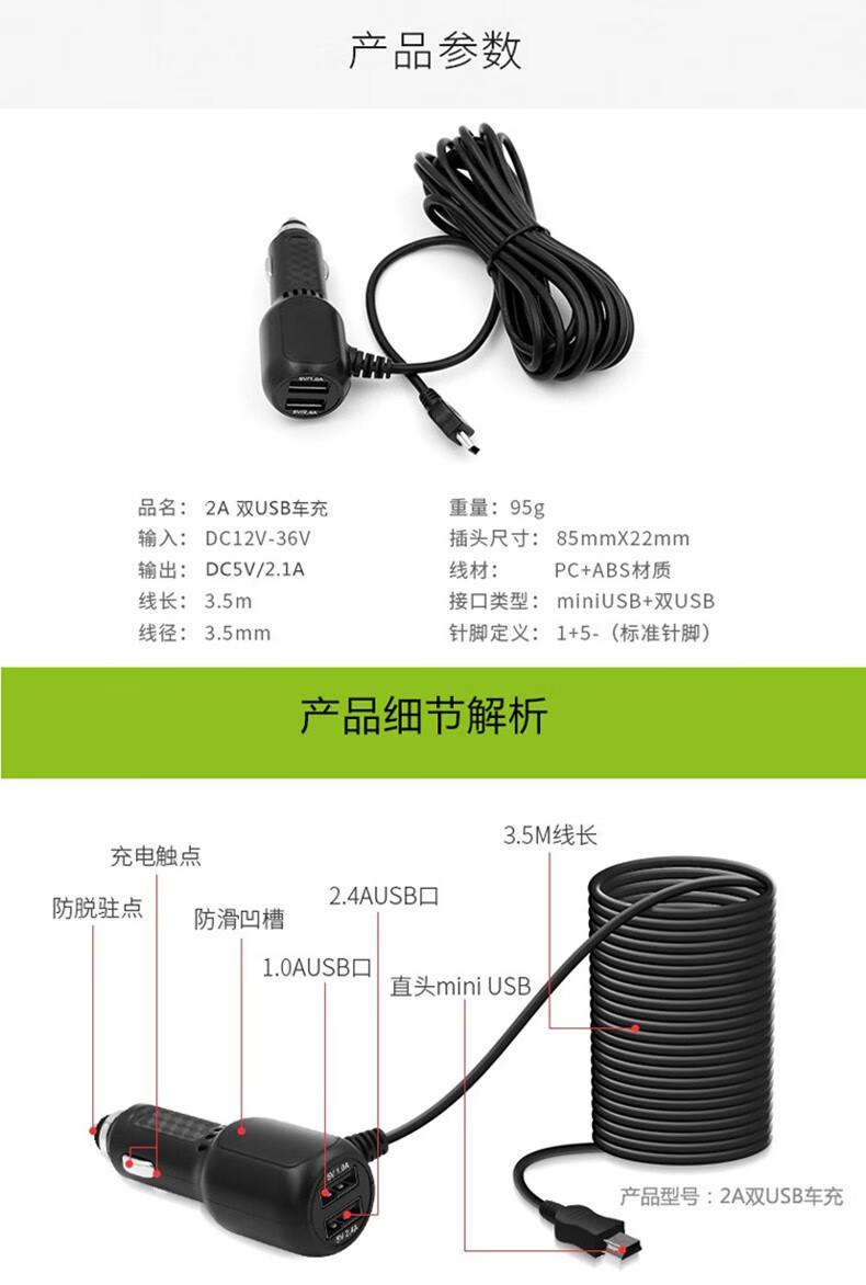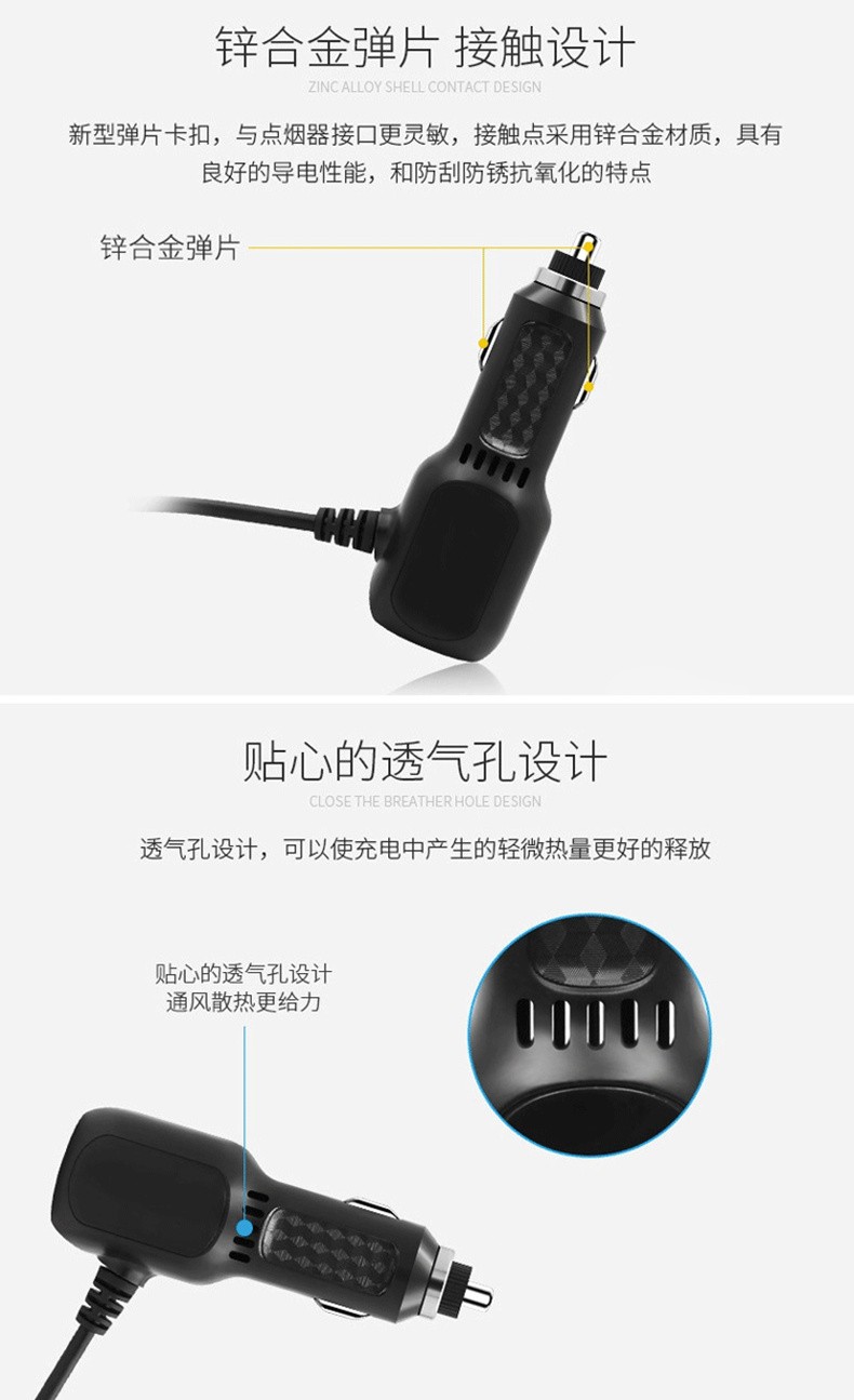 Bluesdan driving recorder power cord cigarette lighter plug car charger with dual USB charging cable portable navigator GPS universal power supply cable