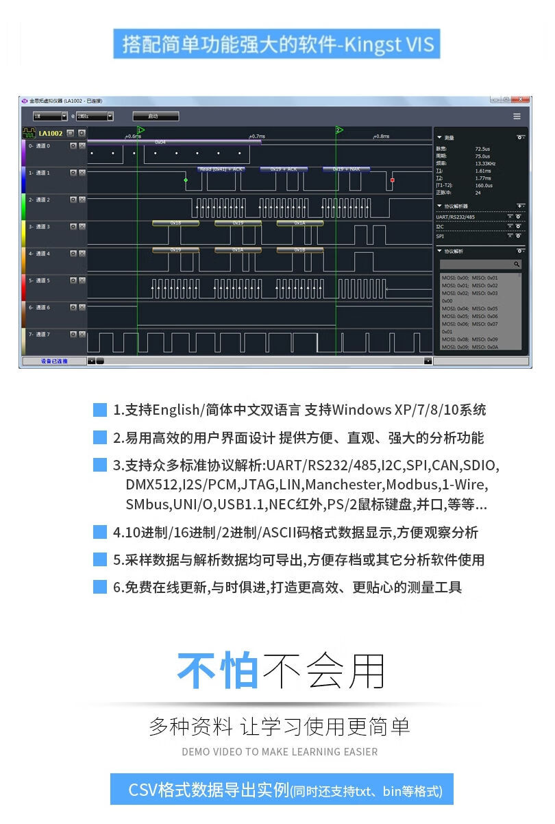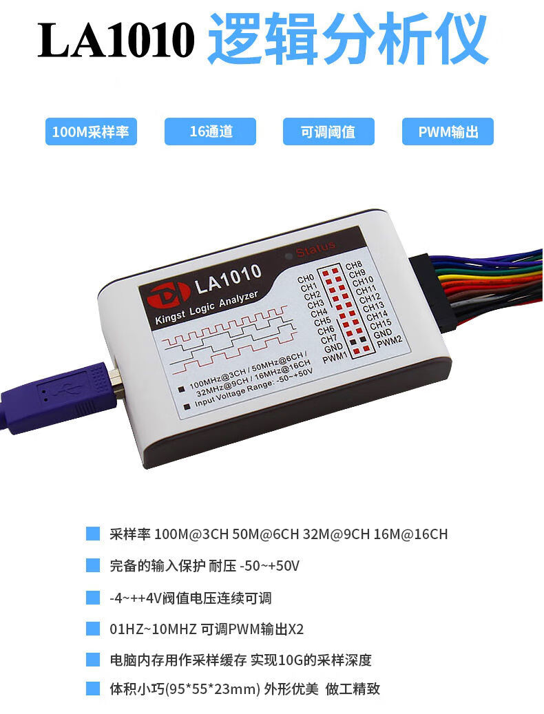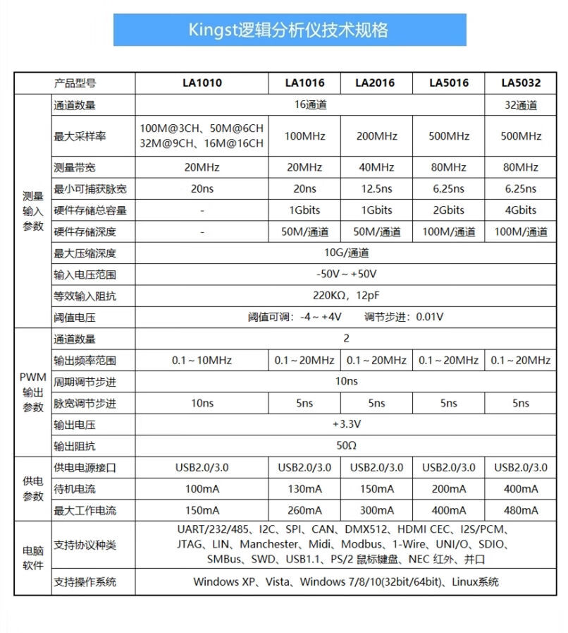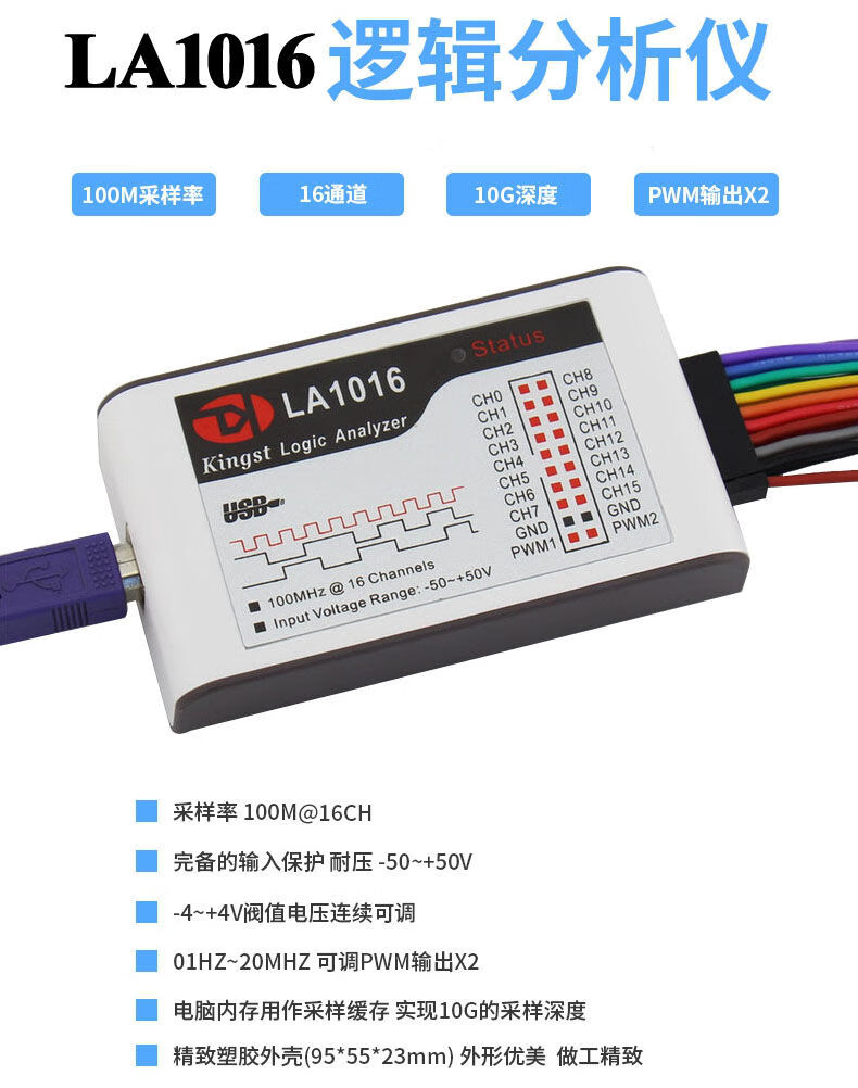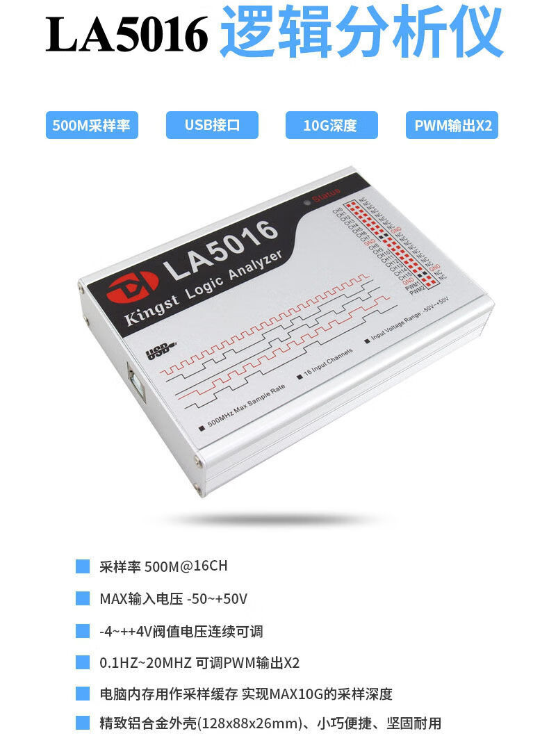 Kingst USB logic analyzer 16/32 channels USB protocol analysis 100M 200M 500M acquisition rate PWM KINGST LA5016 logic analyzer