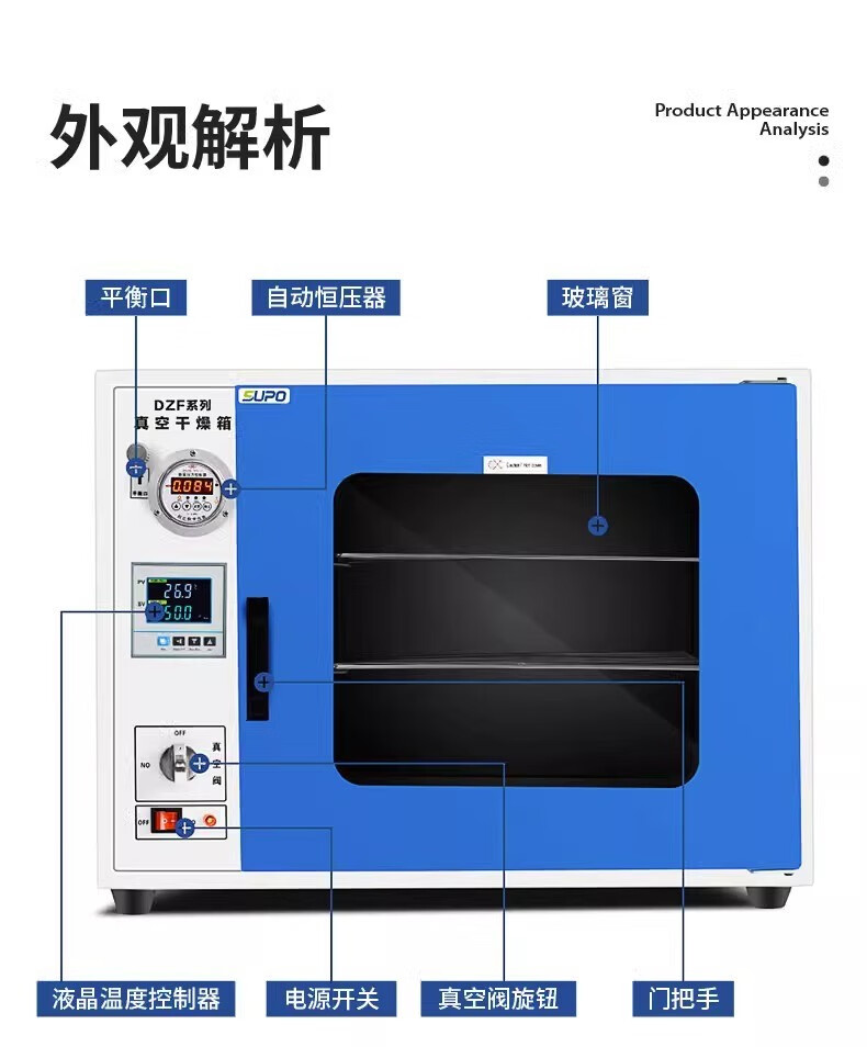 Soper vacuum drying oven experimental vacuum oven vacuum dryer electric heating constant temperature drying oven industrial oven DZF6020 plastic spray liner ordinary model 25l