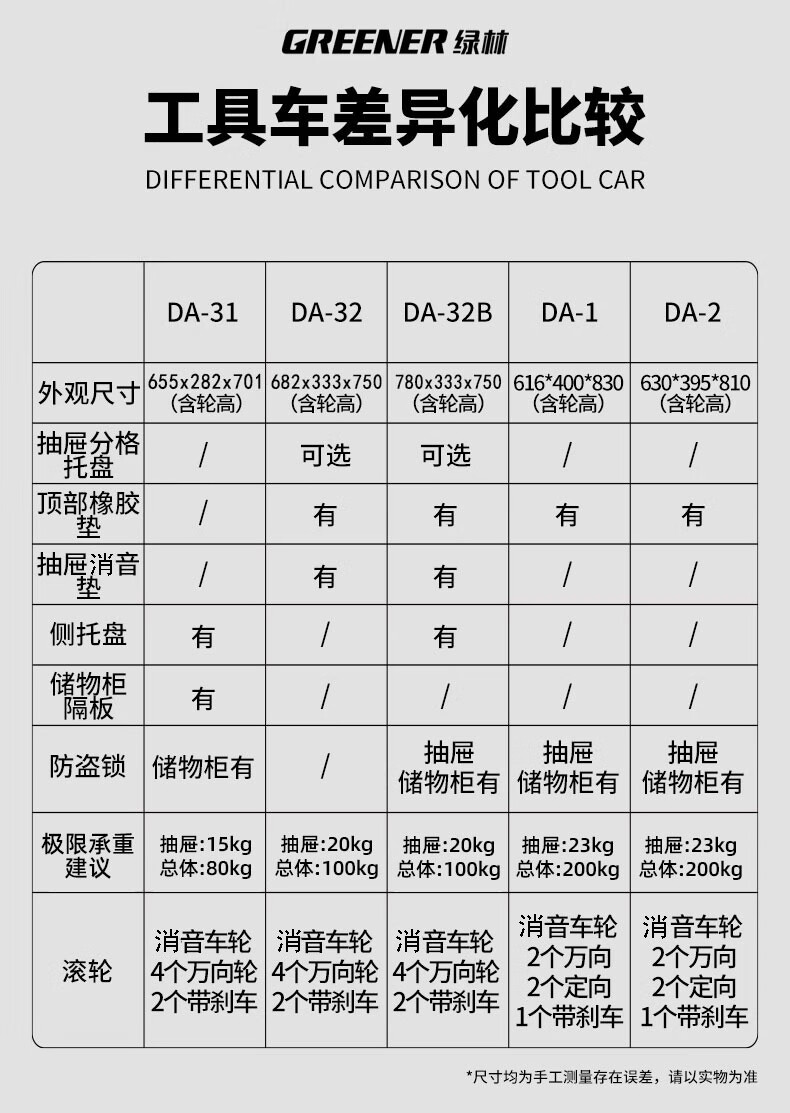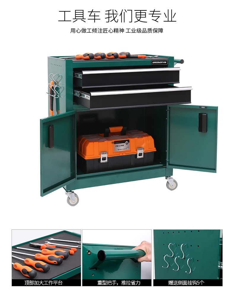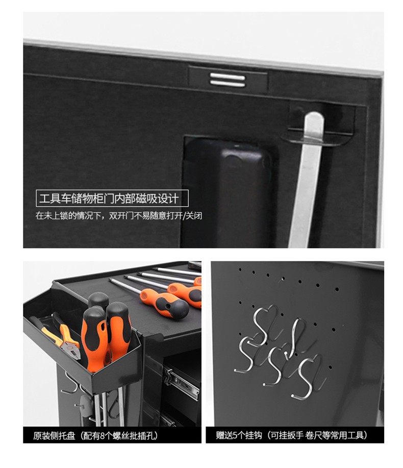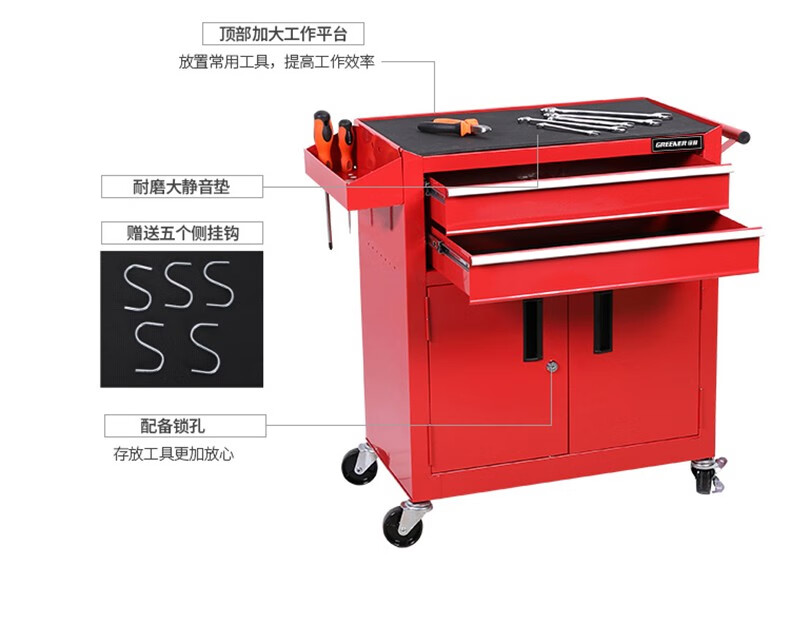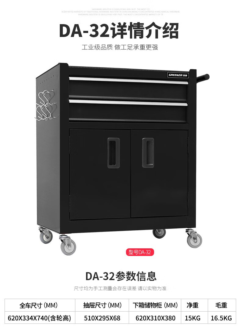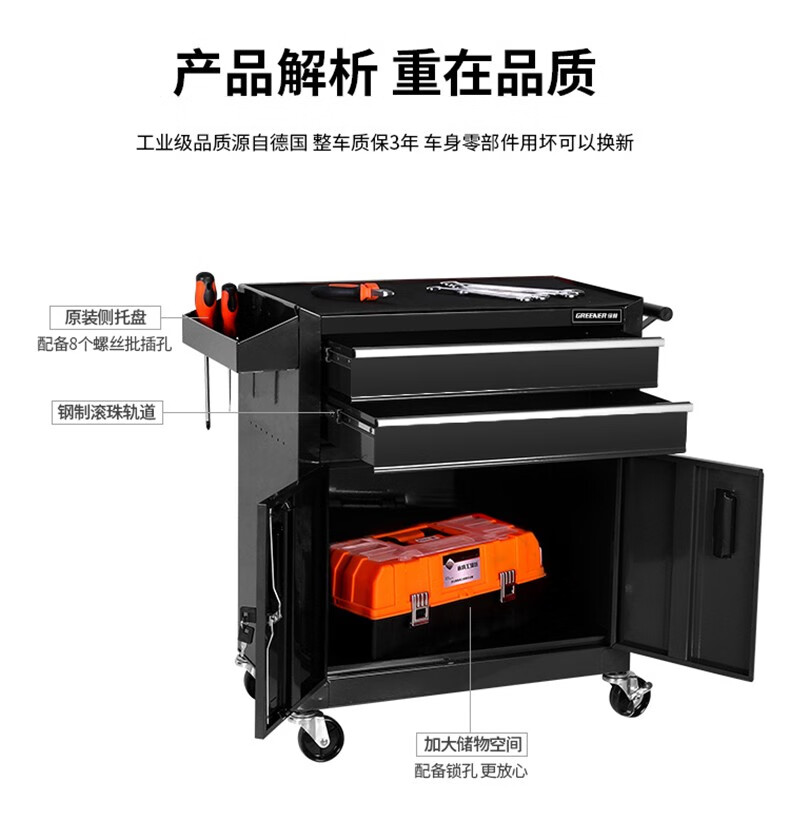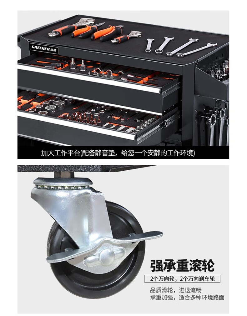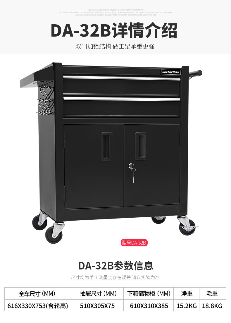 GREENER Tool Trolley Mobile Trolley Multifunctional Storage Cabinet Repair Single Mobile Toolbox Iron Tattoo Workbench DA-32 Black Double Brake Silencer Wheel + Anti-Slip Pad