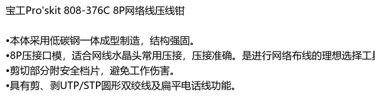 Baogong (Pro skit) 8P network cable crimping pliers single port network cable pliers crimping pliers 808-376C