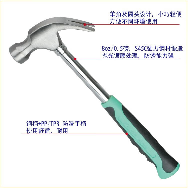 Baogong (Pro sKit) PD-2609 claw hammer, minimum order hammer, iron woodworking hammer, hammer escape hammer (8OZ/0.5 lbs)