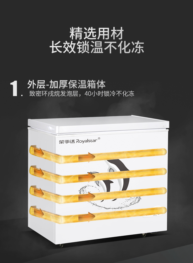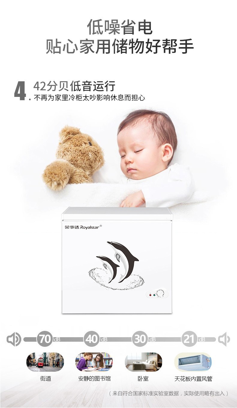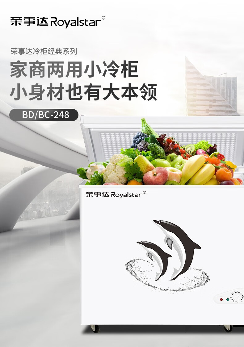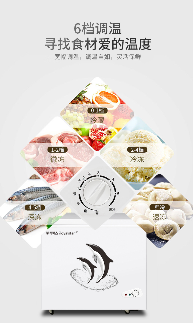 Royalstar 248L household commercial horizontal large freezer refrigeration-freezer conversion freezer white 248L
