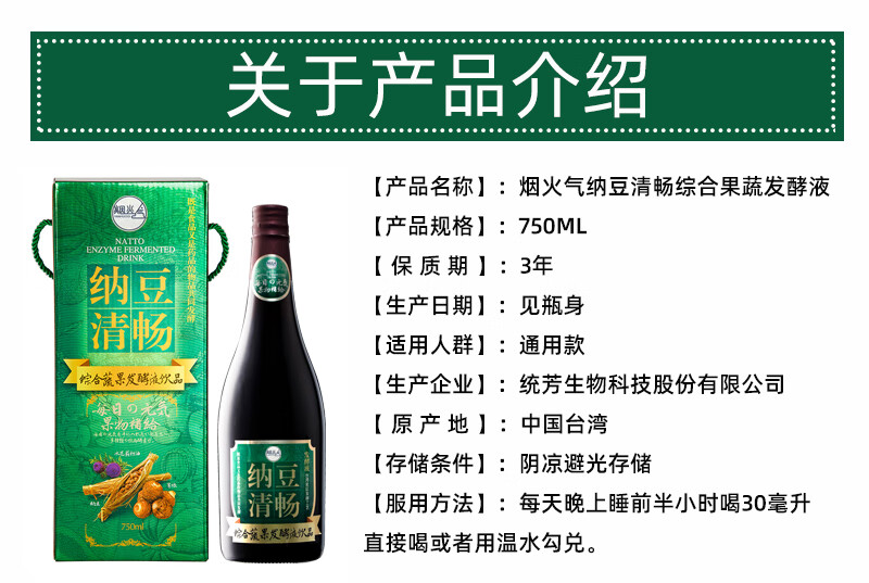 Fireworks gas imported from Taiwan enzyme stock solution probiotics net clear and clear natto kudzu kudzu red yeast filial element natto clear and clear 750ml*1 bottle