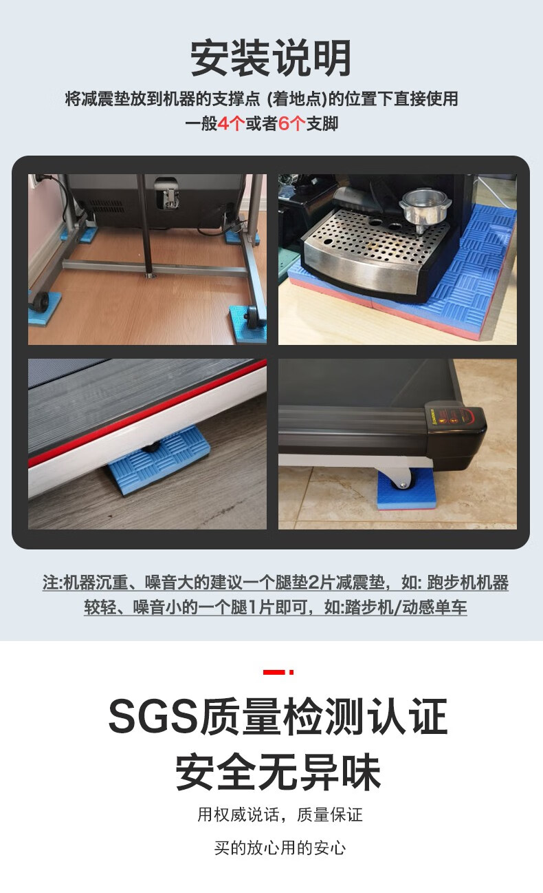 Siborui home treadmill mat sound insulation pad shock-absorbing pad thickened shock-proof pad anti-slip noise reduction pad moisture-proof pad 6 pieces random color 13*13cm thickness 2.5cm