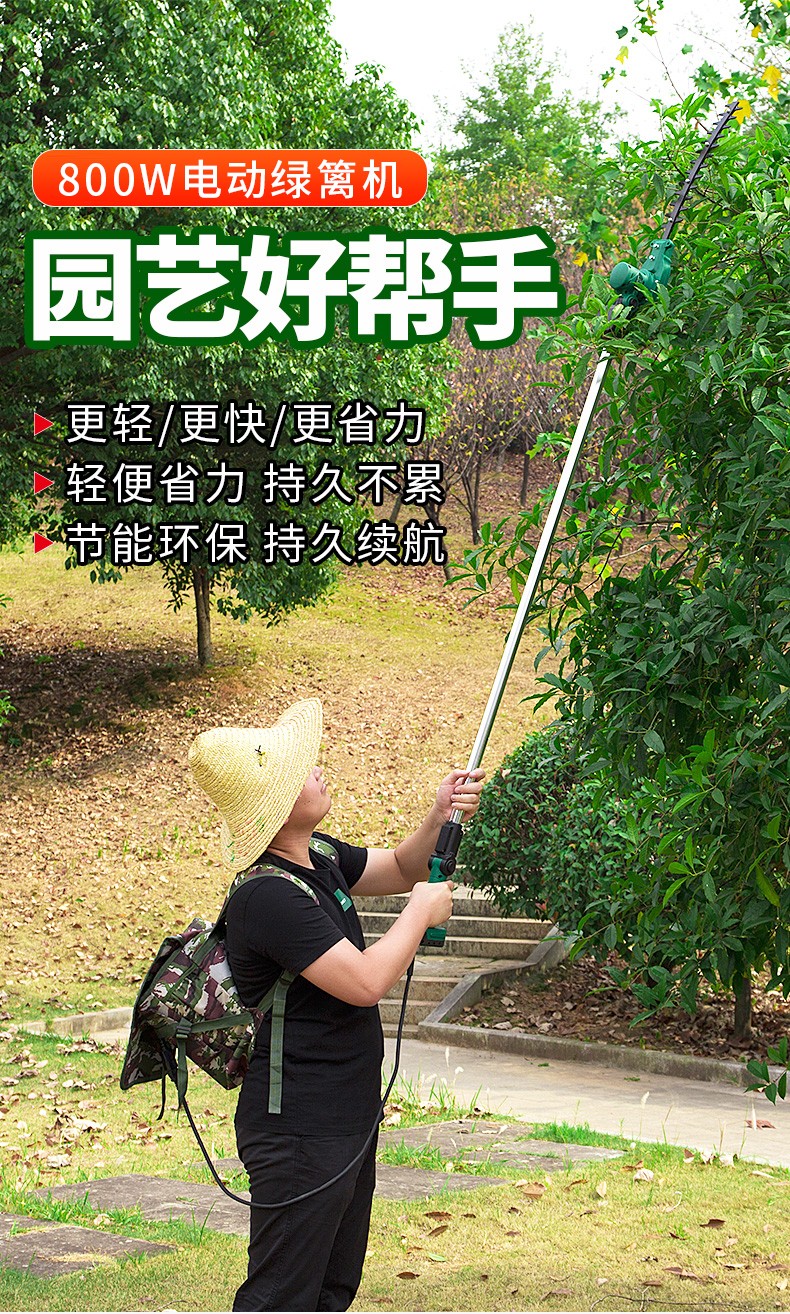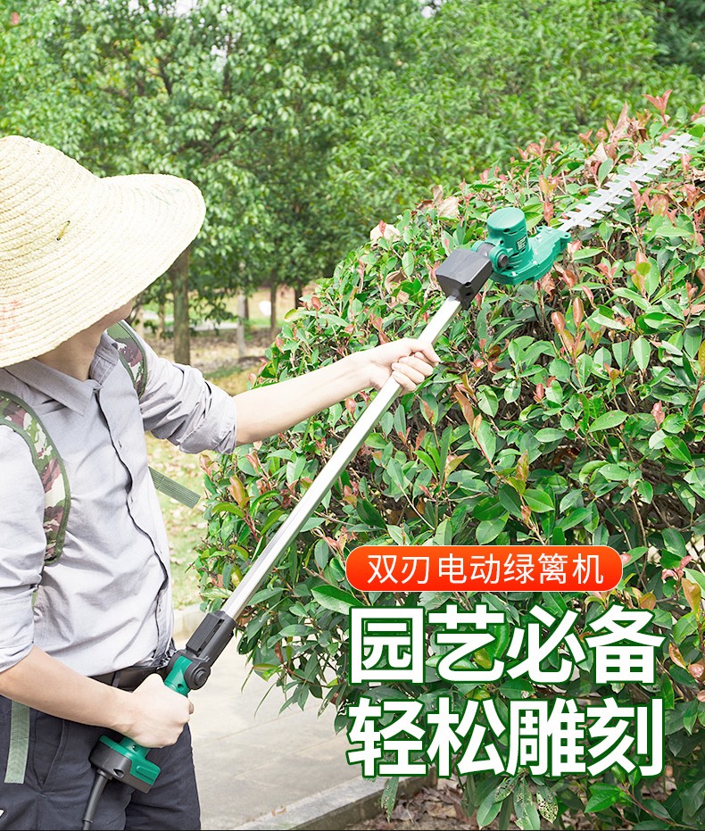 Maiyue rechargeable electric hedge trimmer gardening extension pruning high branch hedge DC tea tree hedge shears electric agricultural tools 3.2 meters retractable machine + 48v20a lithium battery
