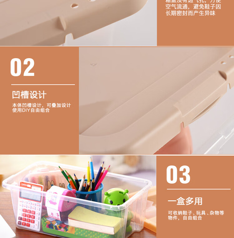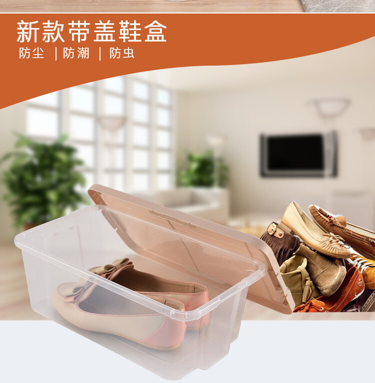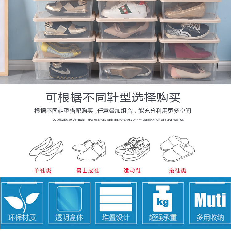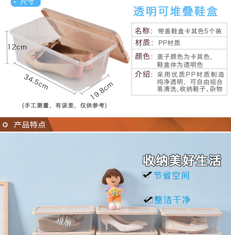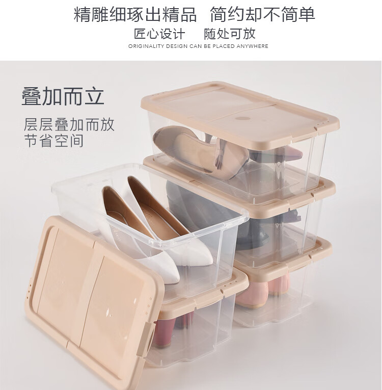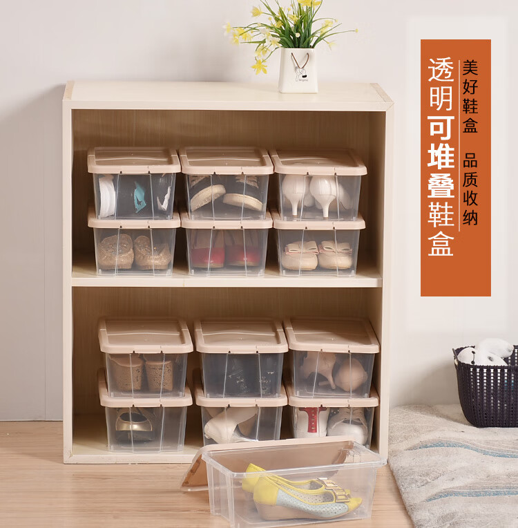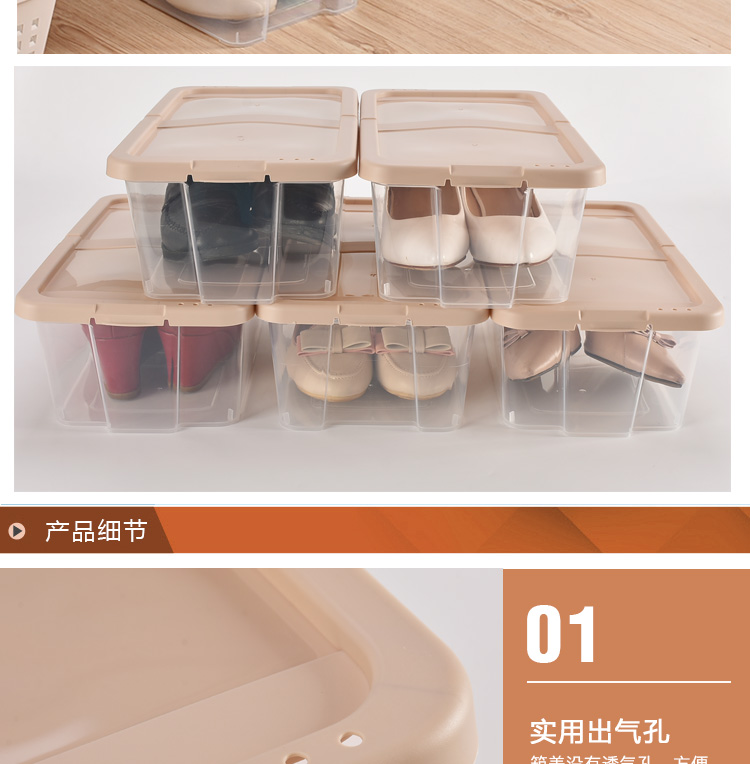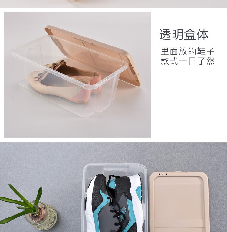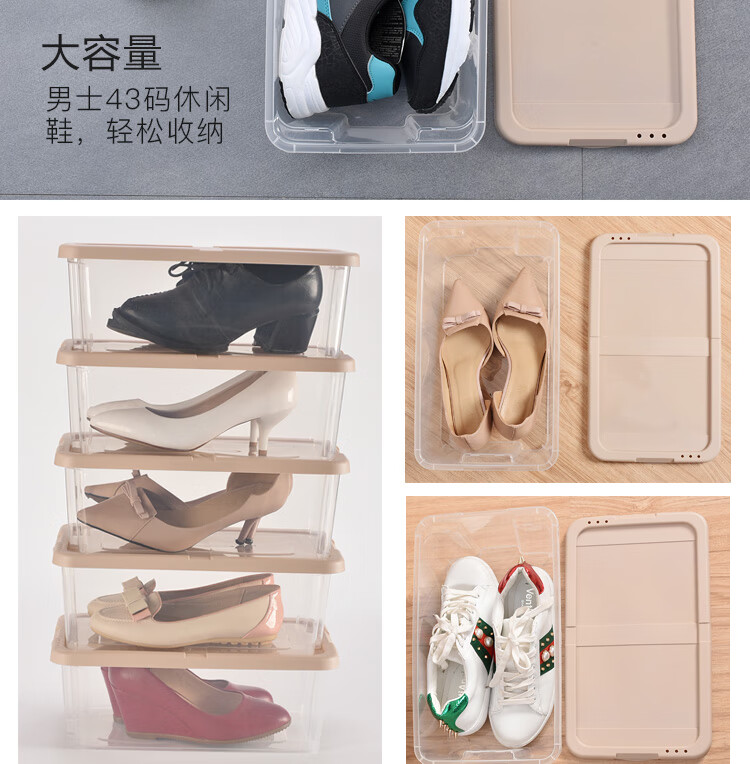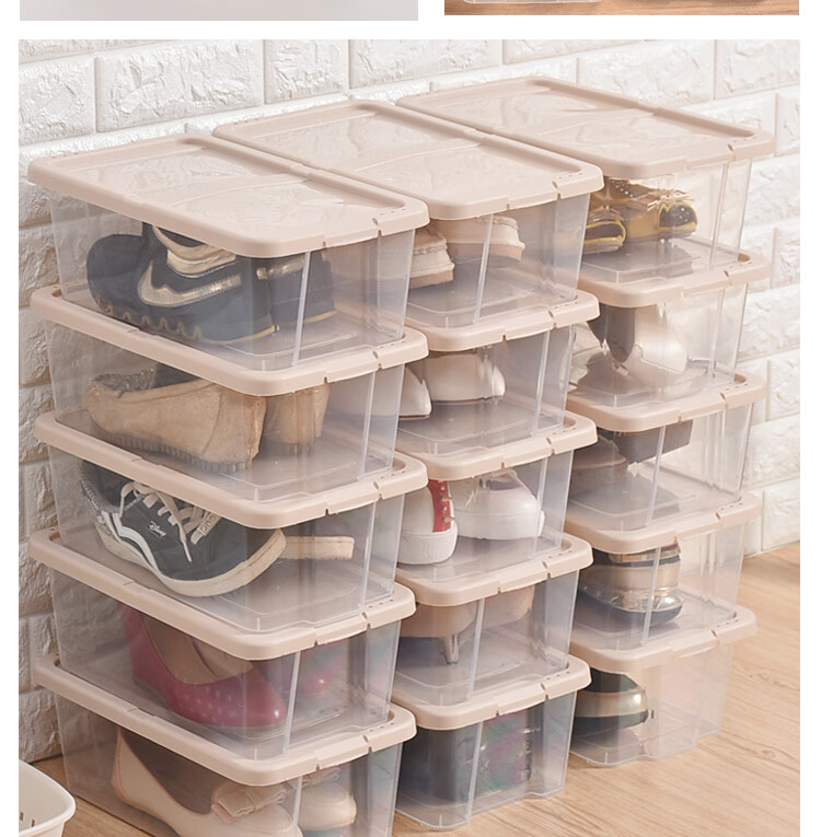 Bailu plastic shoe box thickened and stackable shoe box storage box transparent shoe box desktop storage box 5 pieces khaki 35.2x20.4x12.3cm