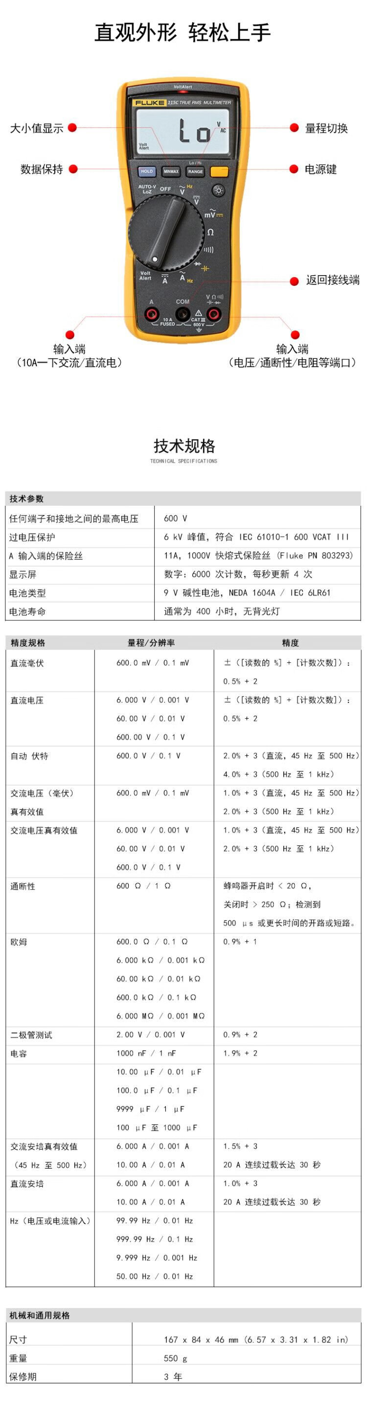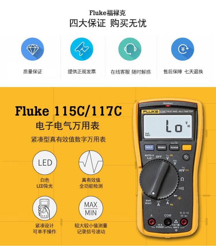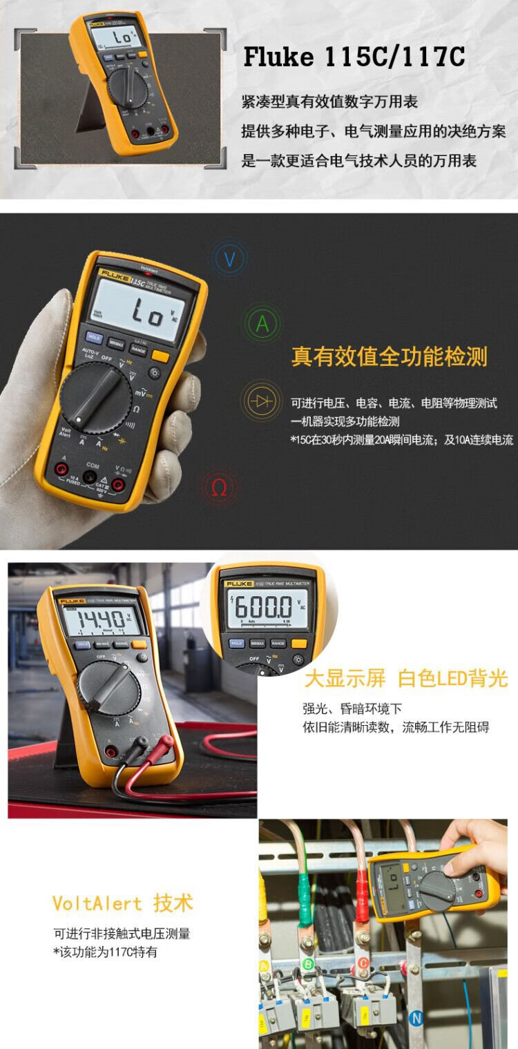 FLUKE F115C True RMS digital multimeter High-precision smart electrician meter Multi-purpose ammeter
