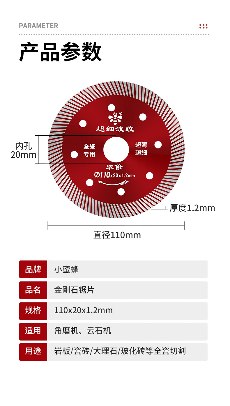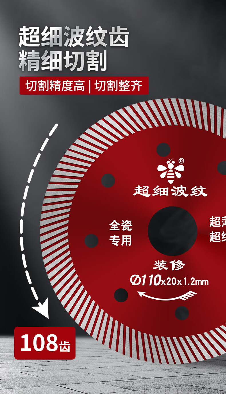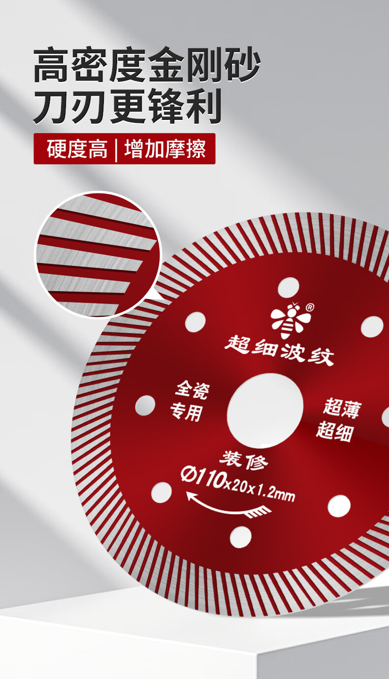 Little Bee Tile Cutting Sheet Vitrified Tile All-Ceramic Microcrystalline Stone Blade Cutting Machine Diamond Saw Blade Ultra-Fine Ripple 110 Decoration Red (Five Pieces)
