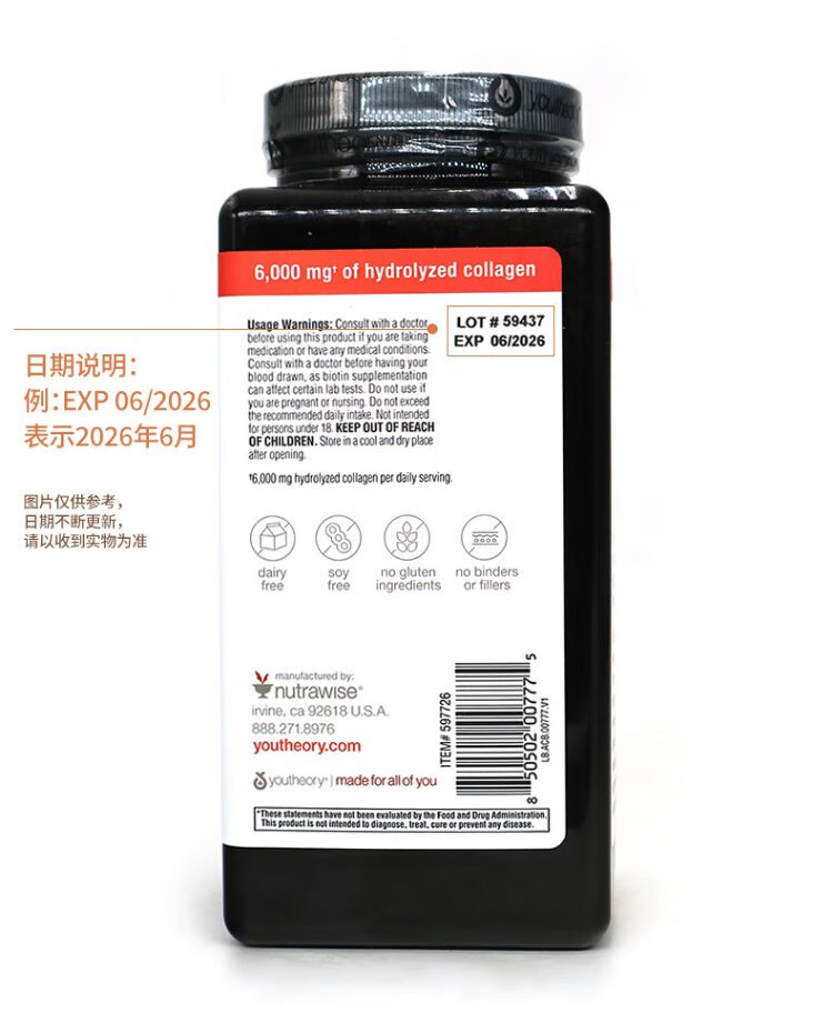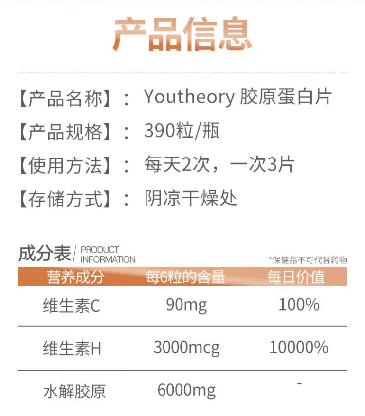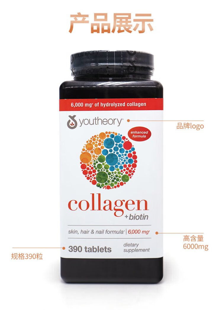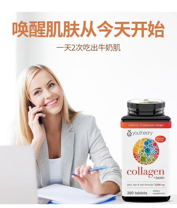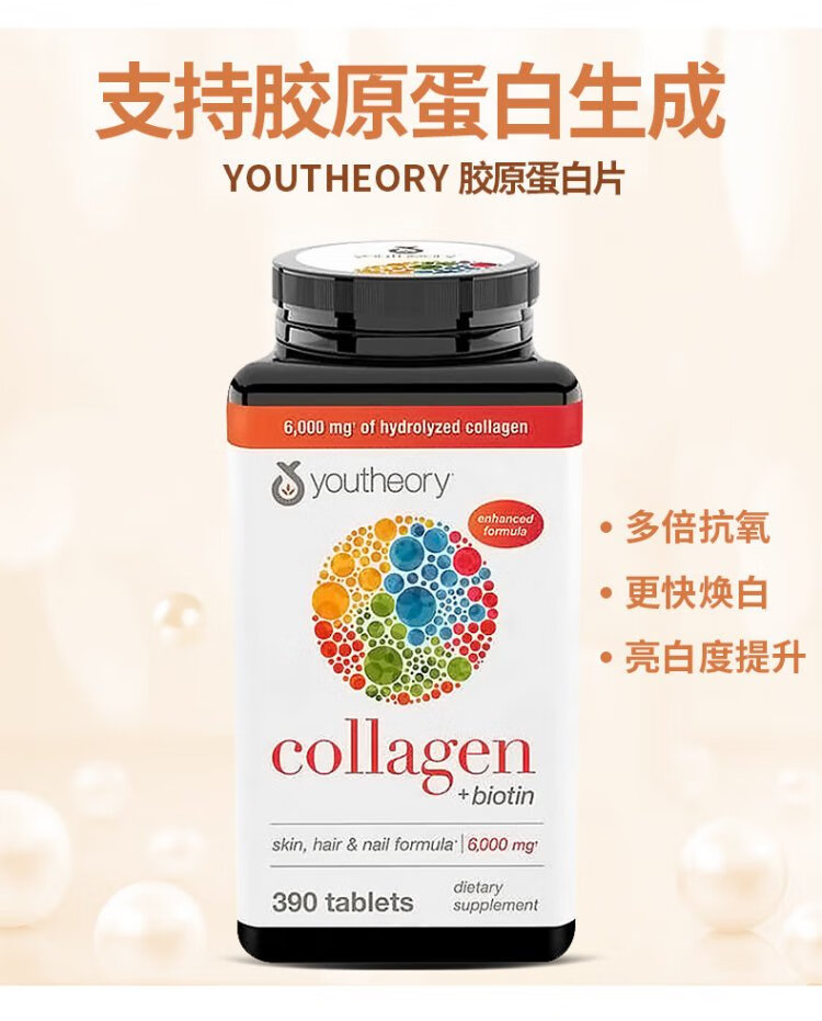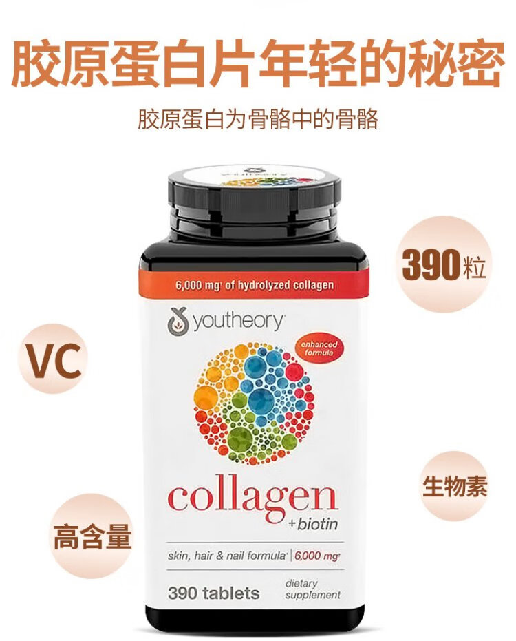 Youtheory collagen collagen 390 capsules, 18 kinds of amino acids containing vitamin C, collagen tablets imported from the United States, whitening and nourishing, tightening the skin, 390 capsules * 1 bottle