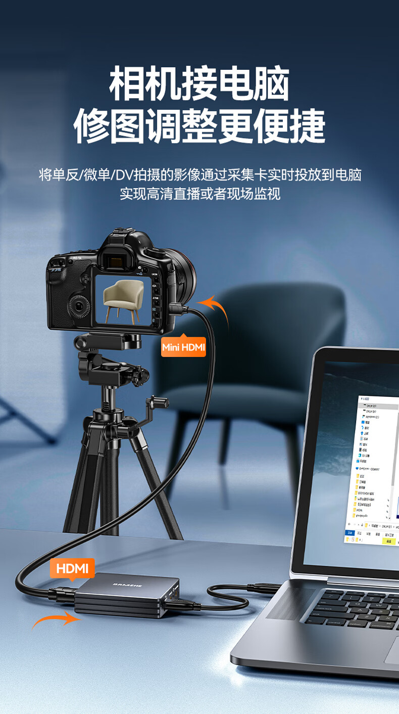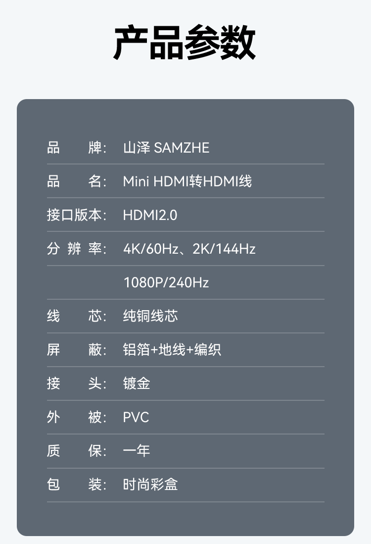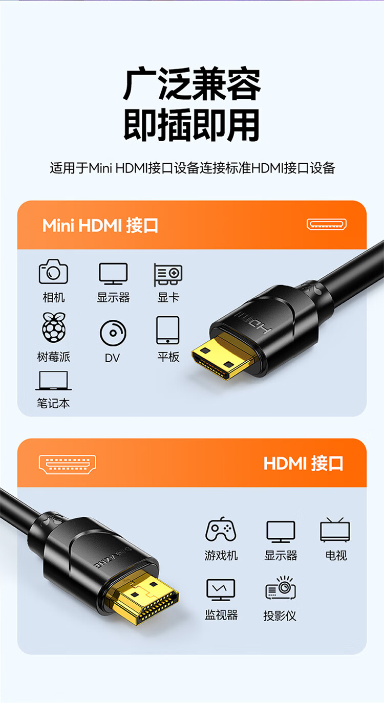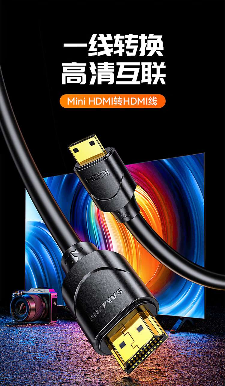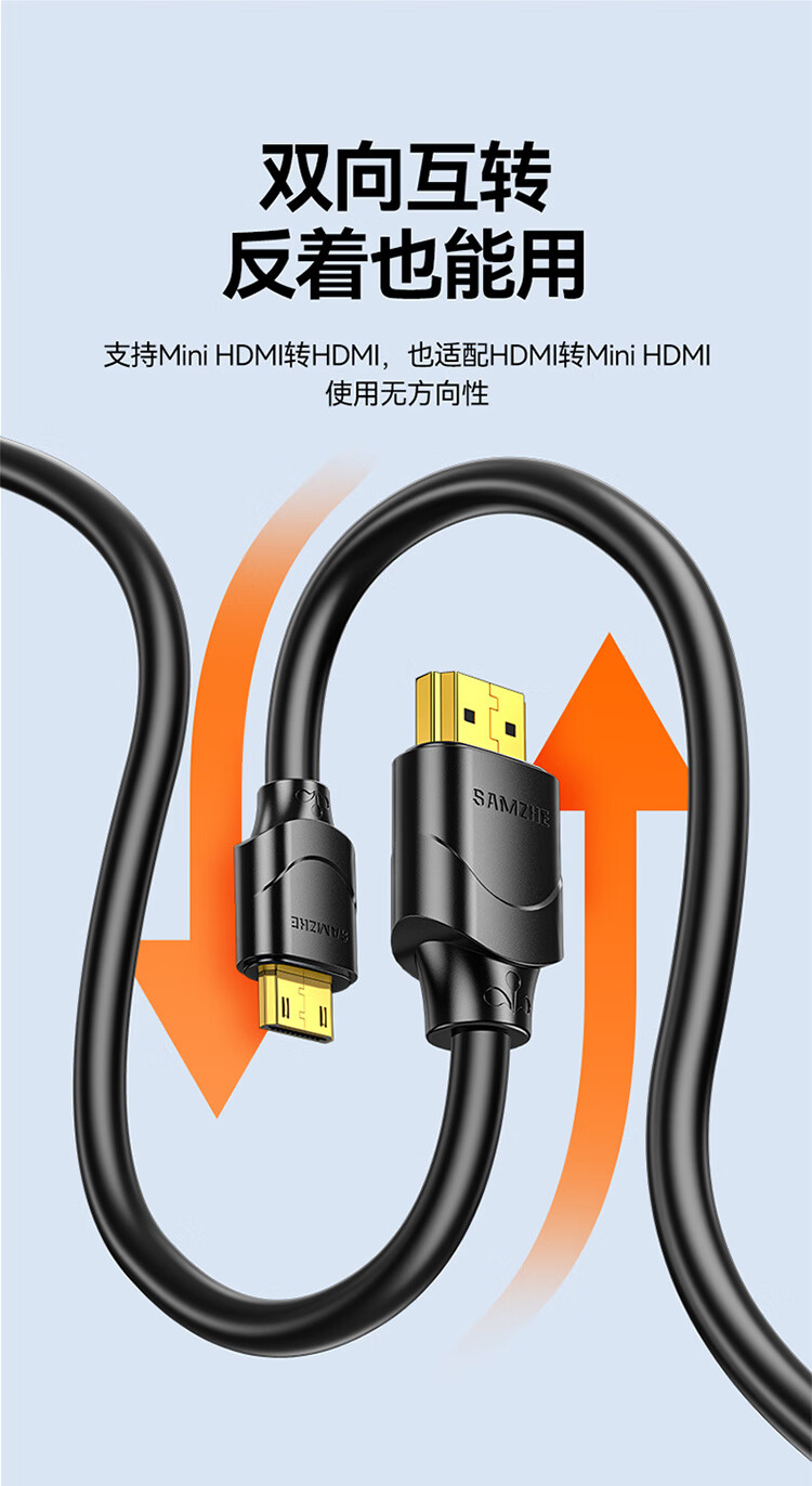Shanze Mini HDMI to HDMI2.0 conversion cable mini high-definition cable 4K60Hz camera tablet portable screen connected to computer monitor TV projector 1.5 meters 13MN9