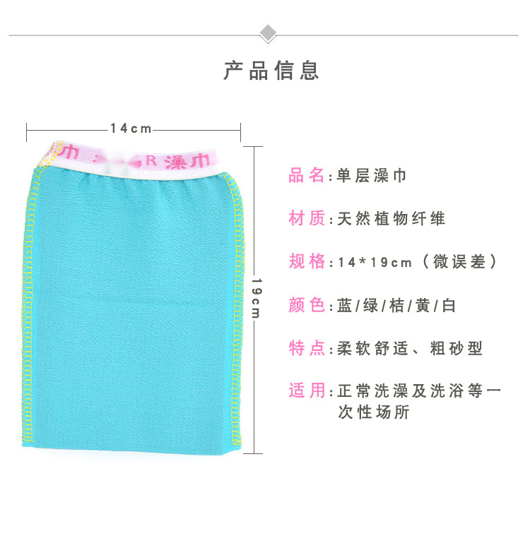 Bath towel adult thin single layer strong mud scrub bath towel double-sided decontamination back rub gloves creative single layer 5 pack color
