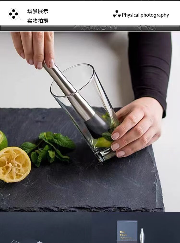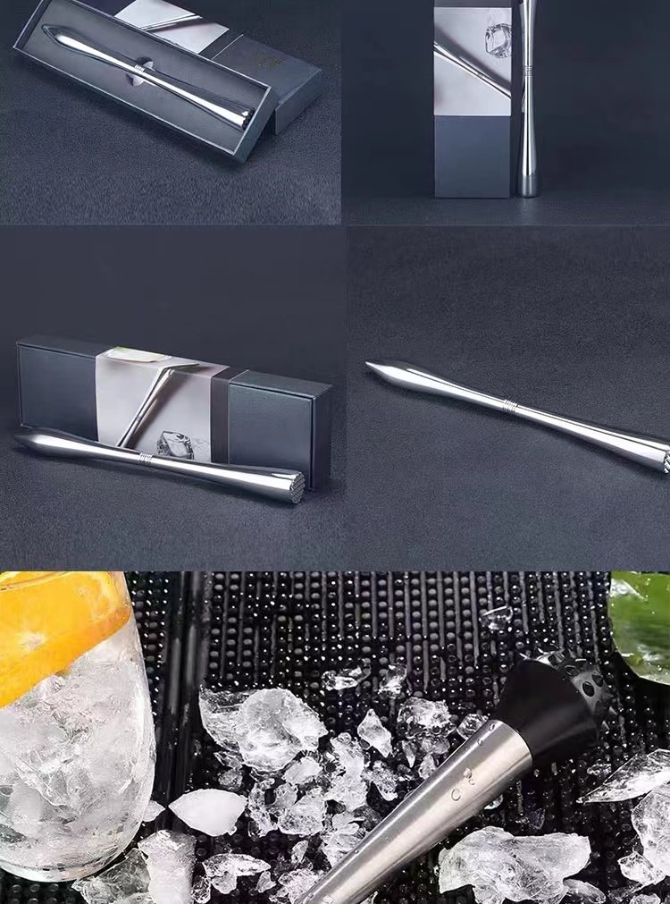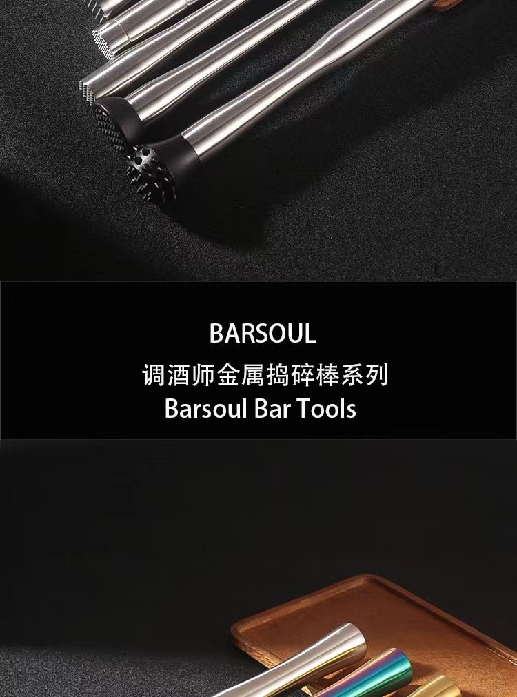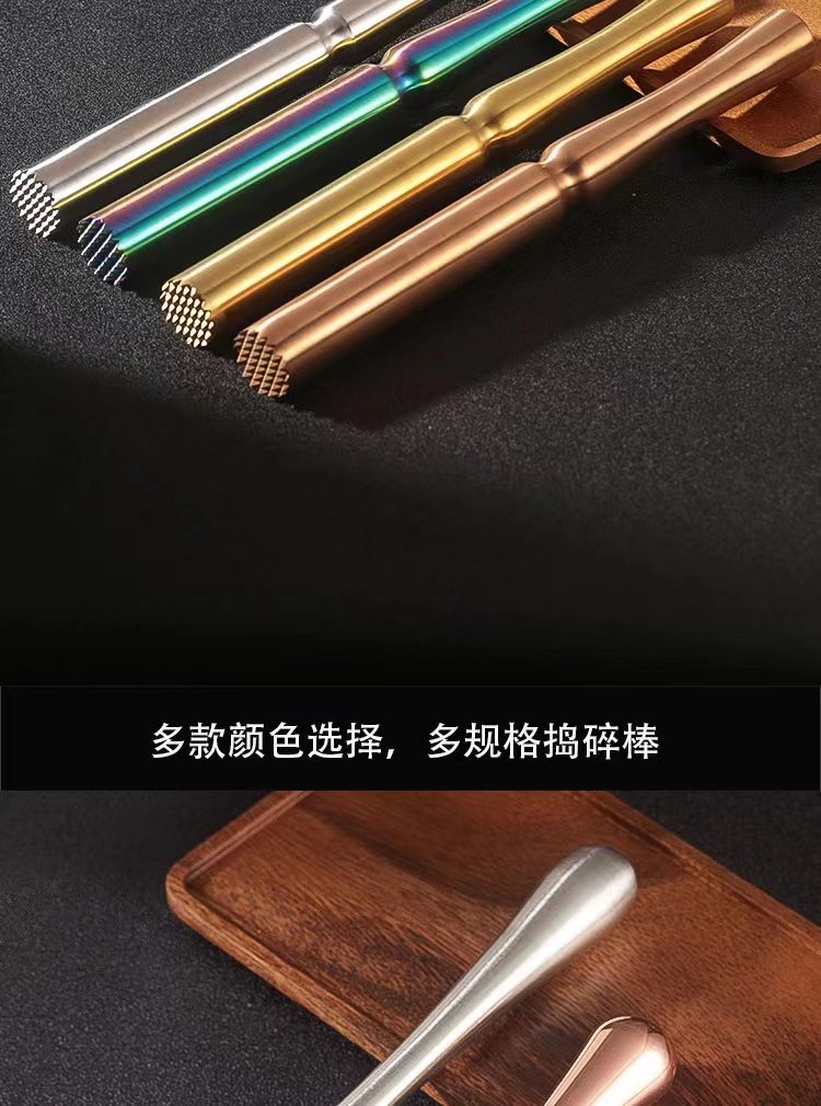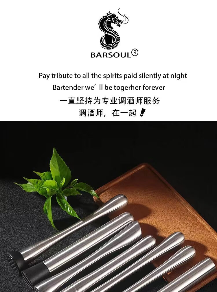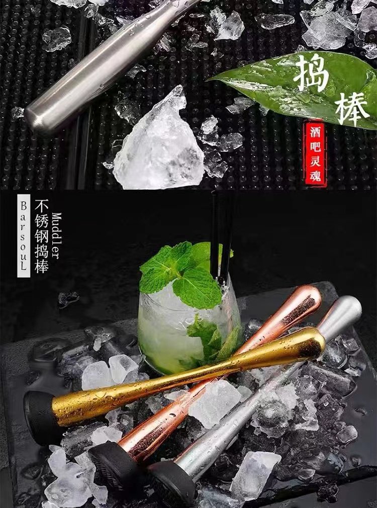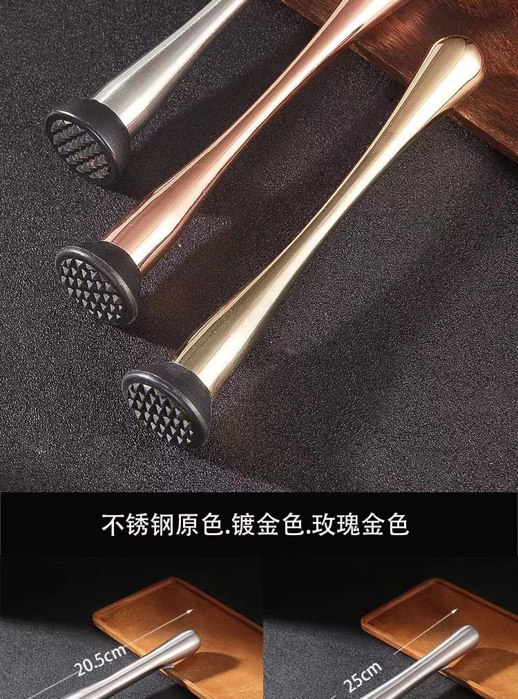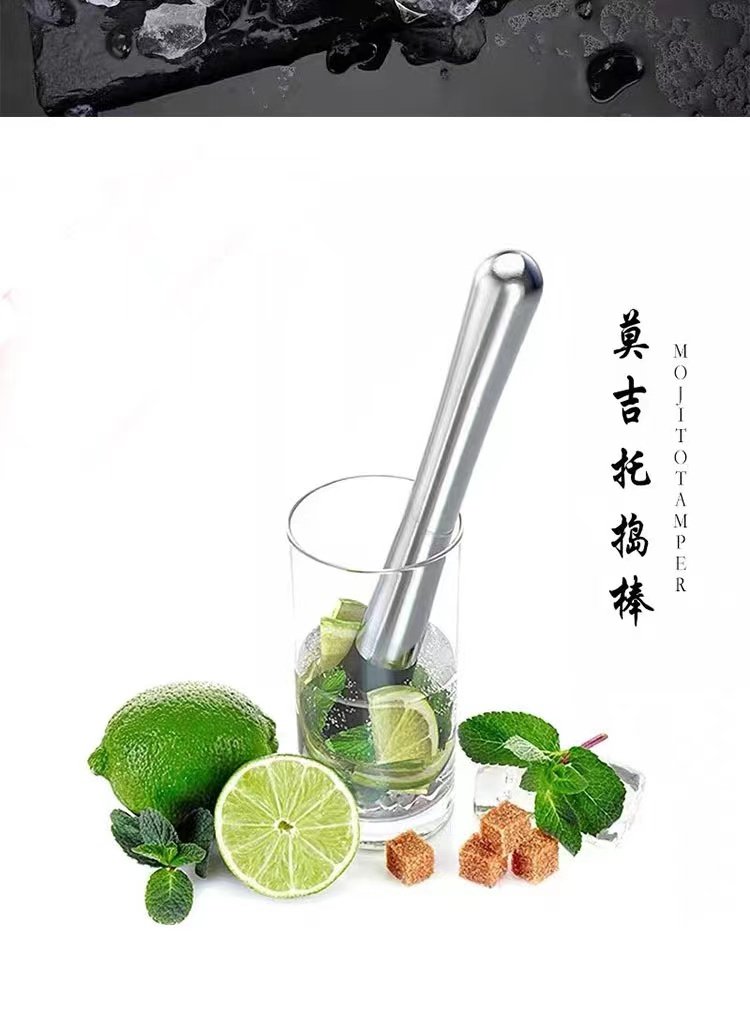 Bar Soul Stainless steel mash stick Ice hammer crushed popsicle Lemon mint leaf crush stick Mojito cocktail mash stick Extended classic style Original color