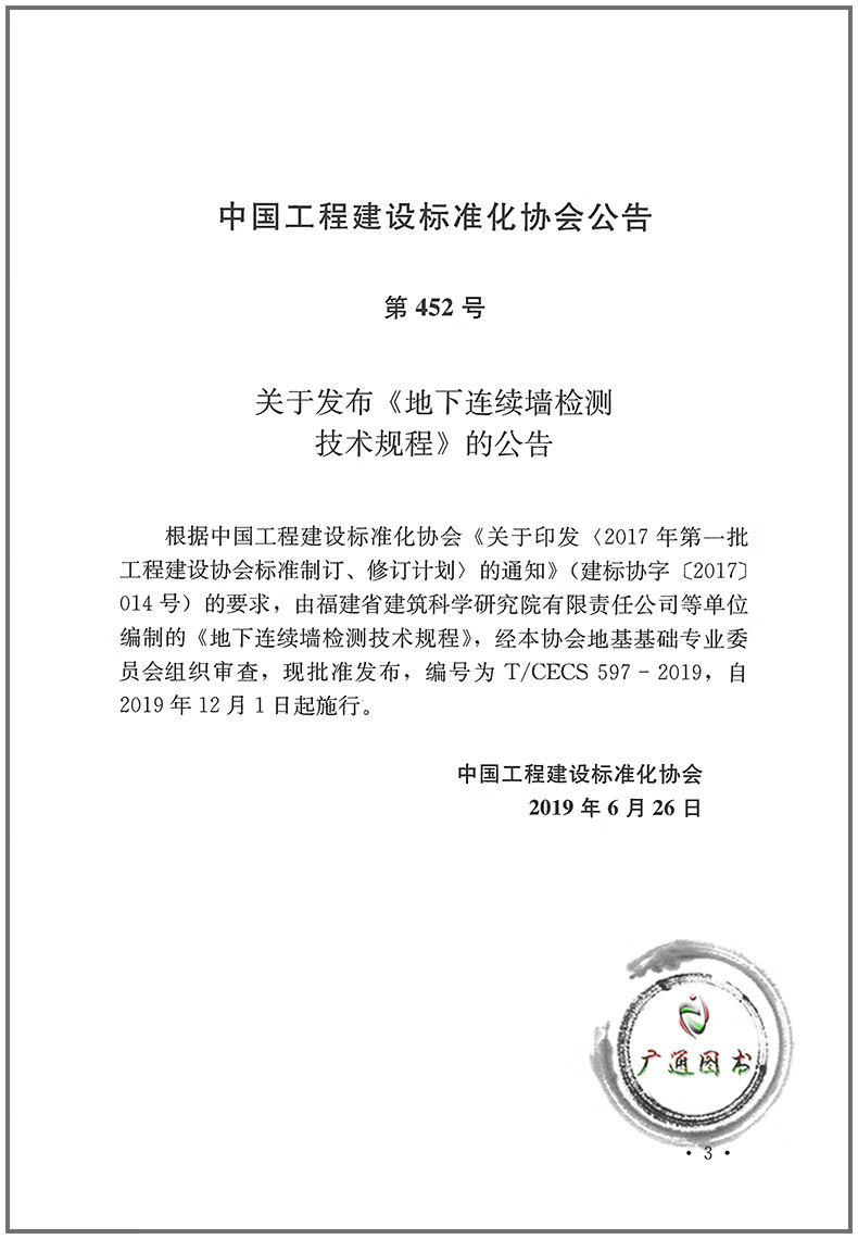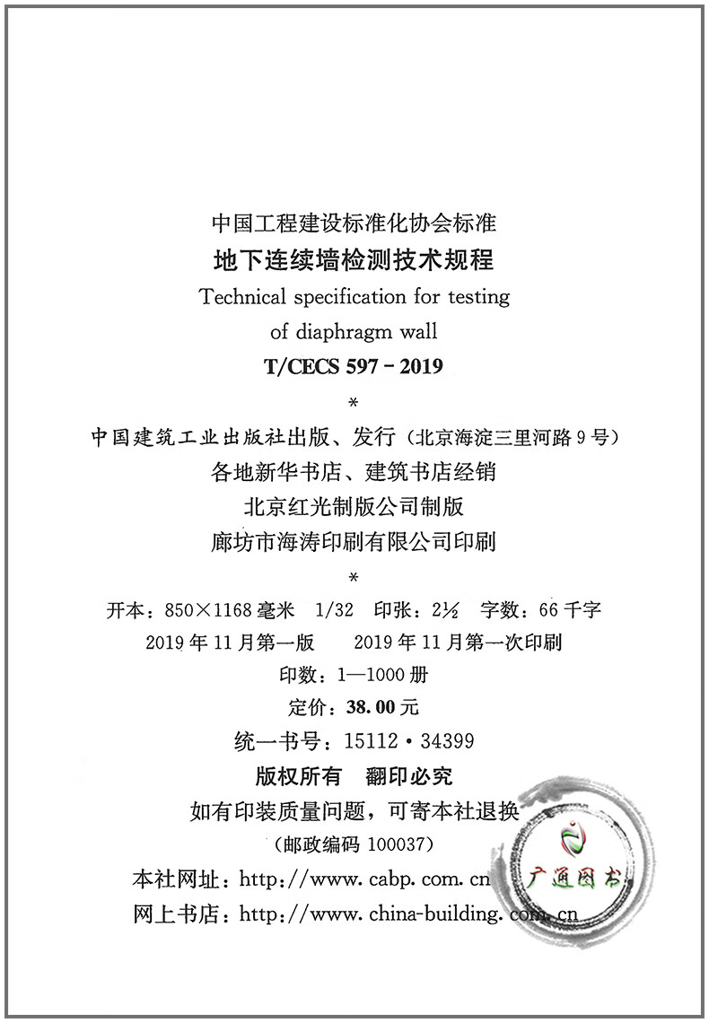 T/CECS 597-2019 Technical Regulations for Inspection of Underground Diaphragm Walls