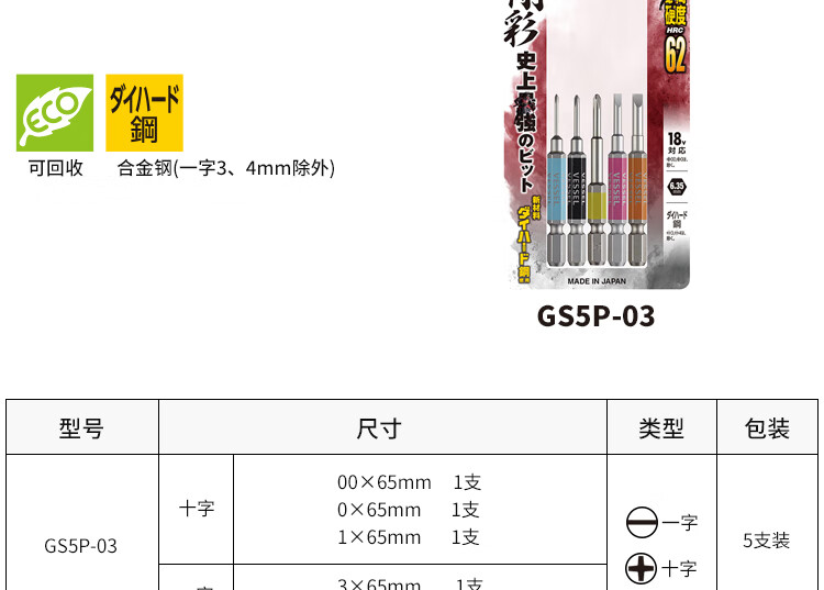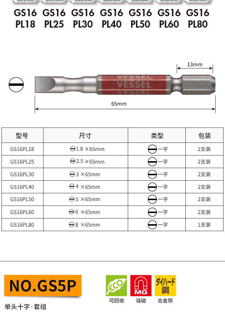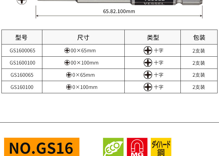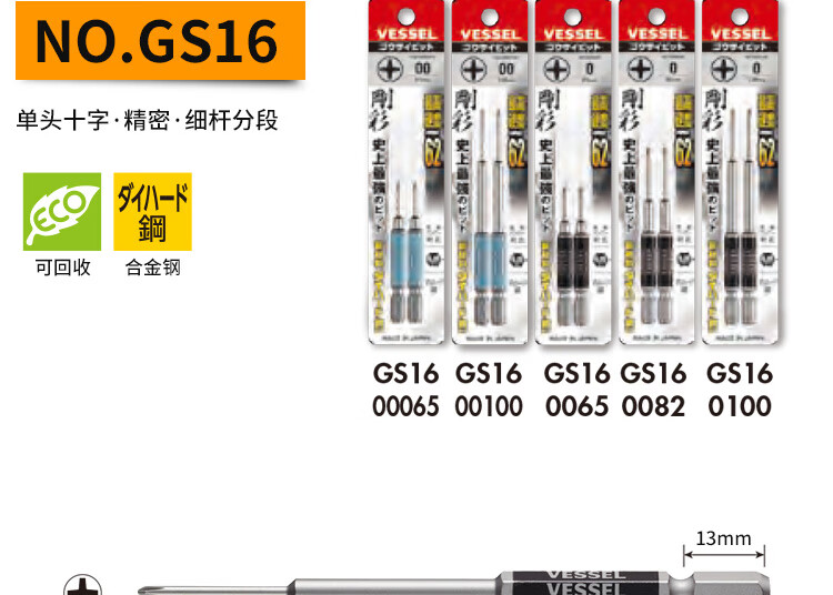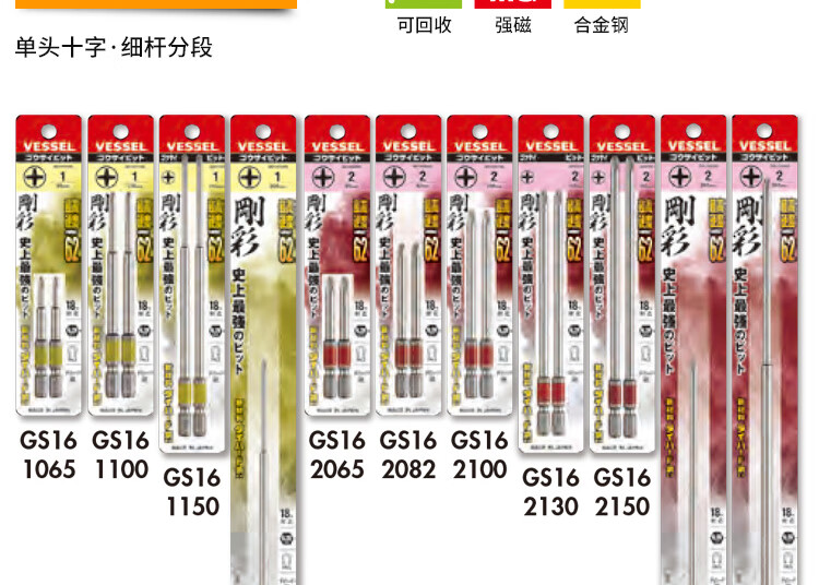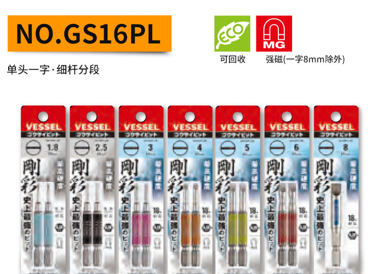 VESSEL Weiwei Japan original imported color single magnetic single-head screwdriver repair screwdriver repair screwdriver set GS162130 Cross 2 130-2
