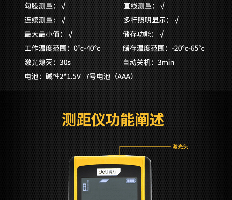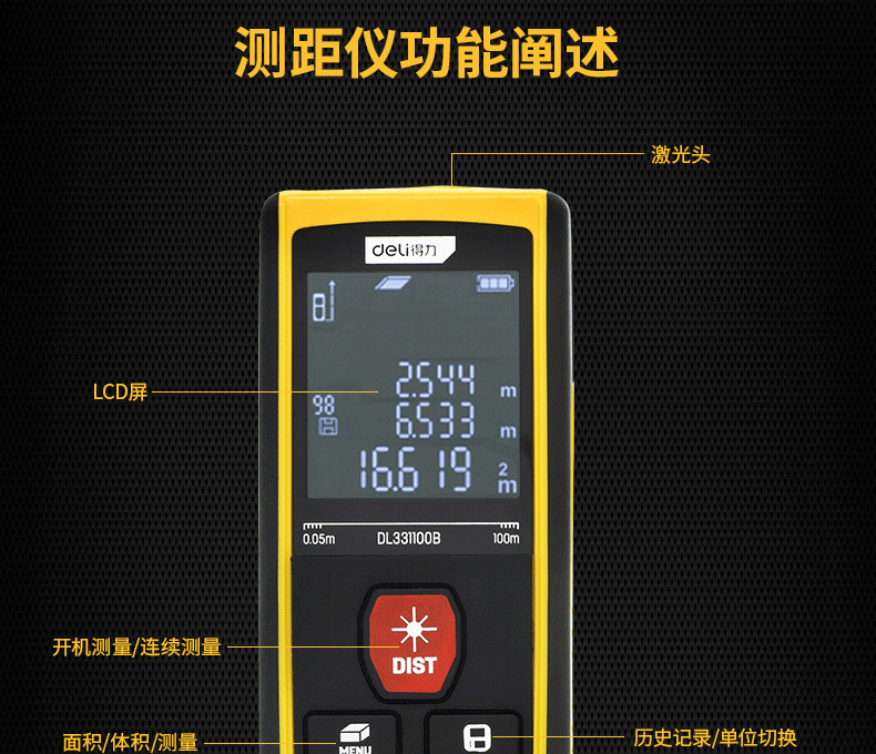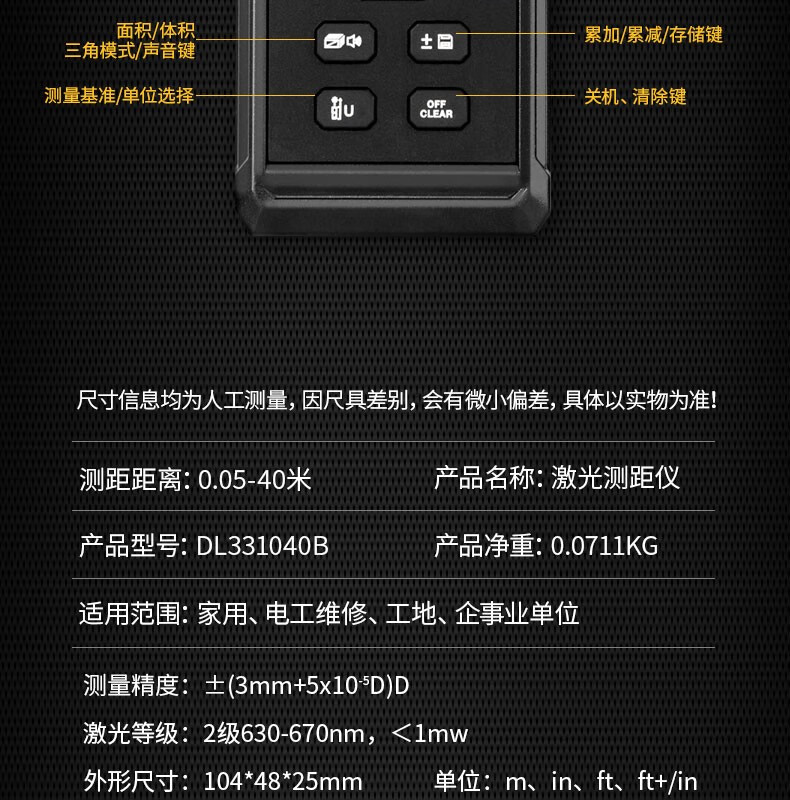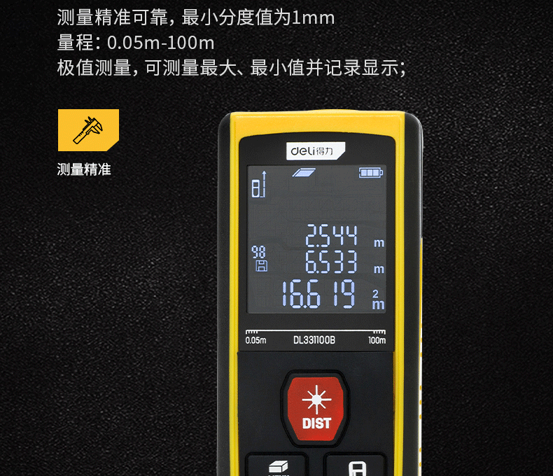 Deli Tools Laser Distance Meter High-Precision Measuring Instrument Handheld Distance Measurement Room Instrument Laser Ruler Electronic Ruler Laser Distance Meter 40m