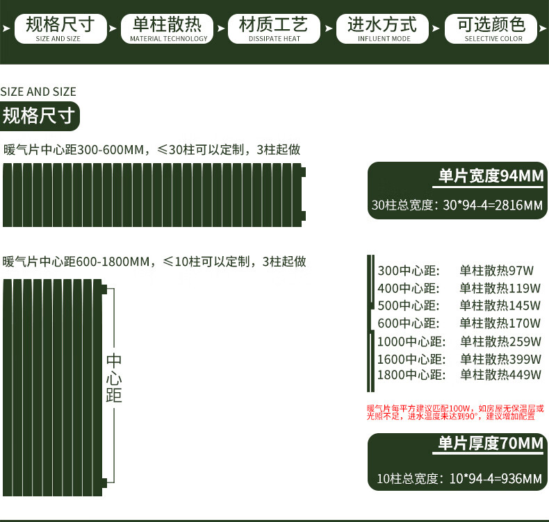 Senrat copper-aluminum composite radiator household water heating radiator anti-smoke wall radiator household wall-mounted center distance 1200mm-height 1240mm