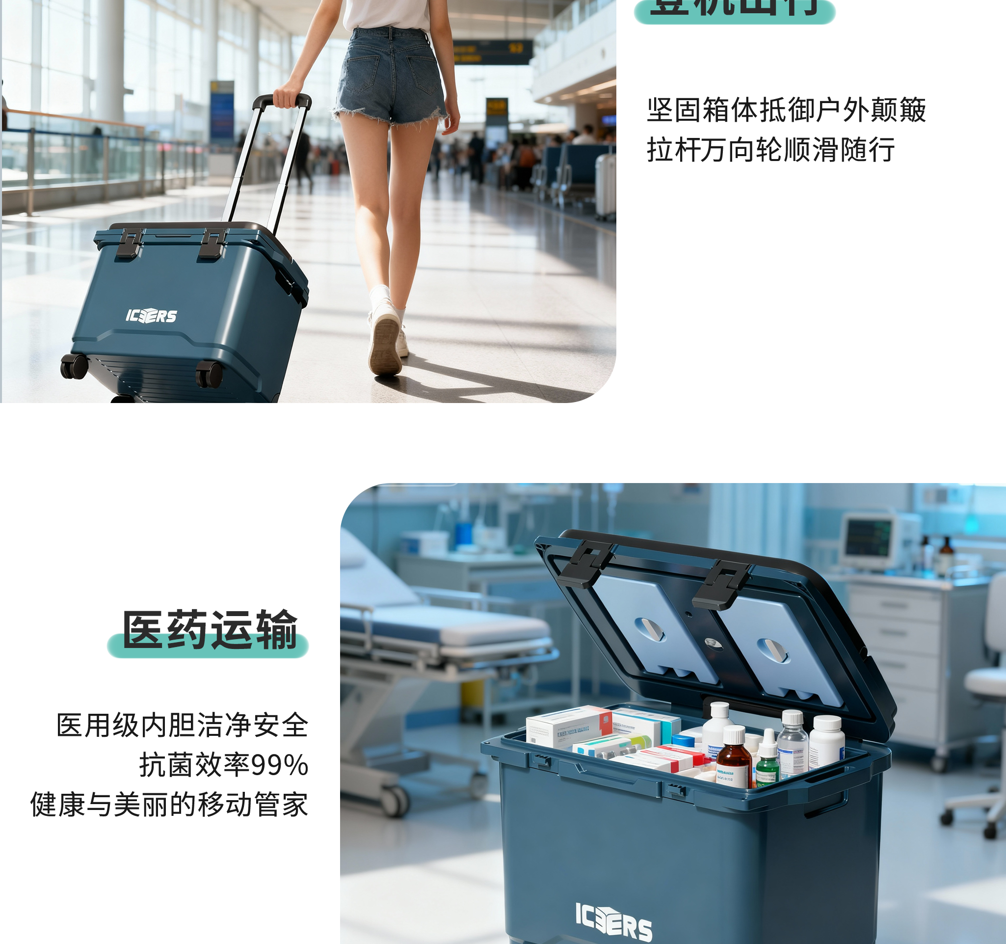 ICERS Trolley Insulation Box Medical Refrigerator Biological Reagent Transfer Stall Freezer Breast Milk 20L Pulley 40L Trolley Type (6 Sides PU Material) With Temperature Display