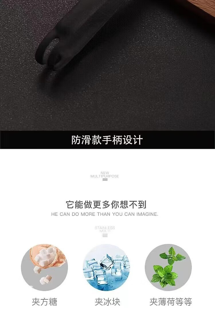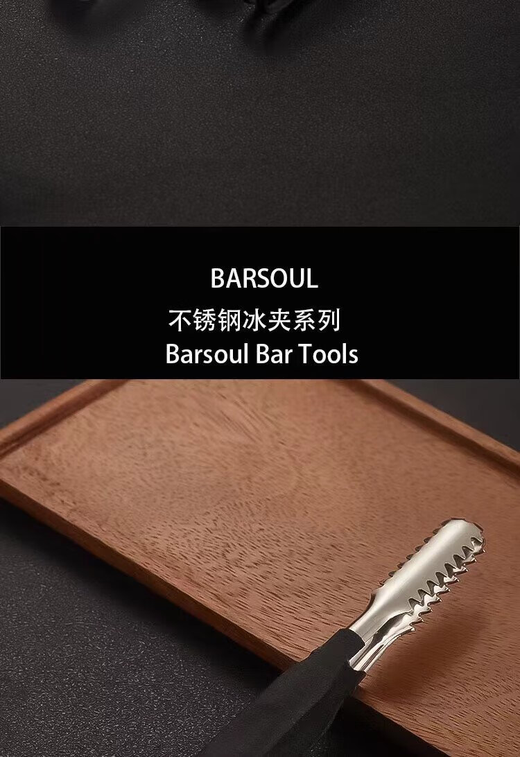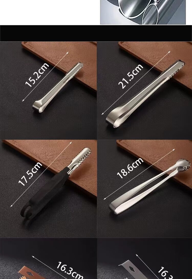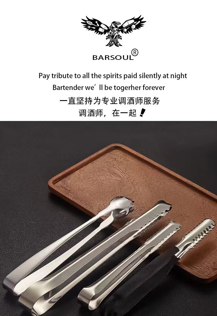 Bar Soul Stainless steel ice clip, high quality stainless steel clip, non-slip handle ice clip, bar bartending tool barbecue clip, non-slip handle ice clip 17.5cm