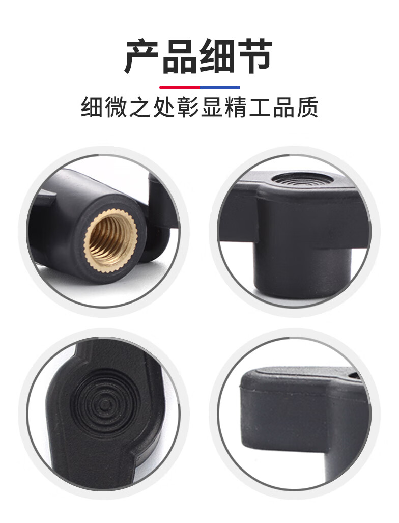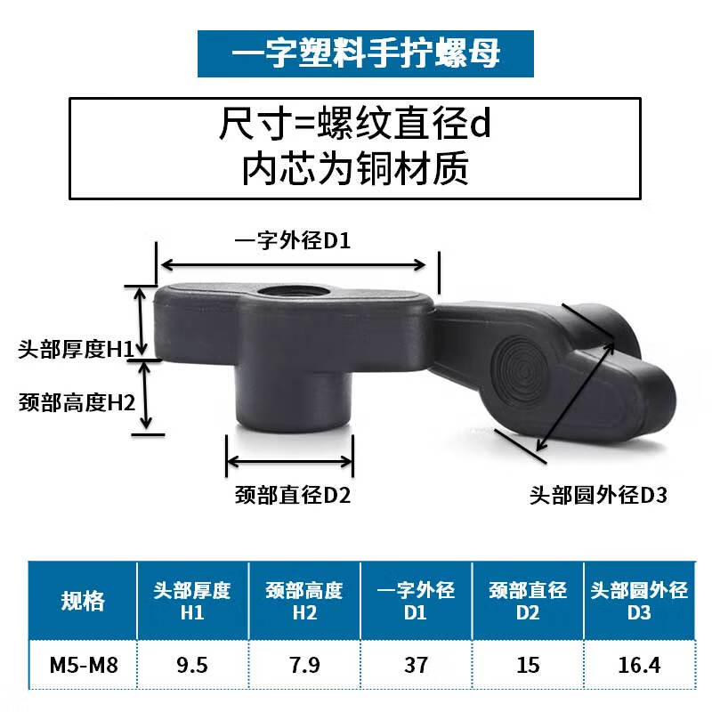 Jinggong plastic one-word hand screw nut copper inner tooth plastic one-word handle nut nut handwheel handle screw m5 one