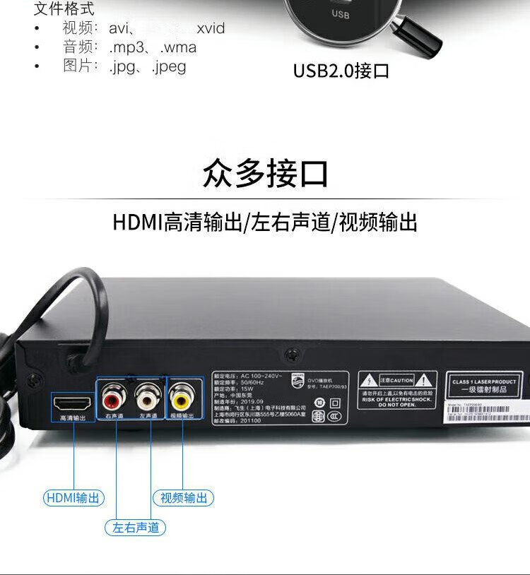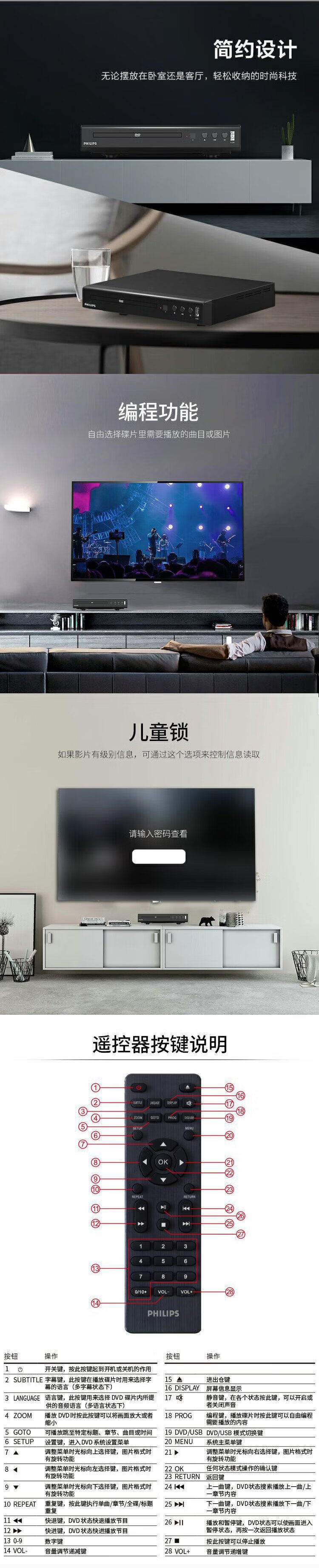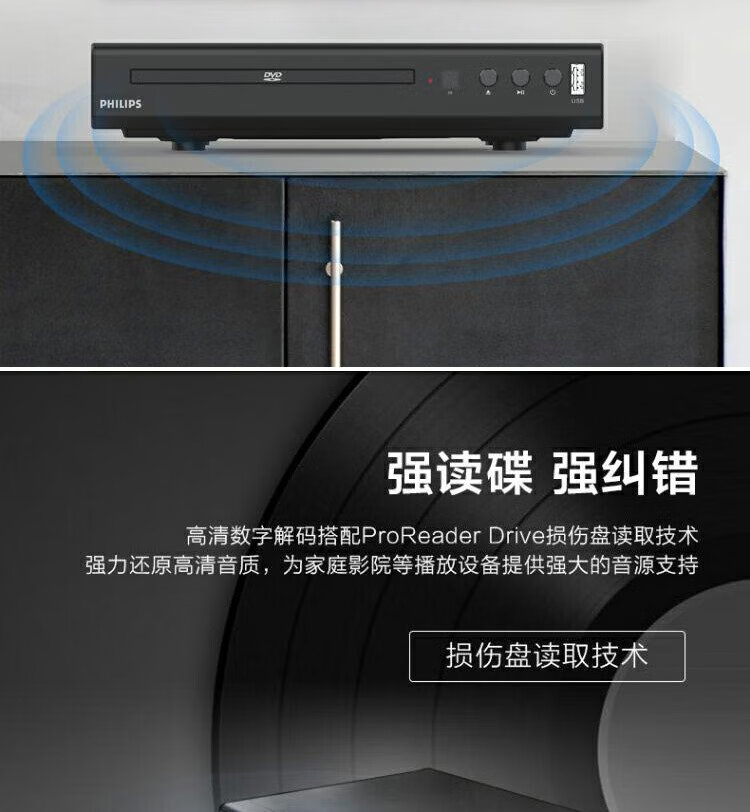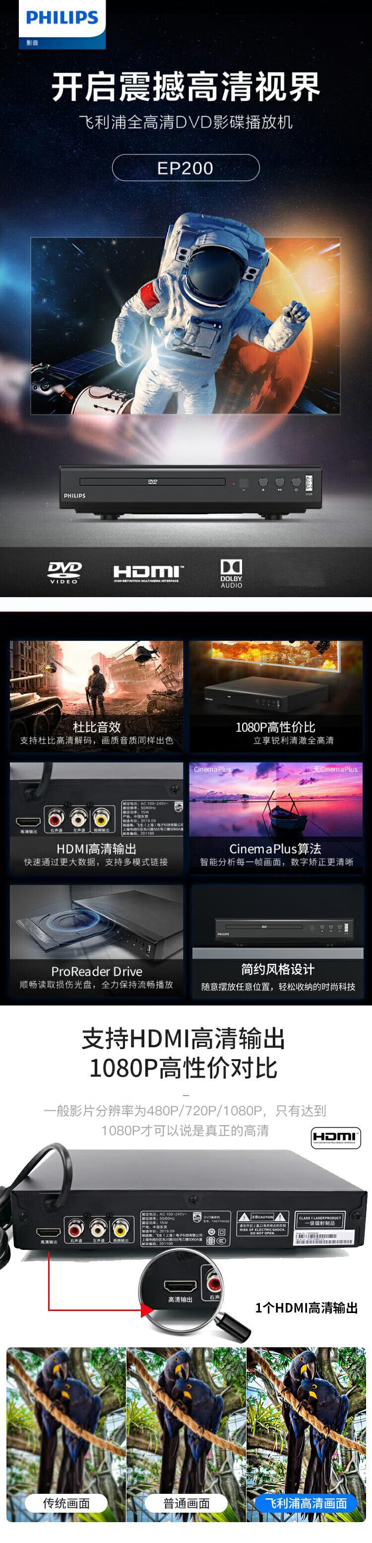 Philips (PHILIPS) TAEP200 DVD player, powerful disc reading VCD CD player, strong error correction capability, high-definition HDMI, standard + version 2.0 high-definition cable