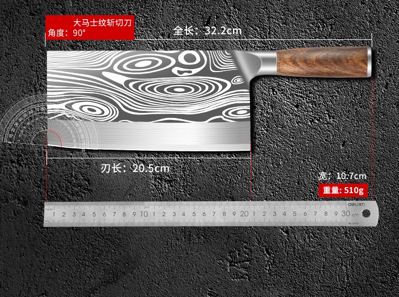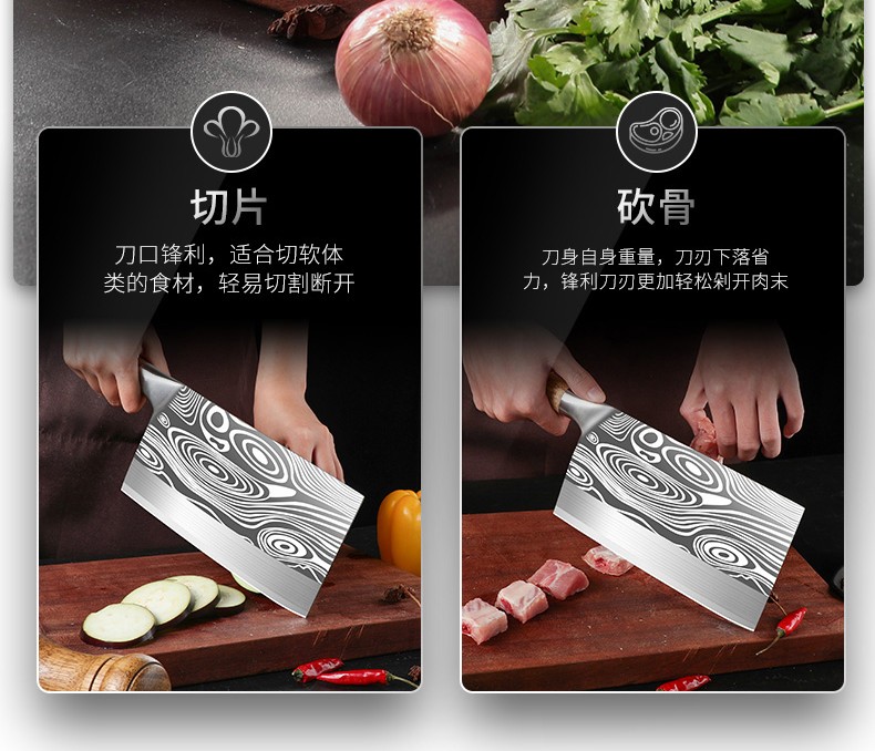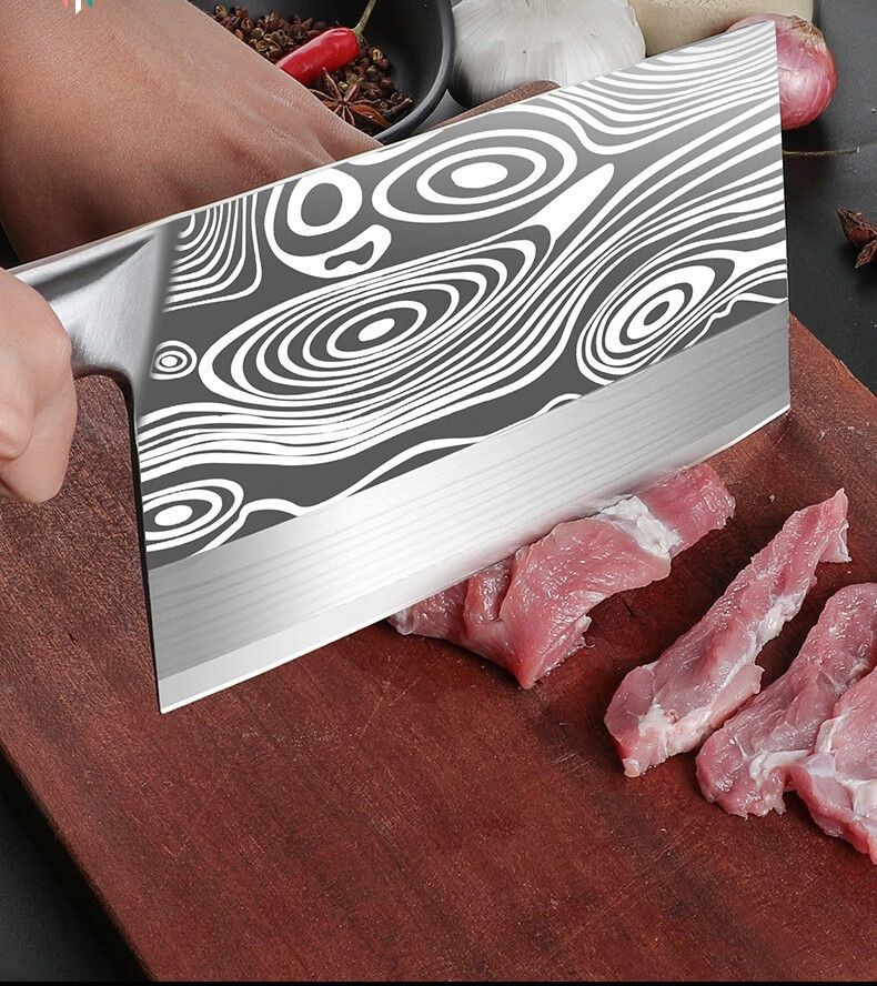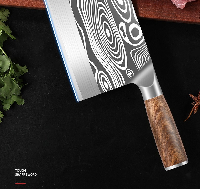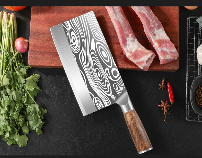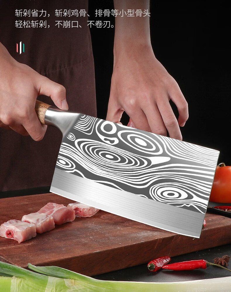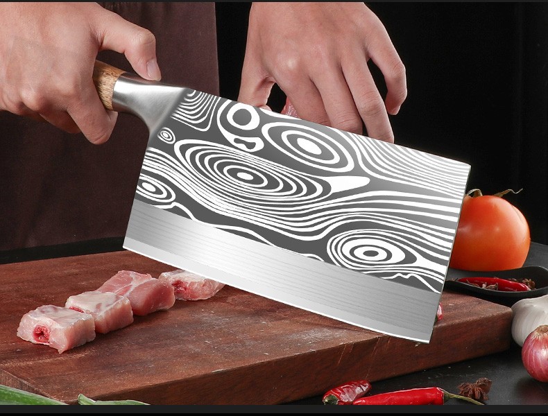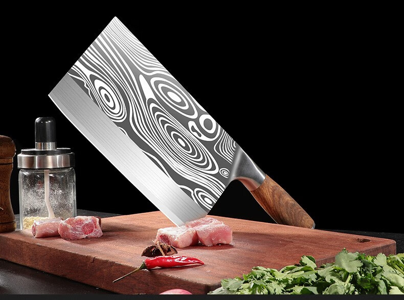 Xiao Tianlai Knife Sharpener Kitchen Knife Damascus Grain Meat Cleaver Kitchen Knife Sharp Slicing Knife Stainless Steel Kitchen Knife (Yellow Wood Handle)
