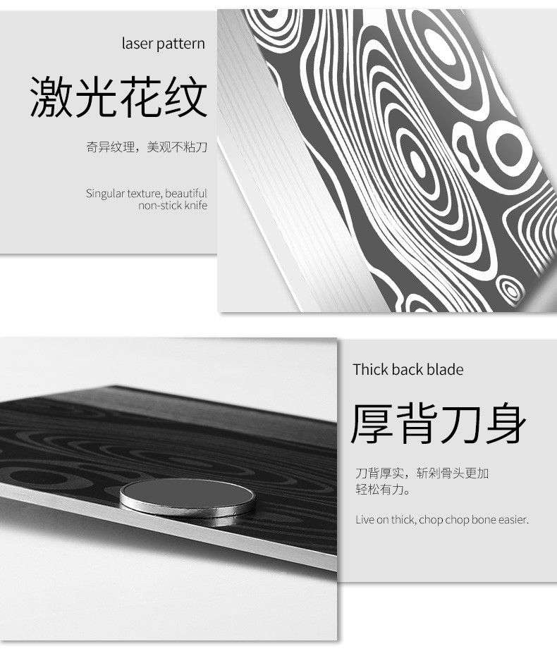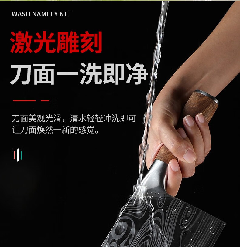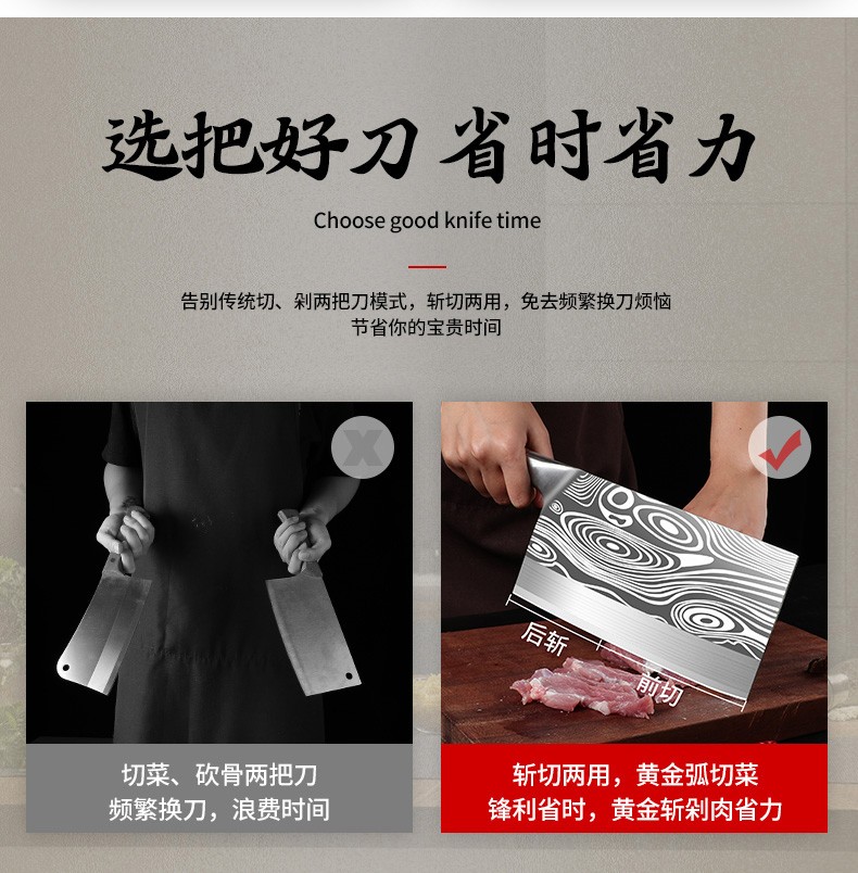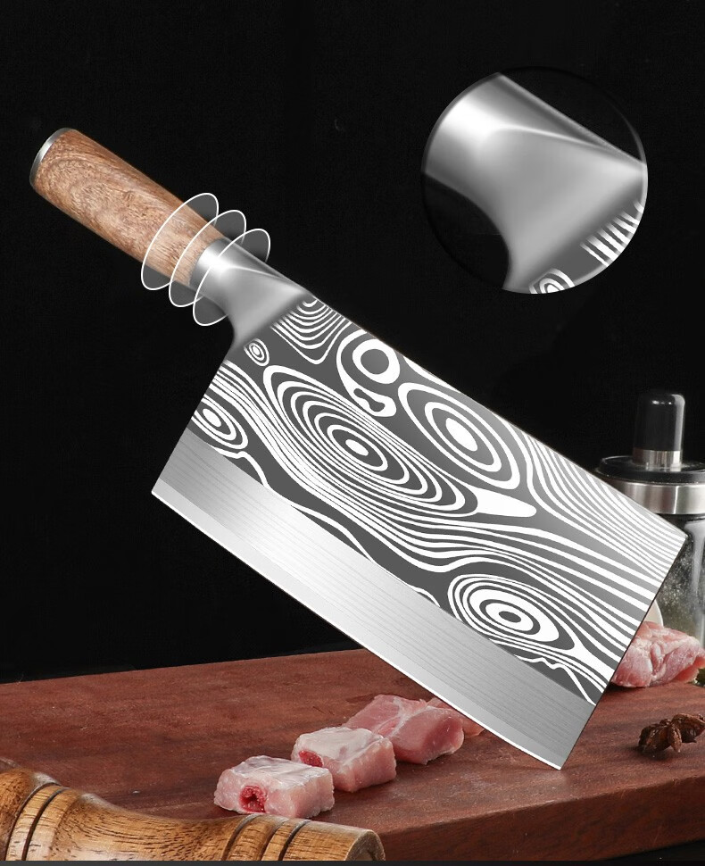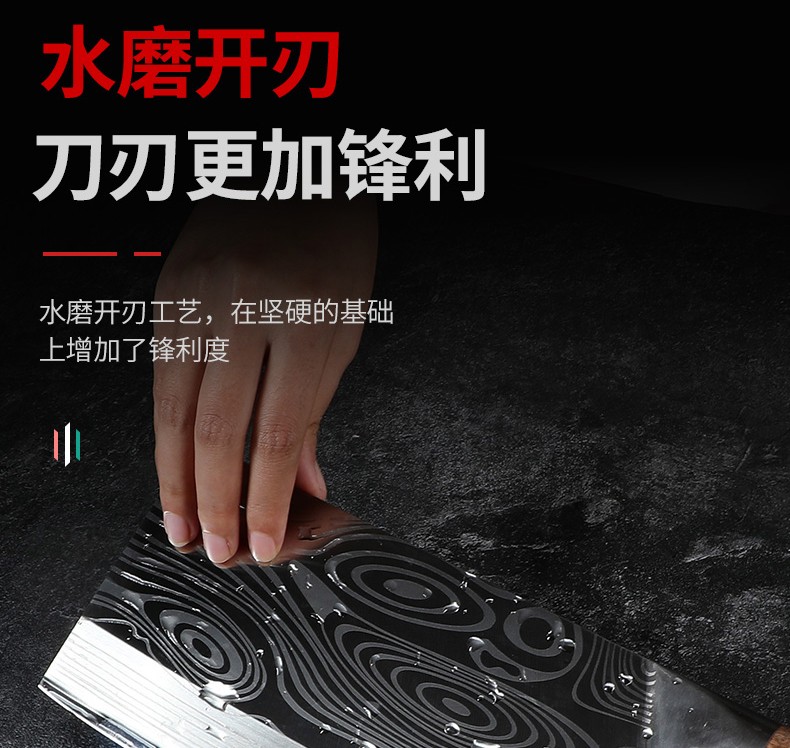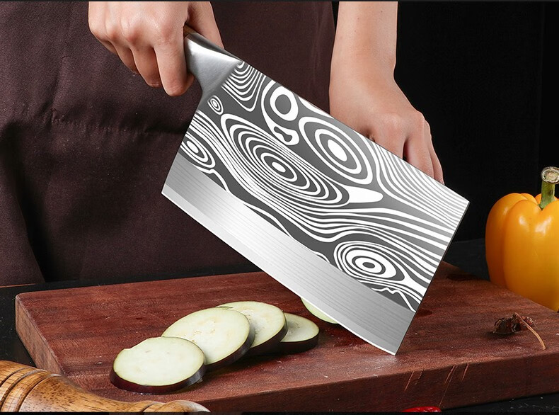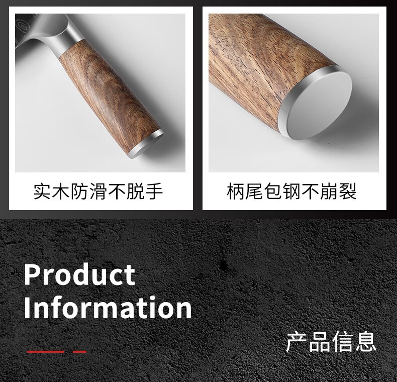 Xiao Tianlai Knife Sharpener Kitchen Knife Damascus Grain Meat Cleaver Kitchen Knife Sharp Slicing Knife Stainless Steel Kitchen Knife (Yellow Wood Handle)