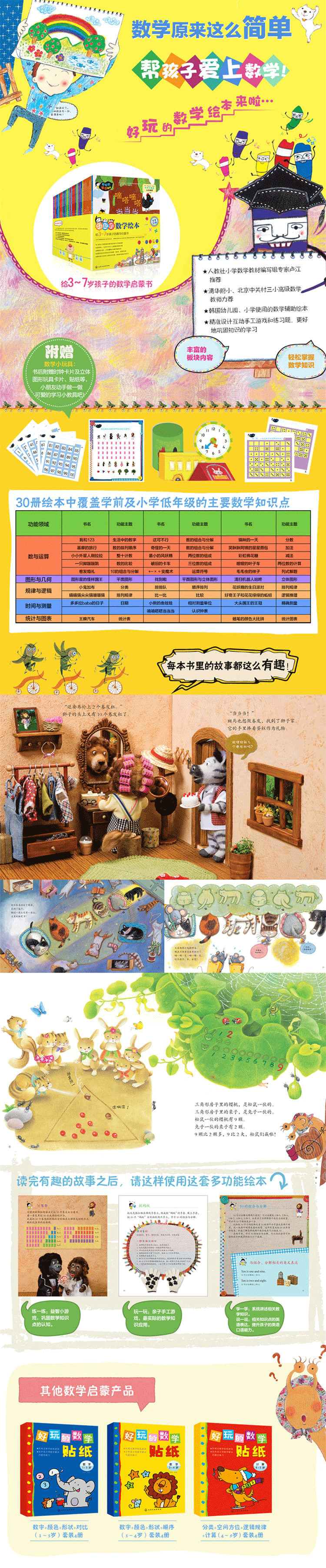 Introducing the genuine best-selling and fun mathematics picture books 1-3, a full set of 30 volumes, 3-6-7 years old preschool and lower grades bridging mathematics enlightenment picture books, handmade sticker games, exercises, thinking training, mathematics enlightenment story books