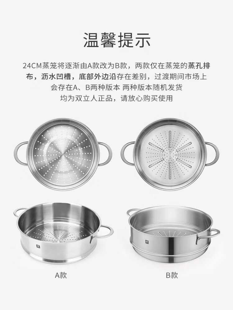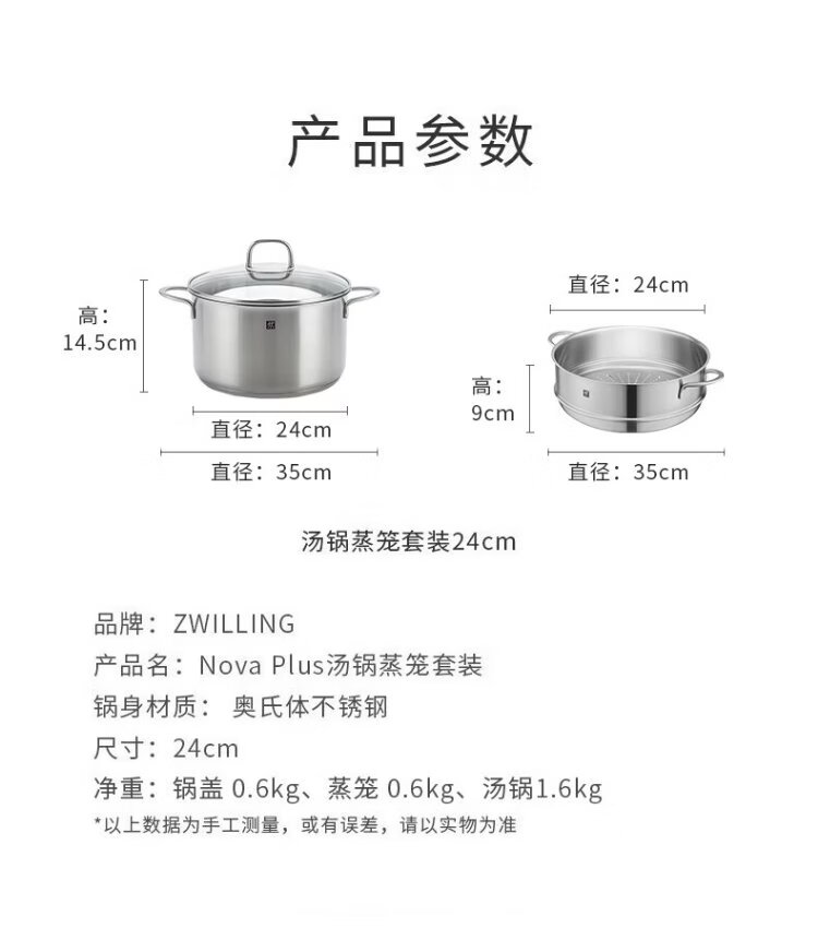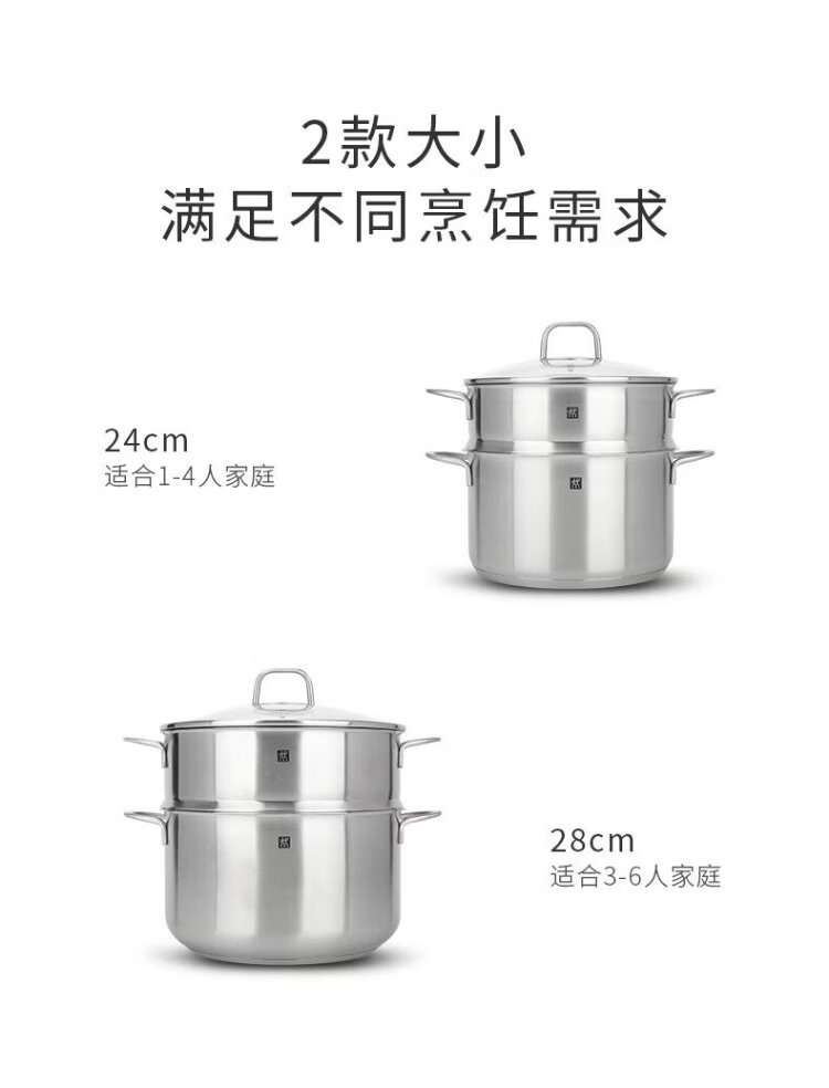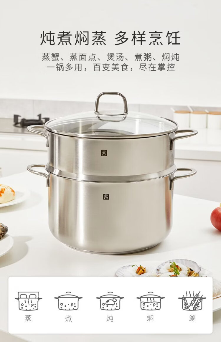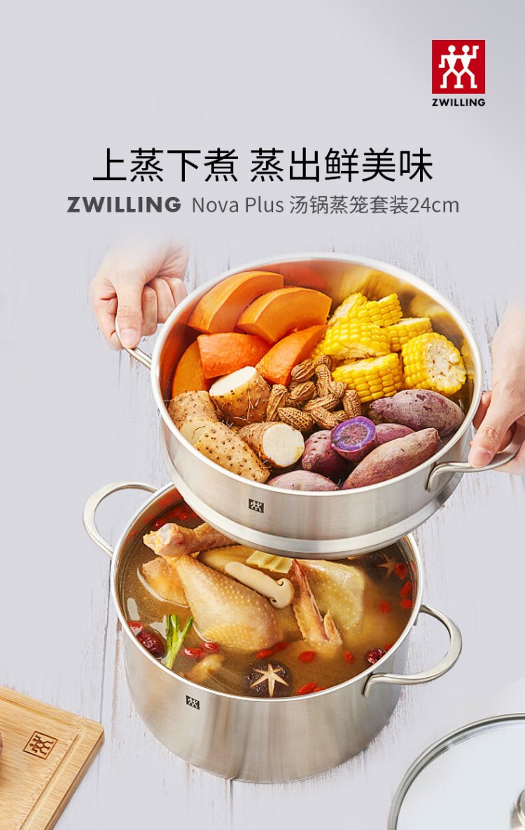 ZWILLING double-layer steamer stainless steel soup pot steamer 24cm large capacity soup steaming steamed buns induction cooker gas stove universal soup pot + double-ear steamer 2-piece set 24cm