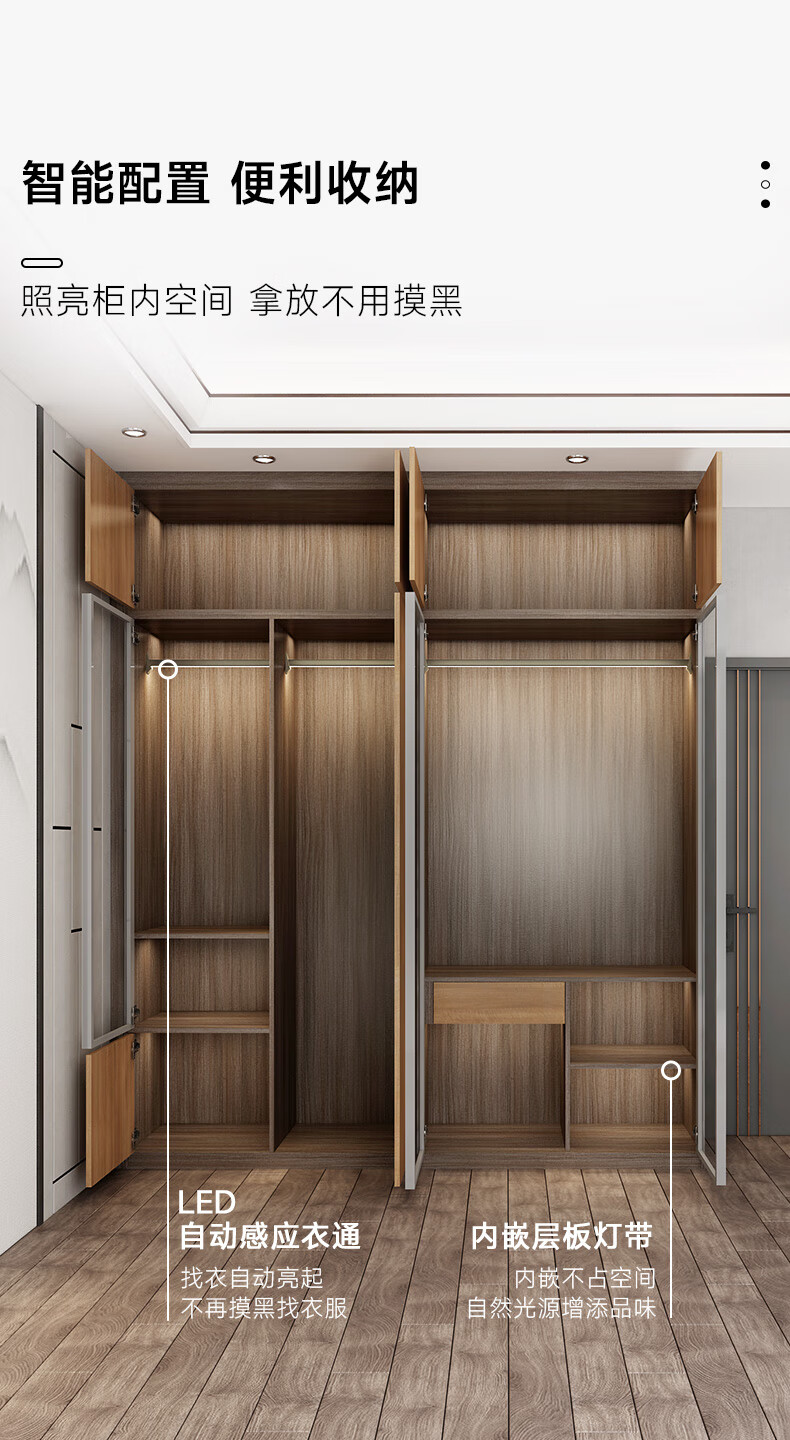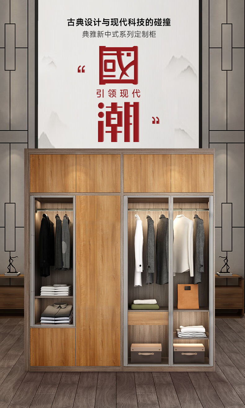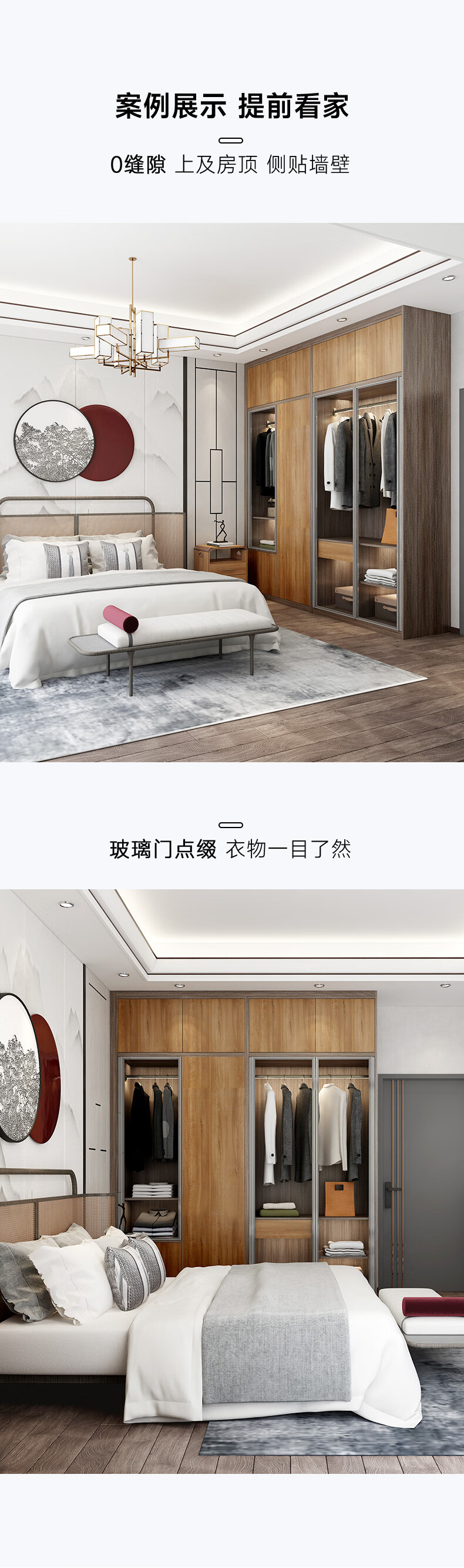 Sophia Wardrobe New Chinese Style Furniture Retro Overall Large Wardrobe Storage Cabinet Master Bedroom Wardrobe Combination Whole House Customized Wardrobe Customized Gold