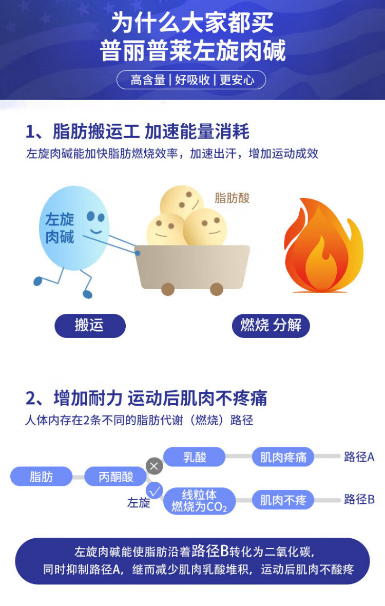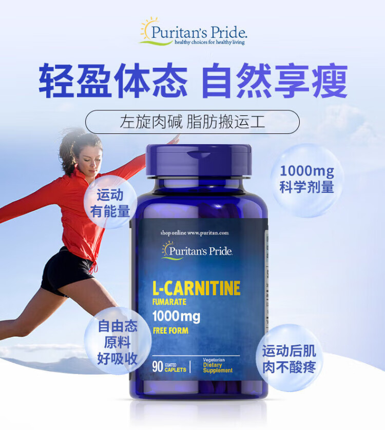Priprela L-carnitine 1000mg L-carnitine stubborn weight loss product accelerates fat burning imported from the United States L-carnitine tablets 90 tablets/1000mg