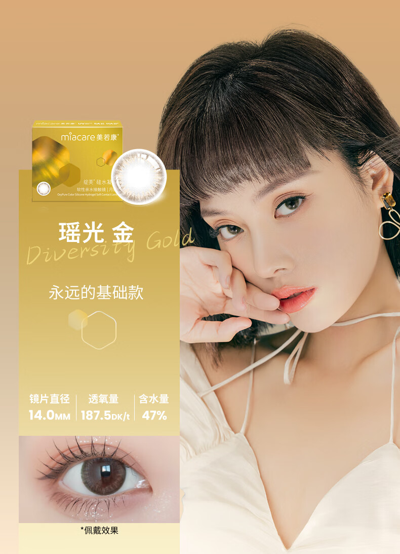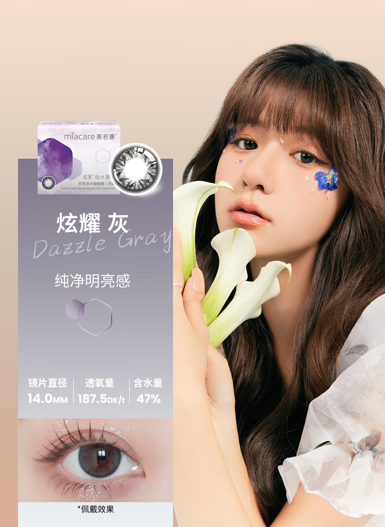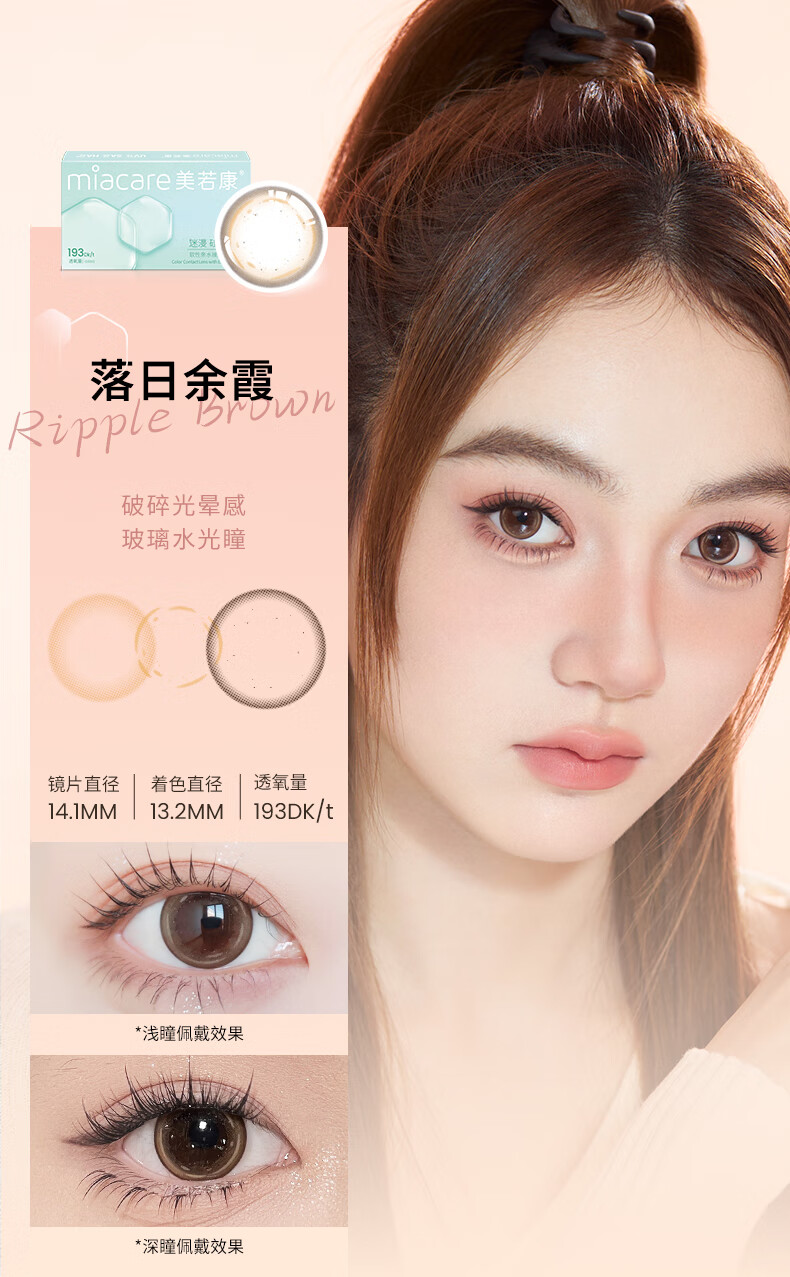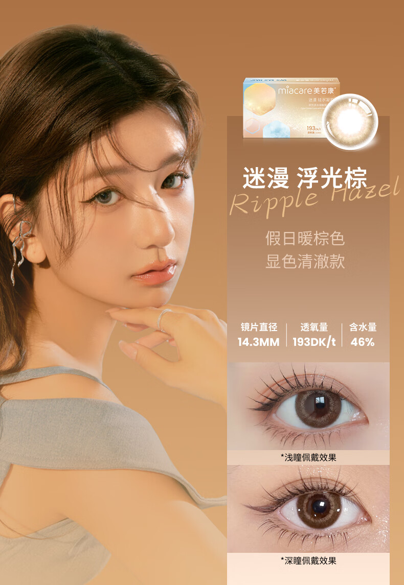 Meruokangmei Monthly Disposable Contact Lenses Highly Oxygen Permeable 2-Piece Diameter Silicone Hydrogel Contact Lenses Sandwich Process Morning Mist Brown 125 Degrees