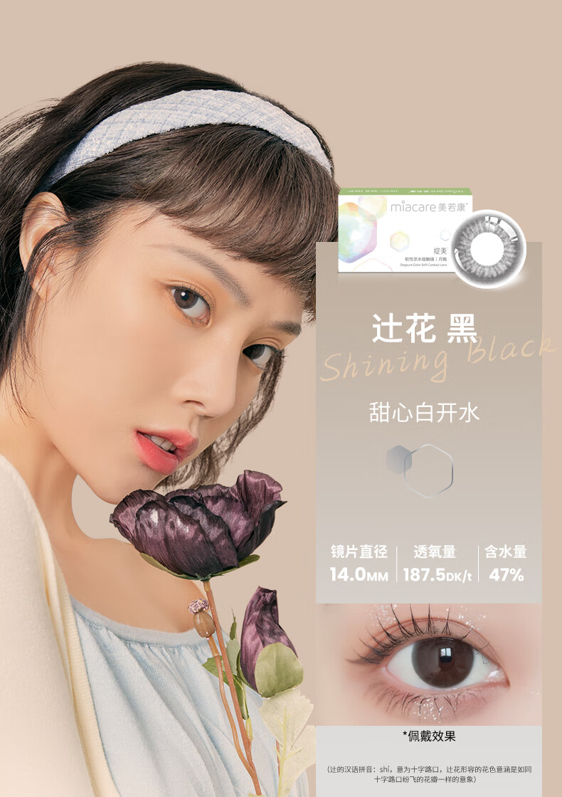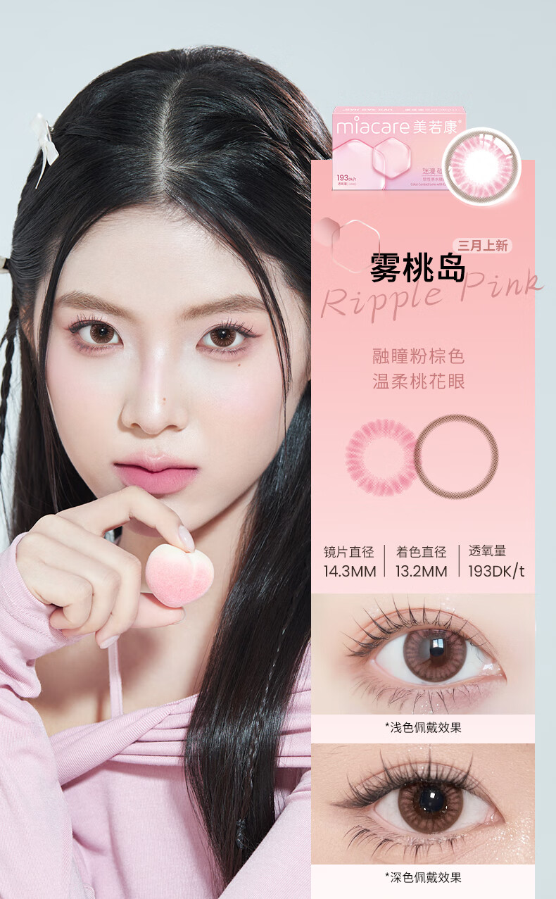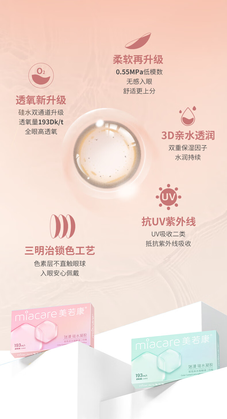 Meruokangmei Monthly Disposable Contact Lenses Highly Oxygen Permeable 2-Piece Diameter Silicone Hydrogel Contact Lenses Sandwich Process Morning Mist Brown 125 Degrees