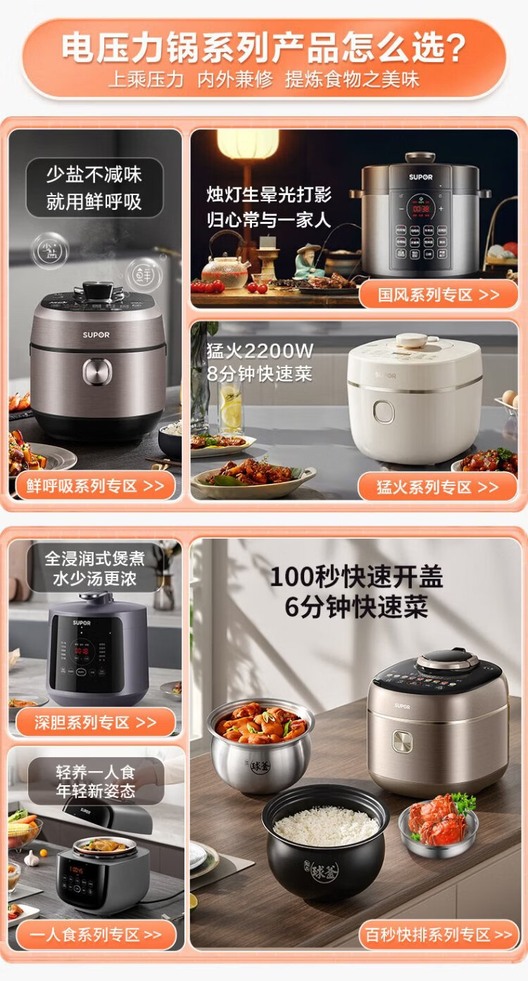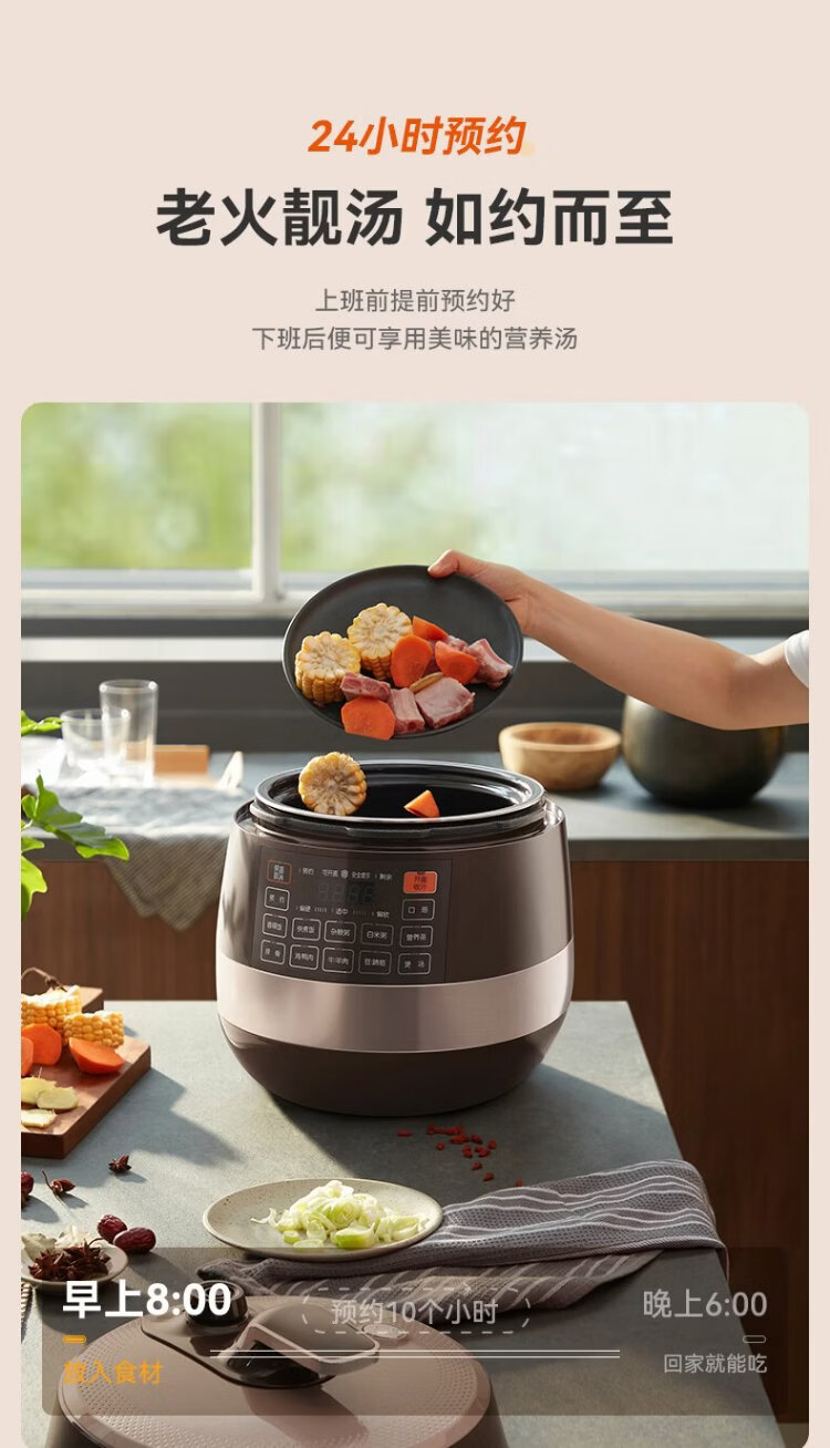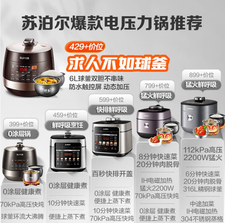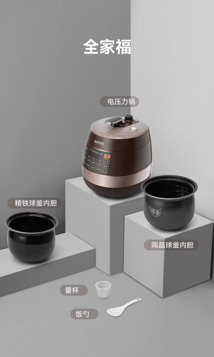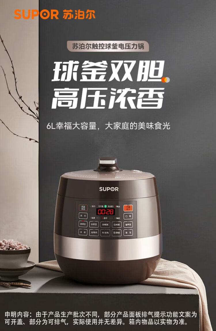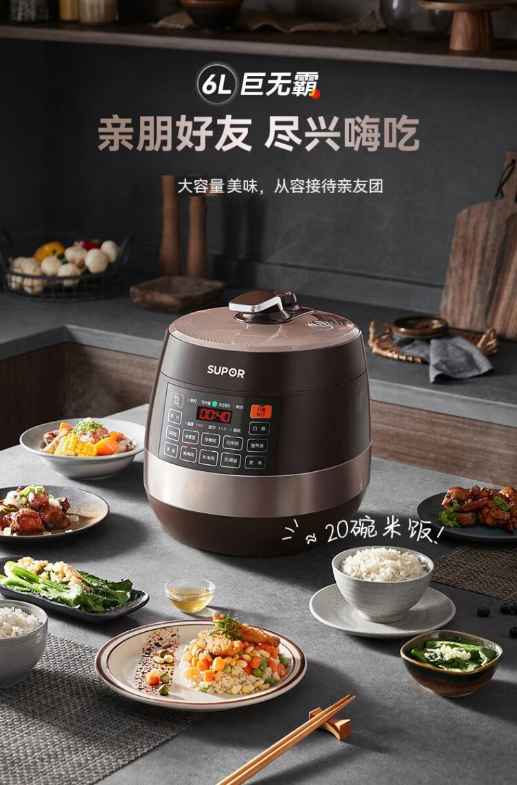 SUPOR fully automatic intelligent reservation electric pressure cooker 6L large capacity touch-controlled double ball kettle SY-60YC8001Q rice cooker pressure cooker for 6-8 people