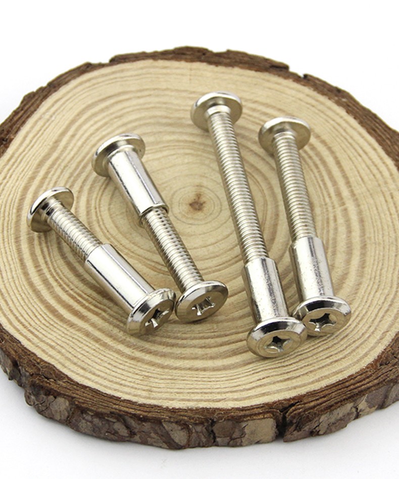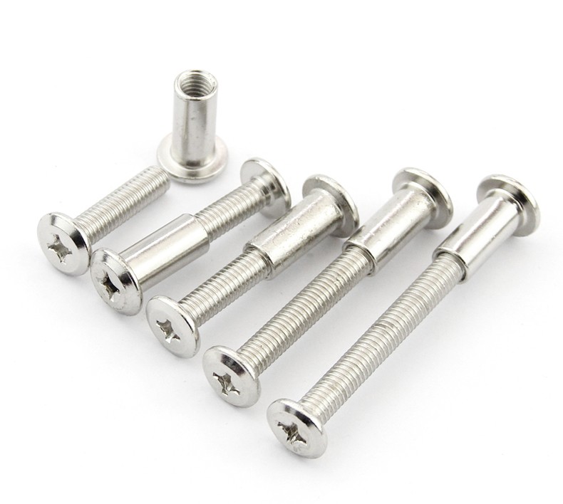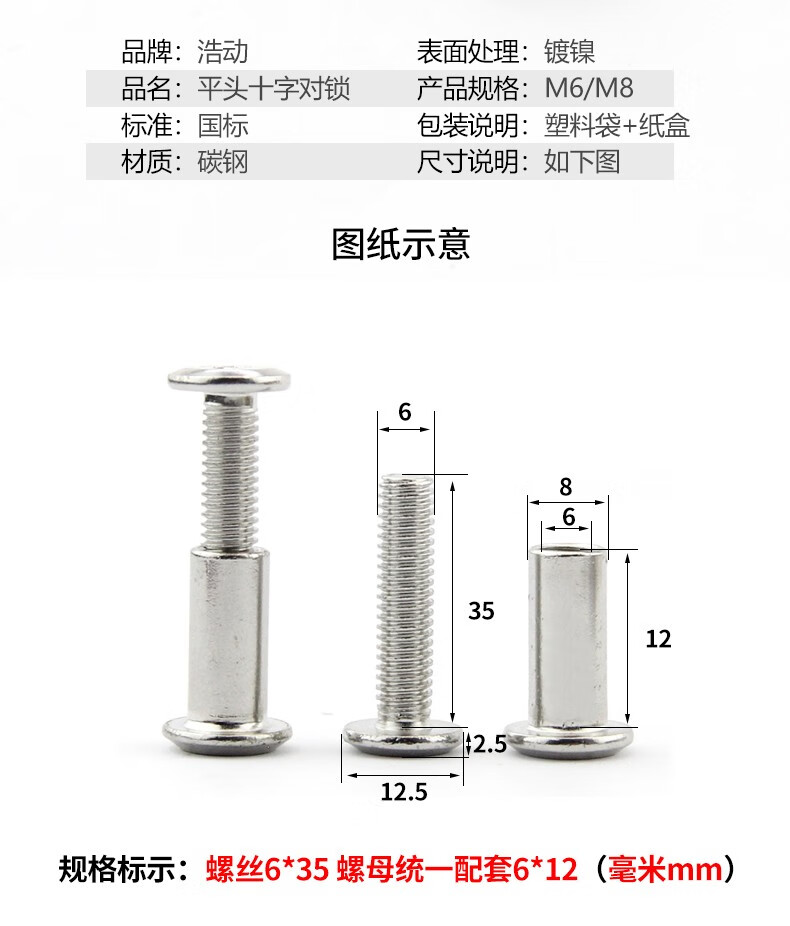 Haodong nickel-plated large flat head cross locking screws and knocking plywood nuts furniture combination connection sub-native nail bolts M6M8 6*35 screws with 8*12*M6 female-5 sets