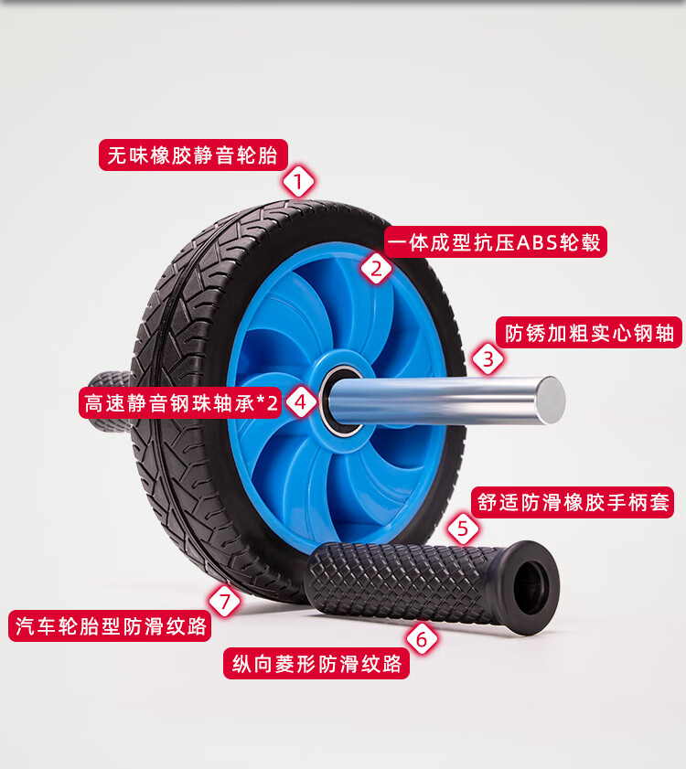 REIN NOW Silent Rubber Abdominal Wheel Single Wheel Bearing Abdominal Muscle Wheel Men's Weight Loss Exercise Abdominal Wheel Home Fitness Equipment Pure Blue Large Wheel with a Diameter of 20cm