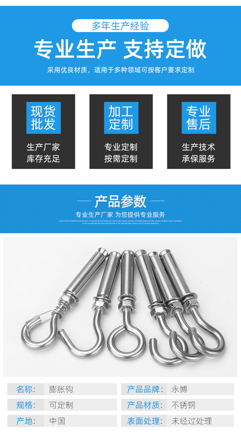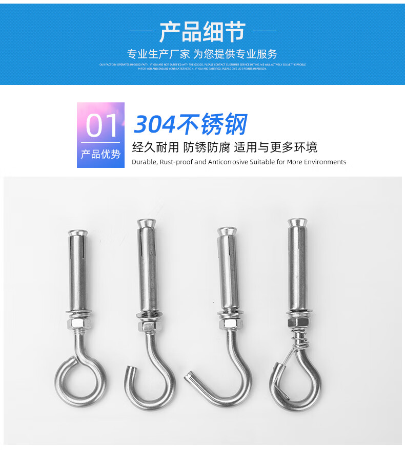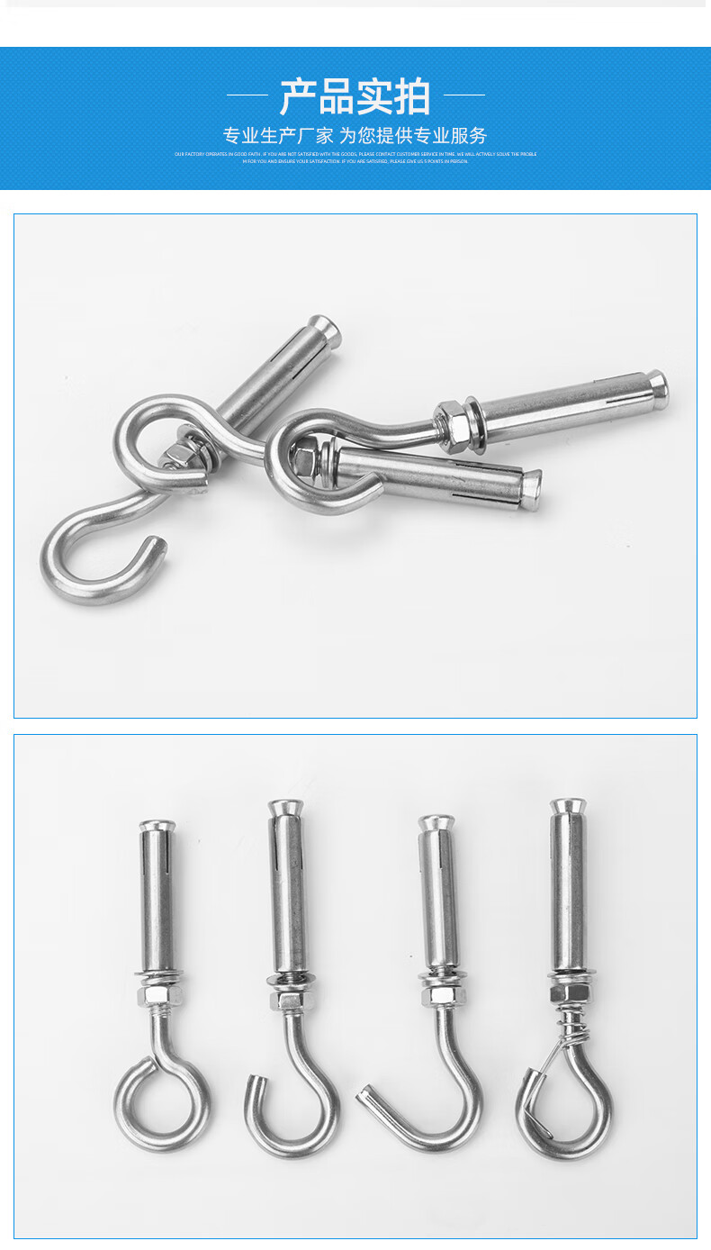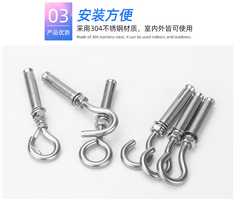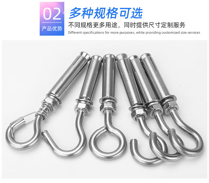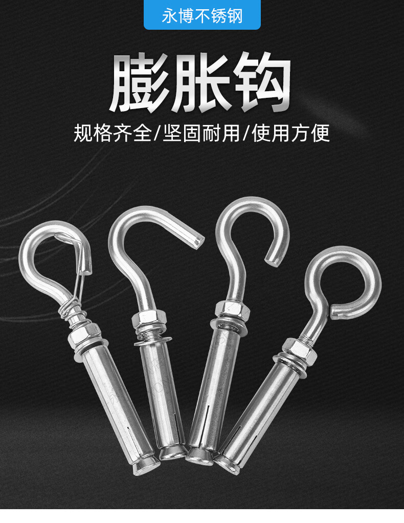 304 stainless steel expansion hook with hook expansion screw manhole cover mesh manhole ring hook hook M6M8M10M12 expansion hook M8 (punch 12mm)