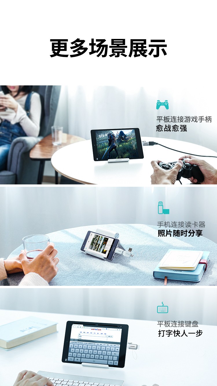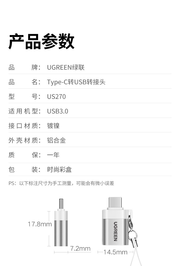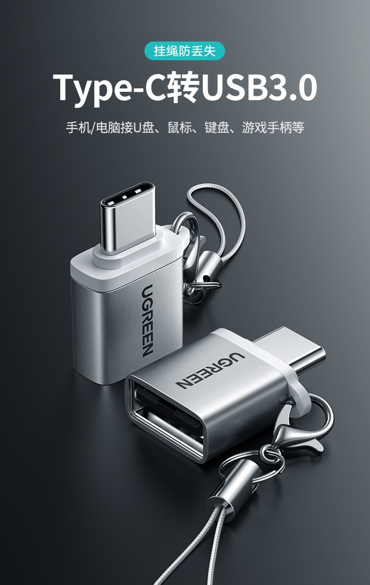 Green Link OTG Adapter Type-C to USB3.0 Converter Universal Apple Macbook Huawei Android Phone Flash Silver-1 Pack-Extended Mouse USB Disk
