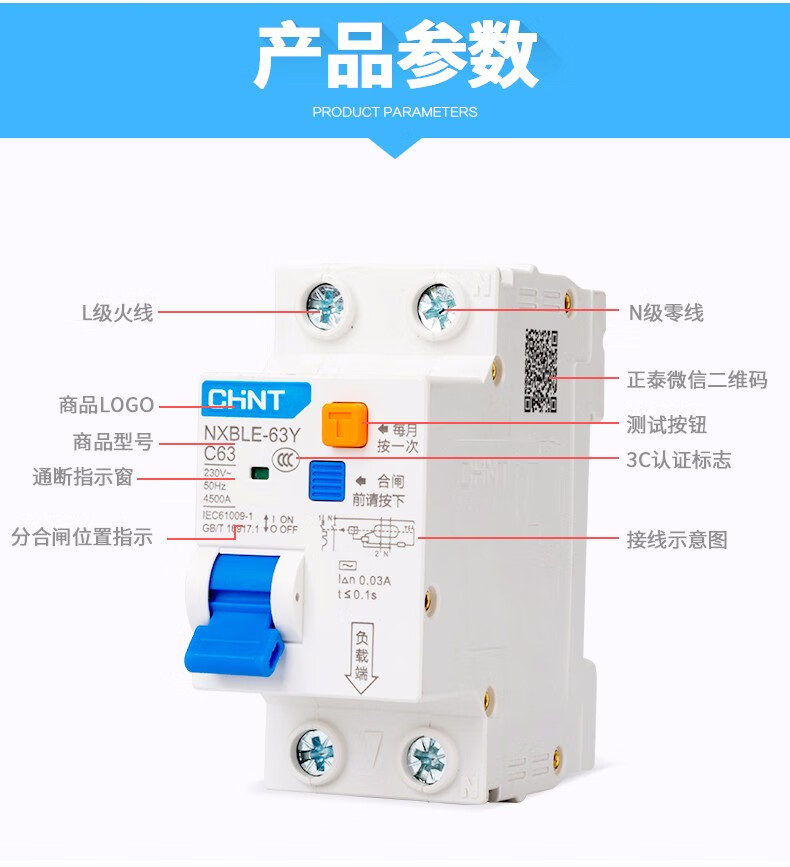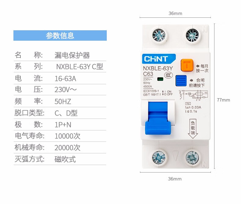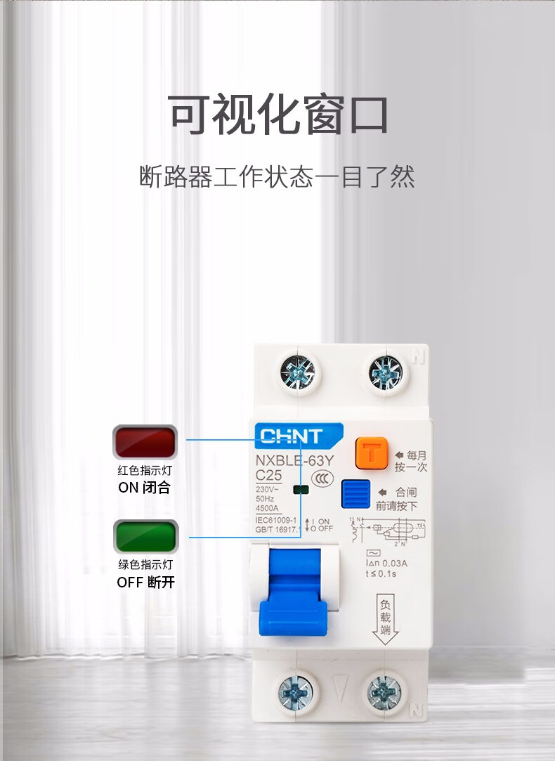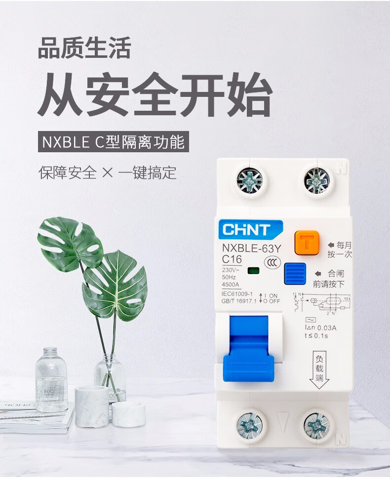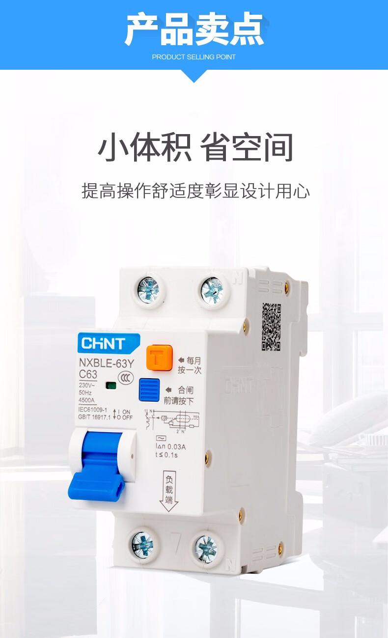 Chint (CHNT) air switch leakage protection switch small circuit breaker air switch air switch with leakage protection NXBLE-63Y-1PN-C16 25A 1P+N