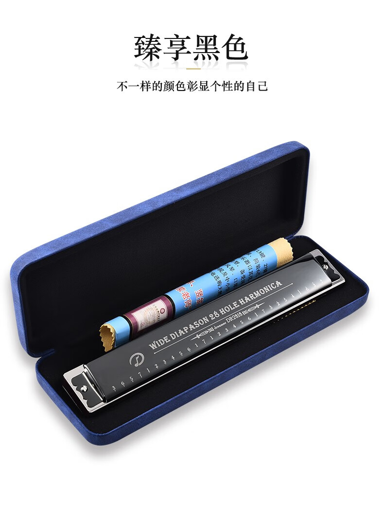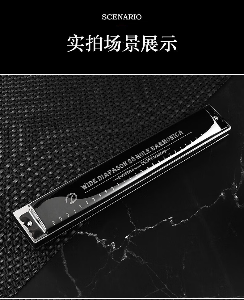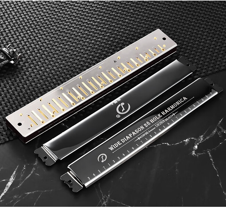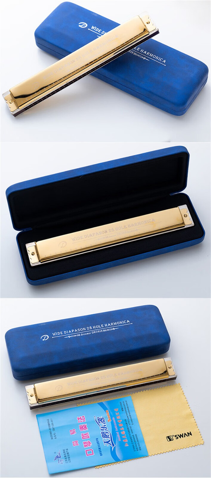 Swan (SWAN) imported gong harmonica 28 holes polyphonic heavy C key beginners learning men and women professional playing birthday gift engraving 28 holes C key black accented full gift package