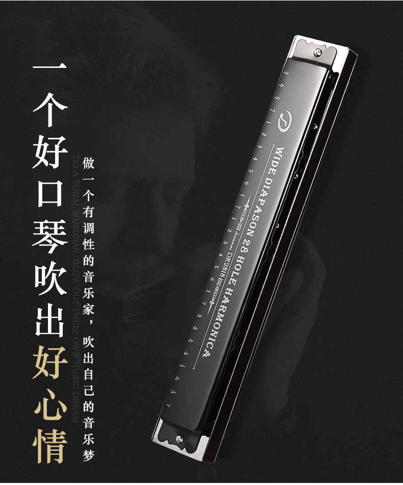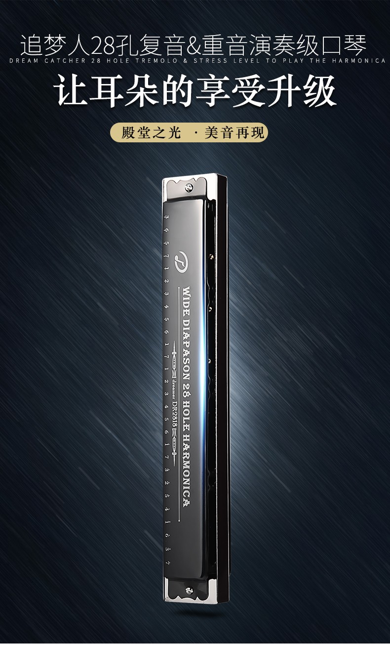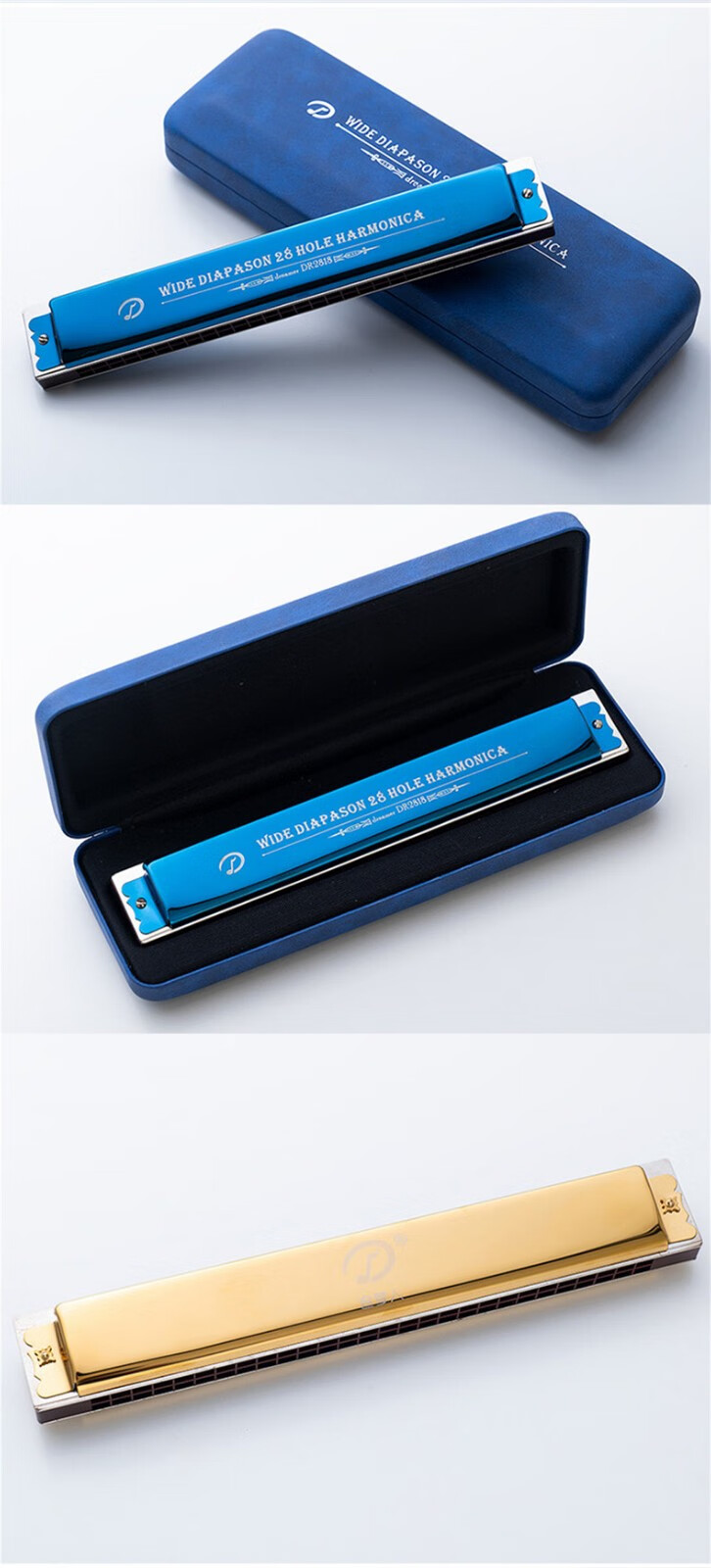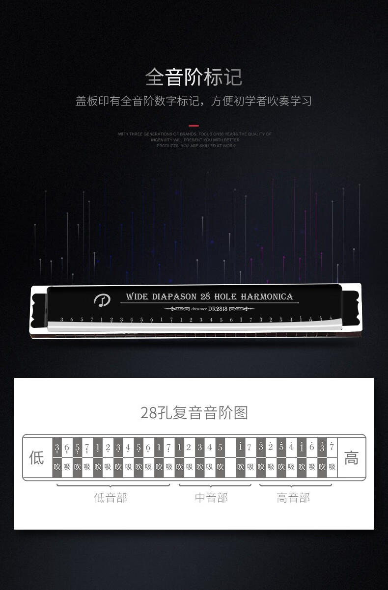 Swan (SWAN) imported gong harmonica 28 holes polyphonic heavy C key beginners learning men and women professional playing birthday gift engraving 28 holes C key black accented full gift package