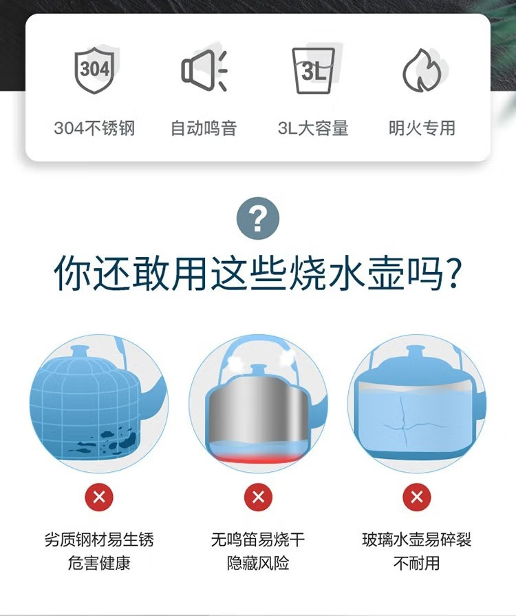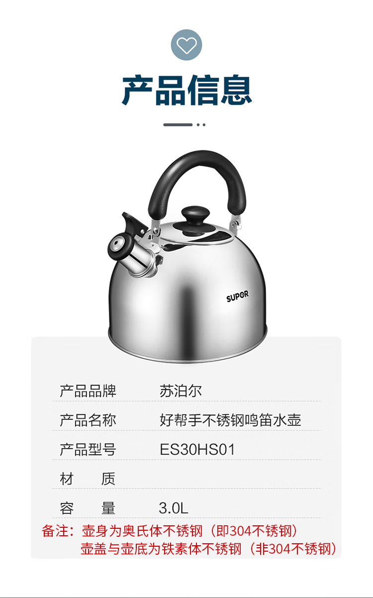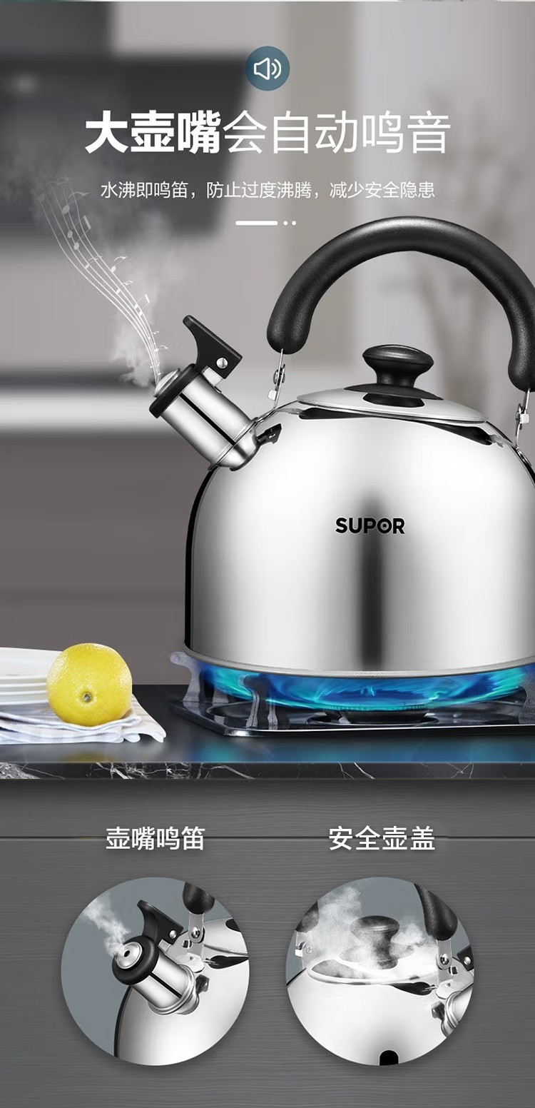 SUPOR kettle kettle gas kettle 304 stainless steel sound kettle special open flame ES30HS01-3L